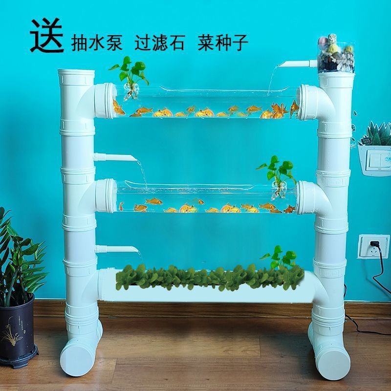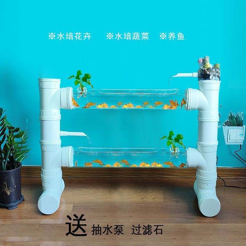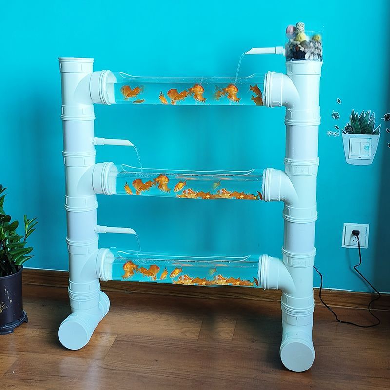 개인화 된 물고기 탱크를위한 관형 물고기 탱크, 창의적인 물고기 탱크, 흐르는 물 필터, 3 차원 수경 탱크스토어 가기