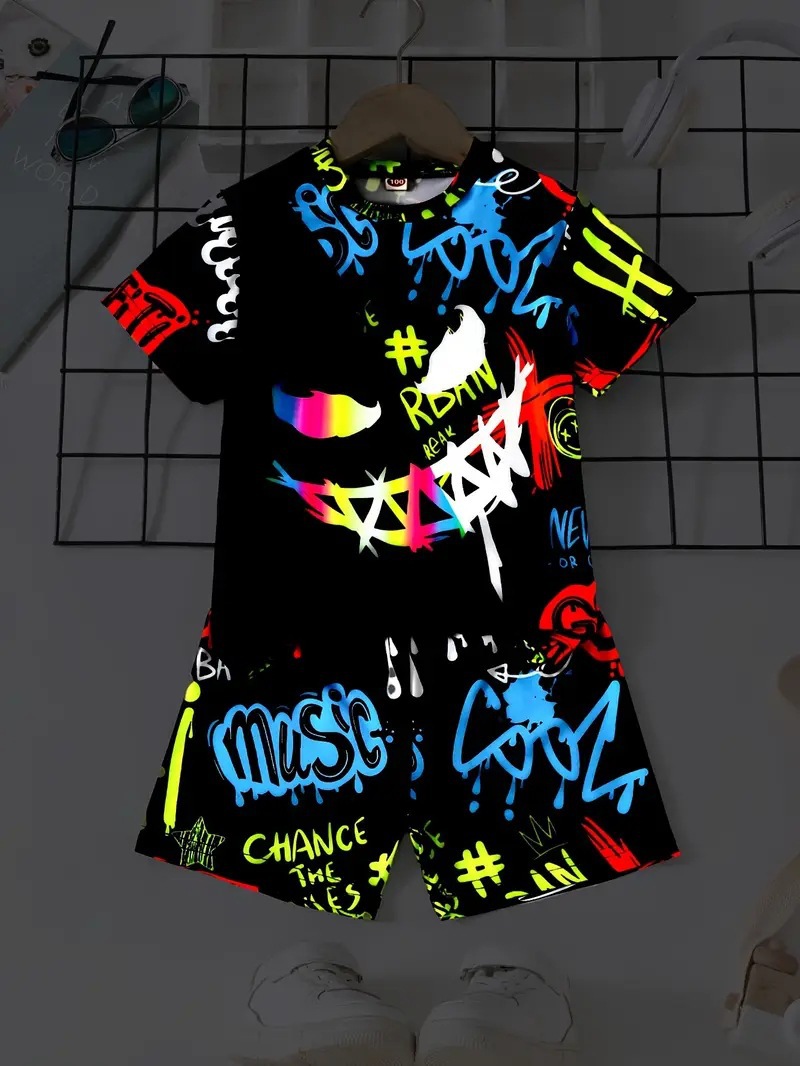 봄과 여름 새로운 아동복 세트 3d 인쇄 청소년 스포츠 인쇄 남녀 어린이 세트 국경 간 소스 공장스토어 가기