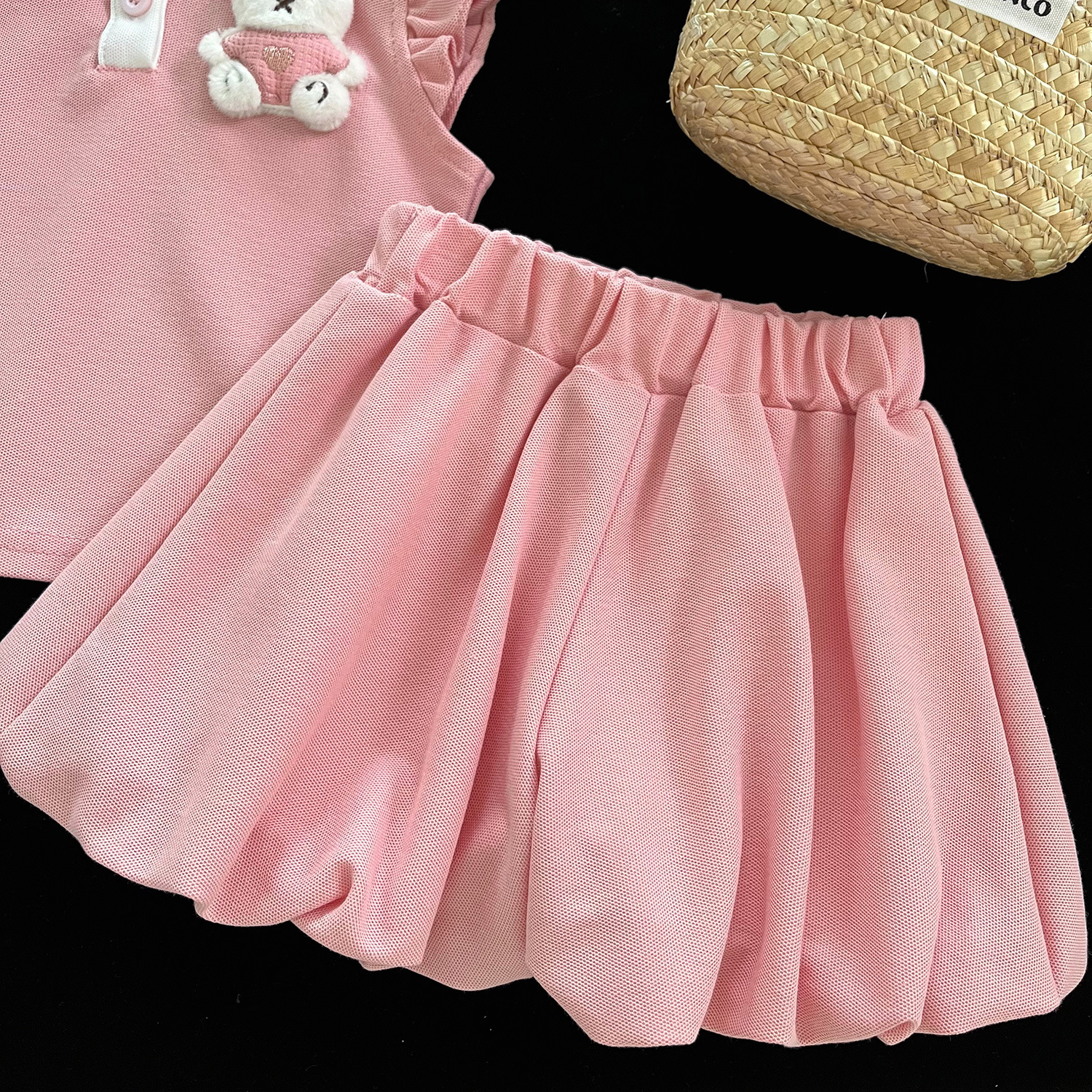 2025 새로운 여름 한국 스타일 외국 스타일 소녀 입체 토끼 펜던트 탑 민소매 버드 바지 정장