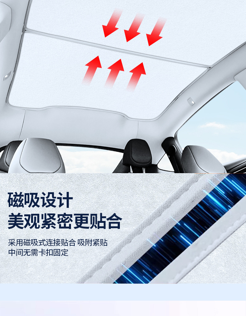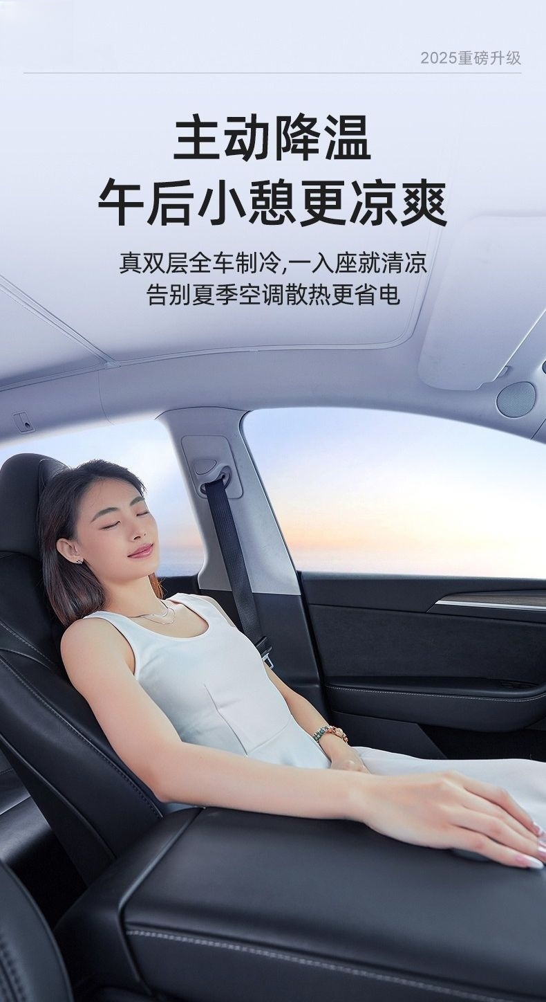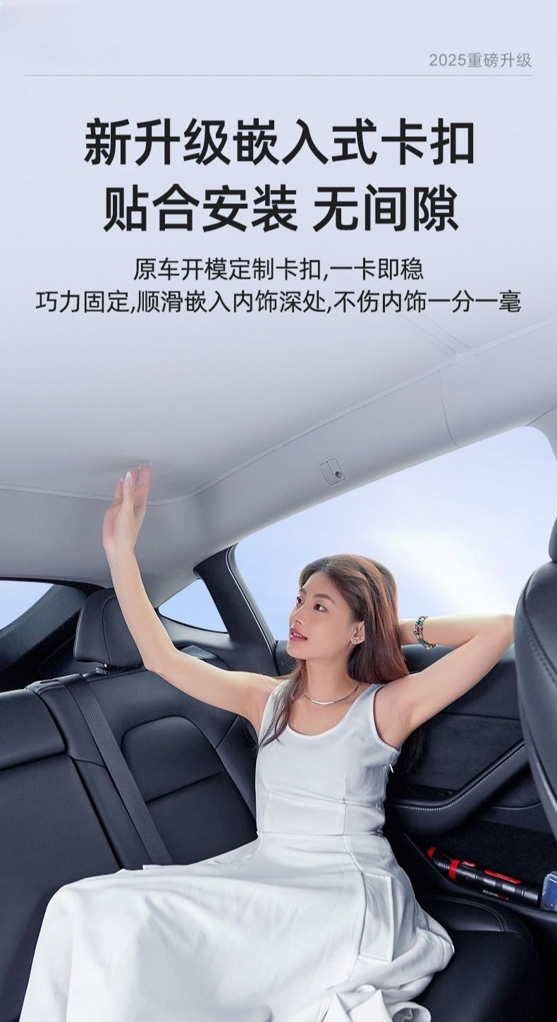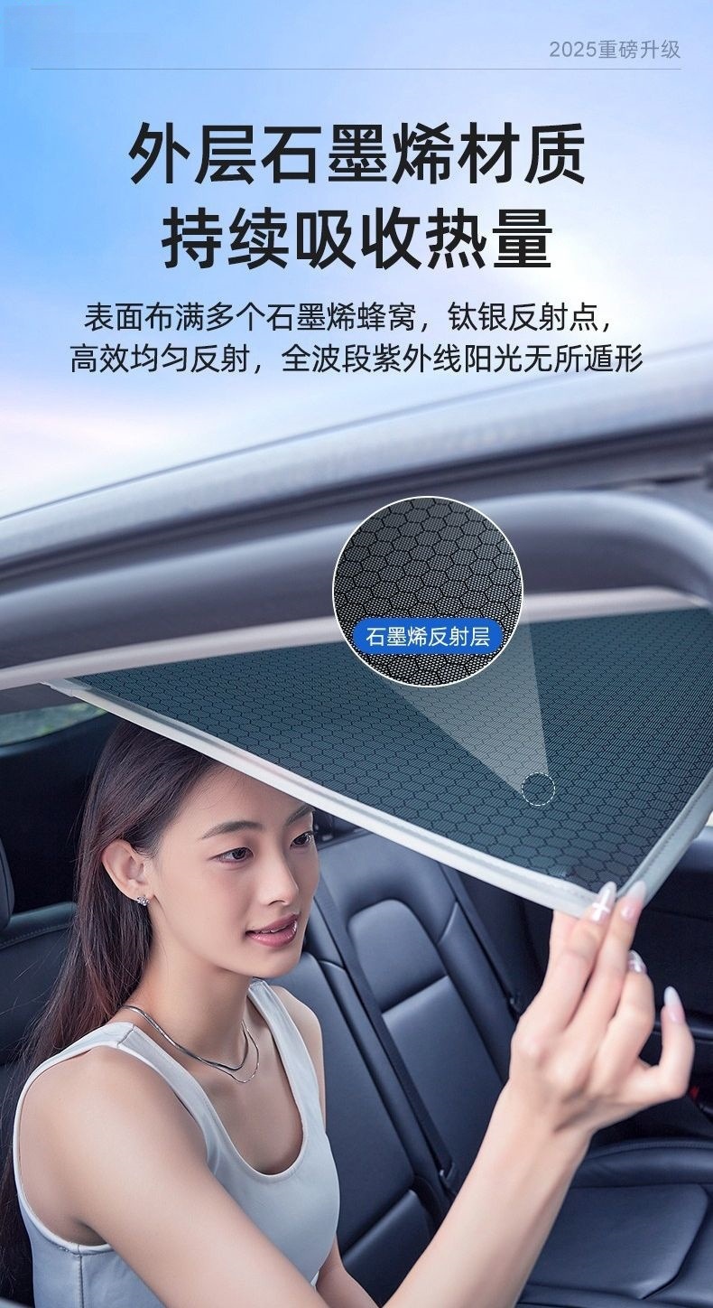 테슬라 모델YL3 선루프 차양막에 적합, 스웨이드 이중층 그래핀 자석식 단열 완전 차광