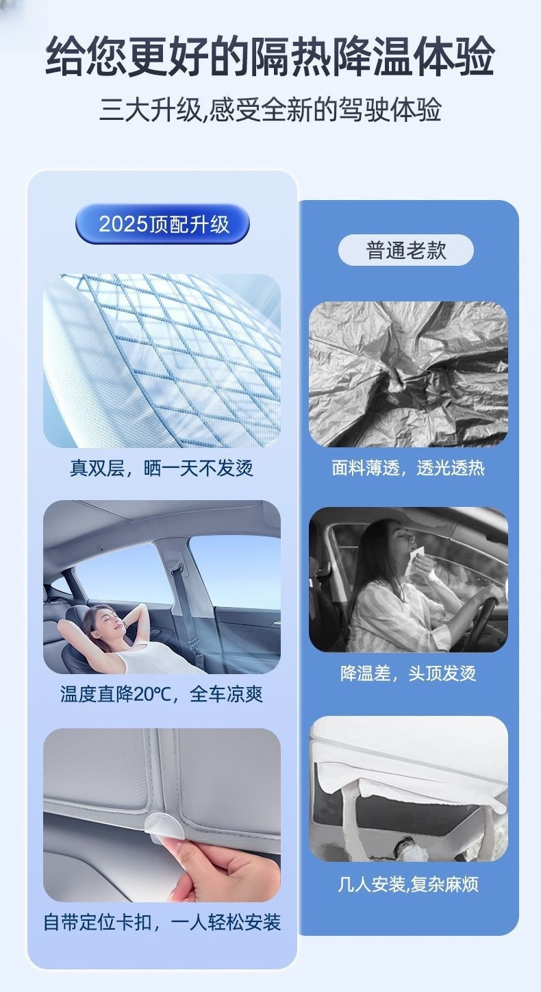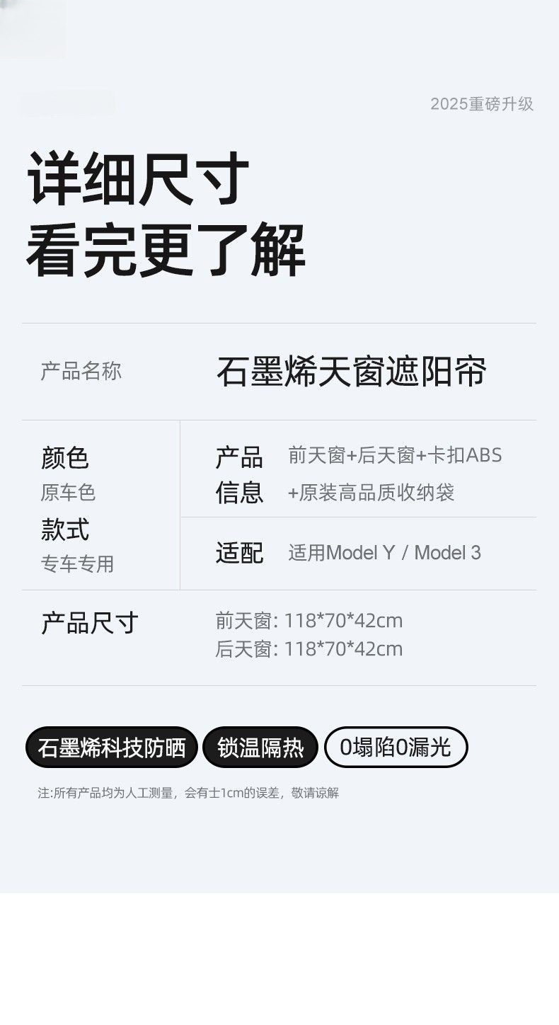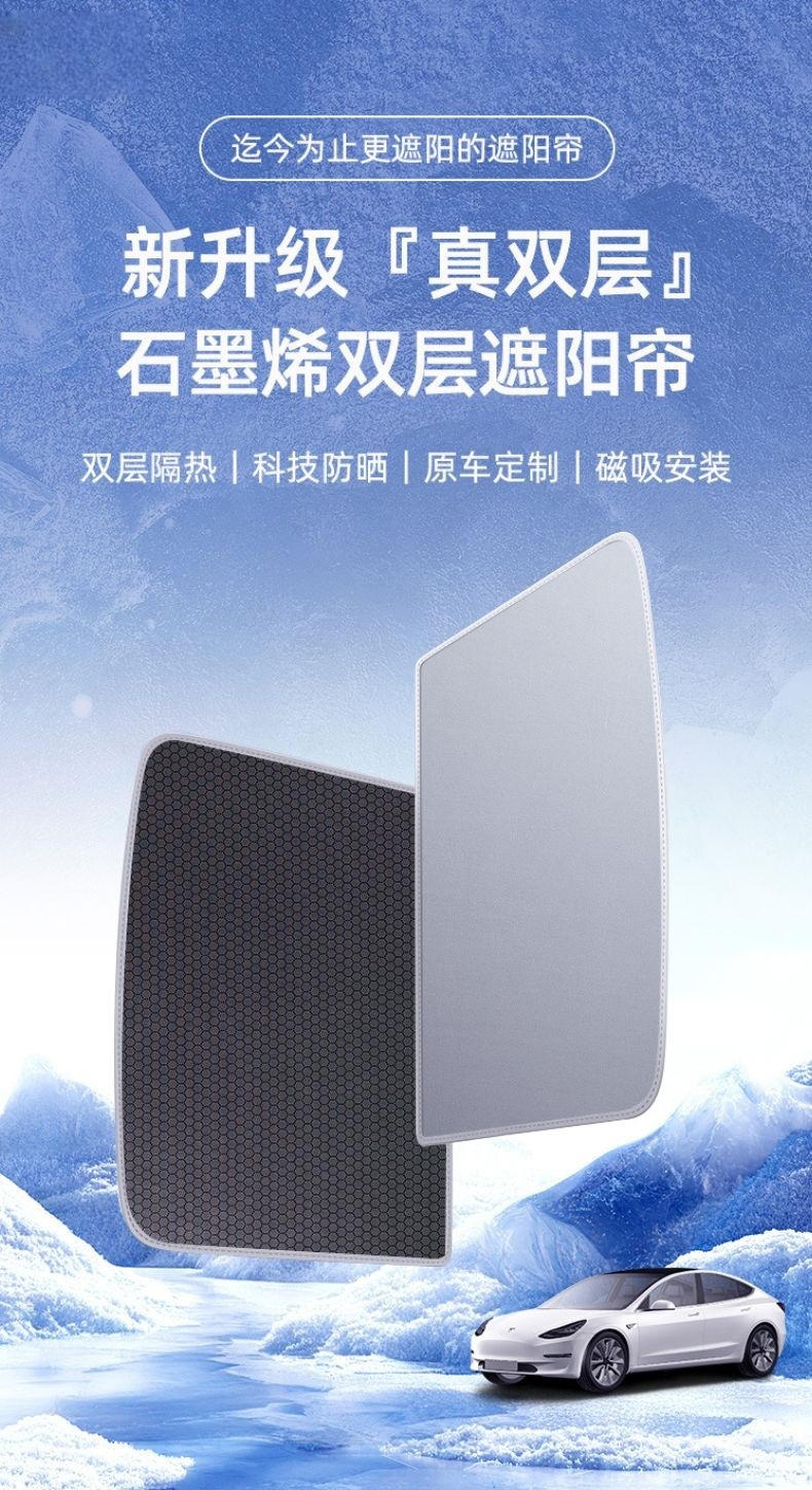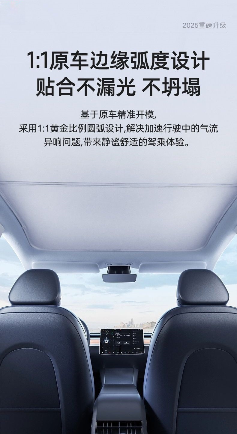 테슬라 모델YL3 선루프 차양막에 적합, 스웨이드 이중층 그래핀 자석식 단열 완전 차광