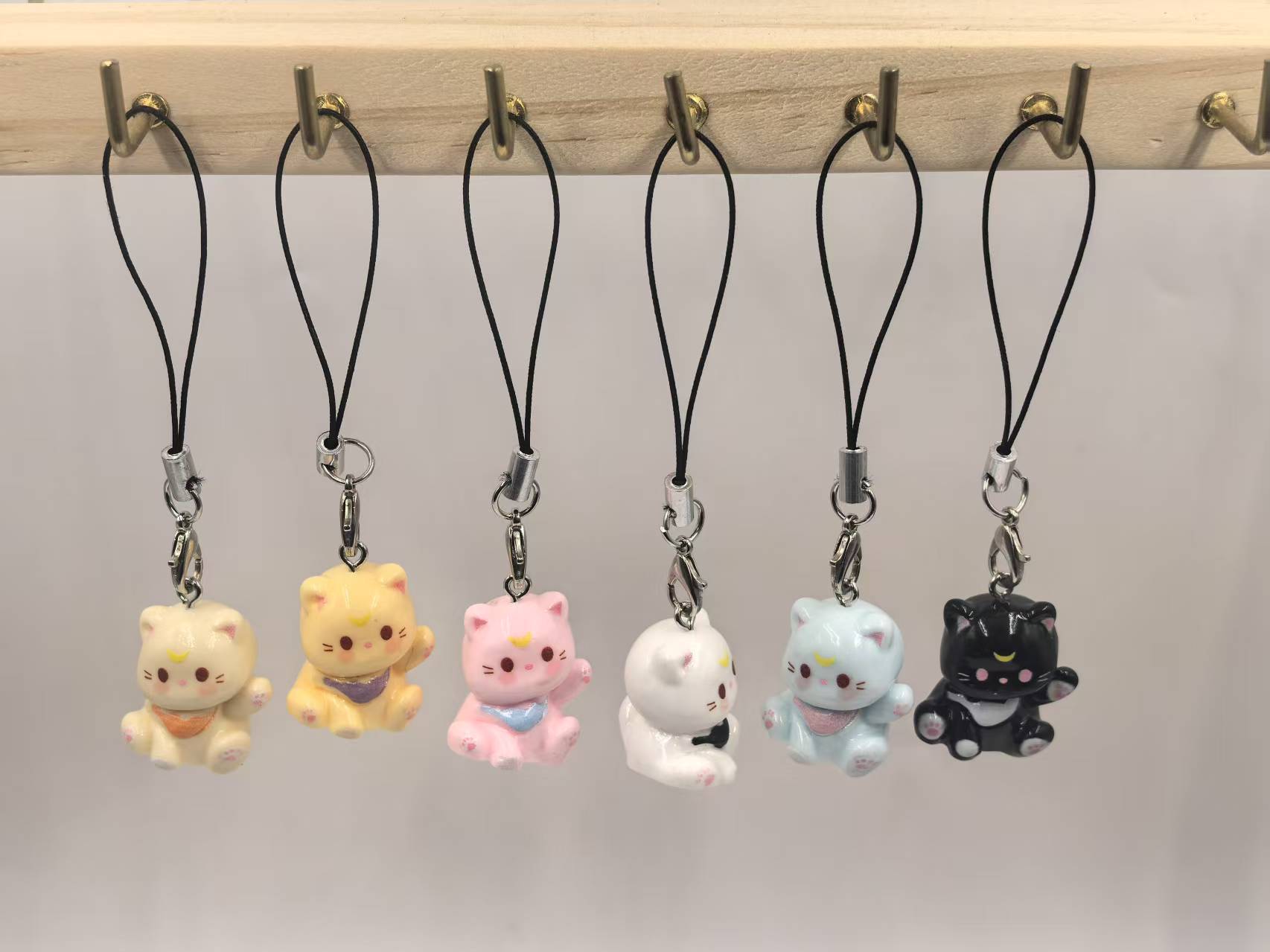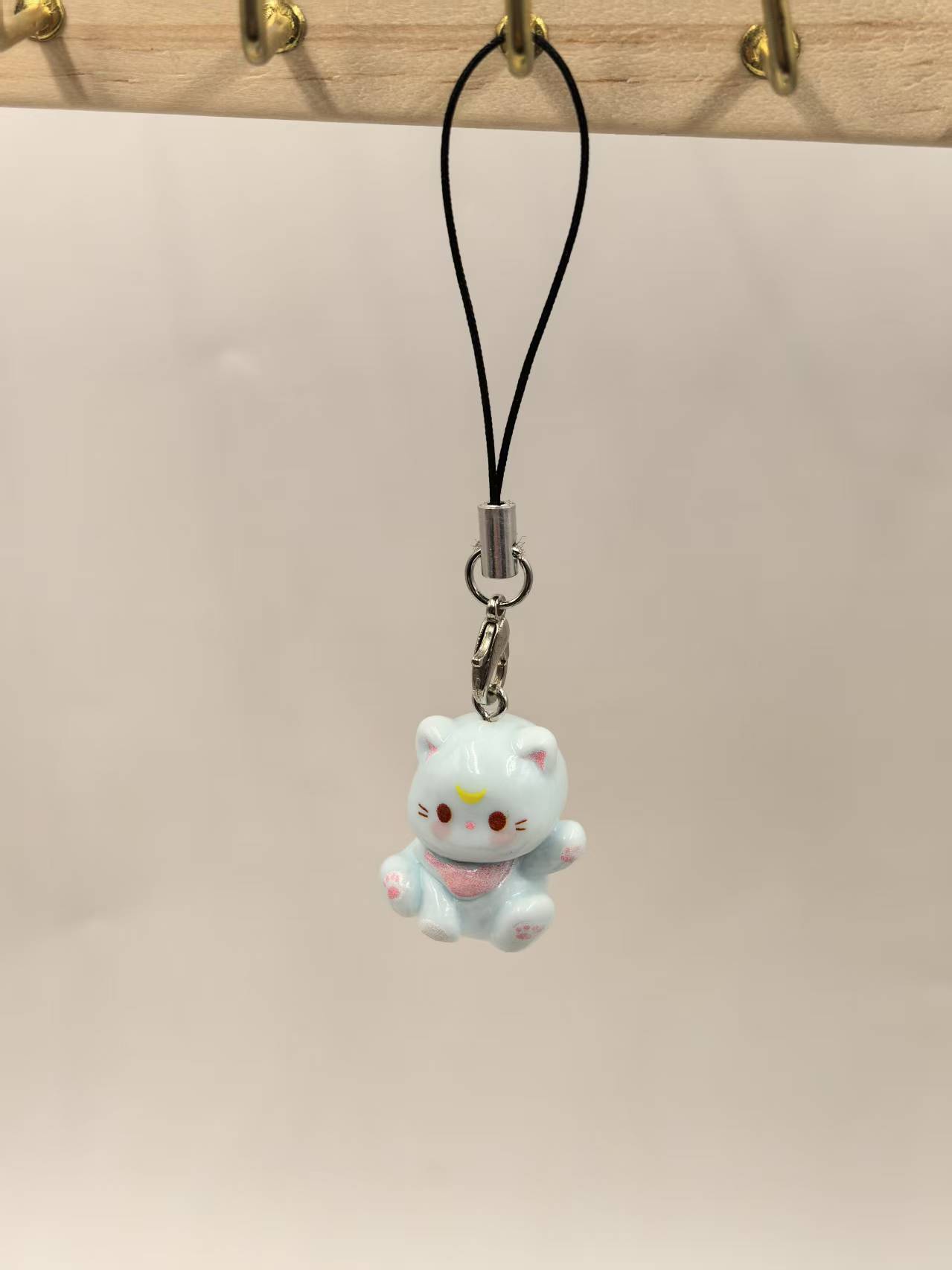 새로운 3 차원 만화 새끼 고양이 휴대 전화 체인 귀여운 수지 키 체인 학생 가방 펜던트 커플 여자 친구 선물