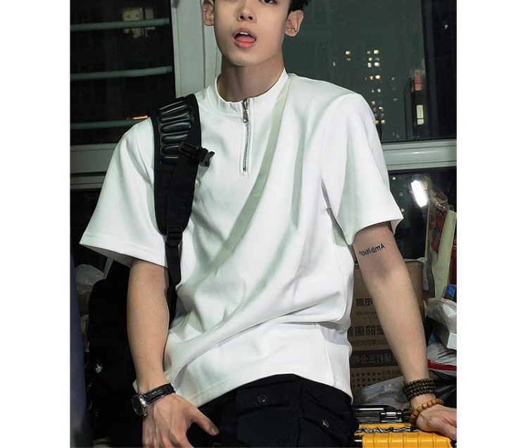 클렌핏 하프 지퍼 반소매 남성용 하이 엔드 느낌의 새로운 스타일 잘 생긴 미국식 숄더 티셔츠 헤비웨이트 스칼라 5 반소매