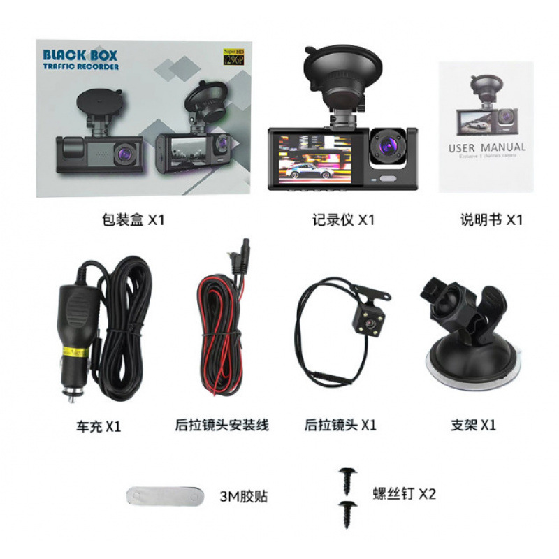 2寸屏私模行车记录仪3路高清1080P三镜头停车监控带夜视车载DVR
