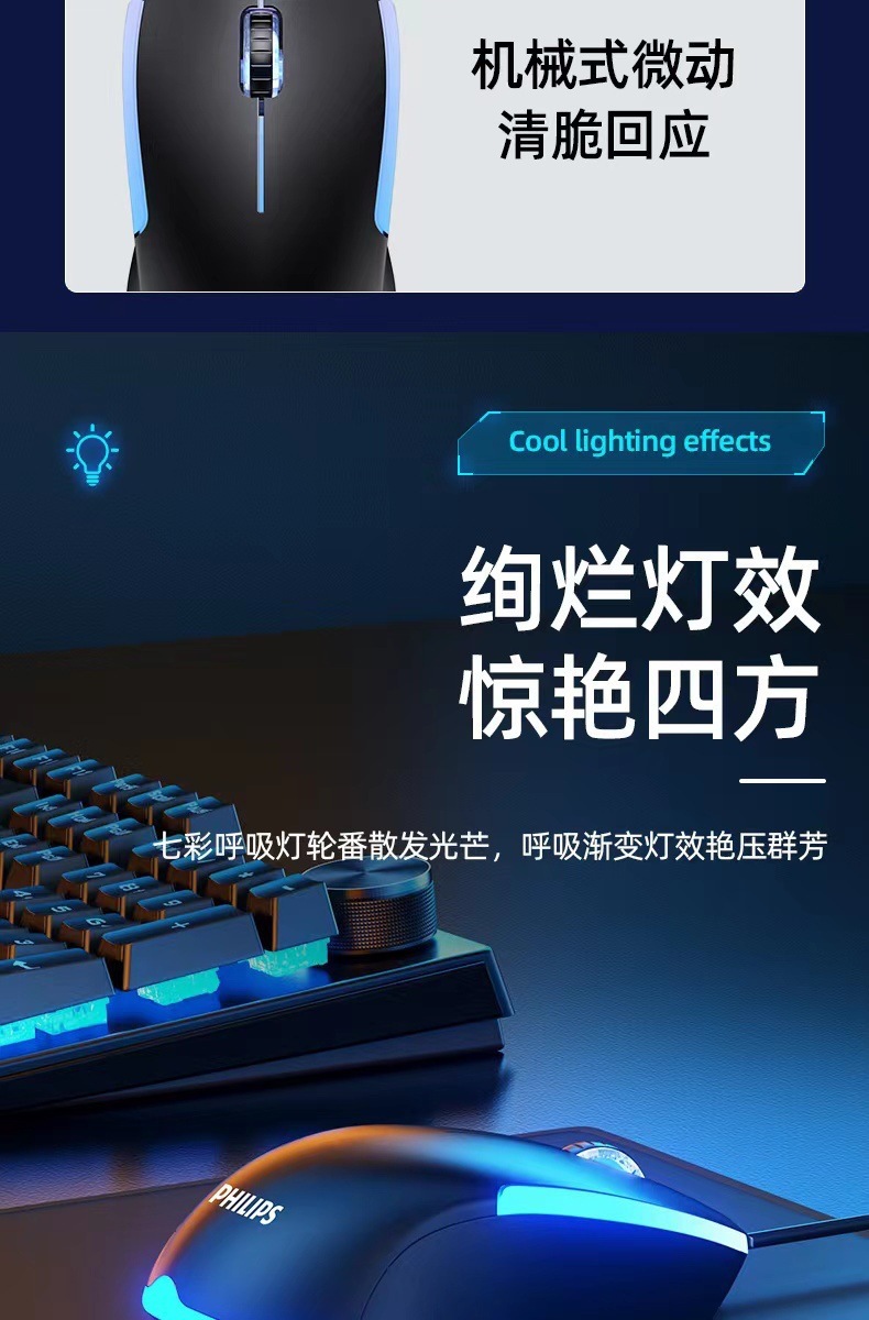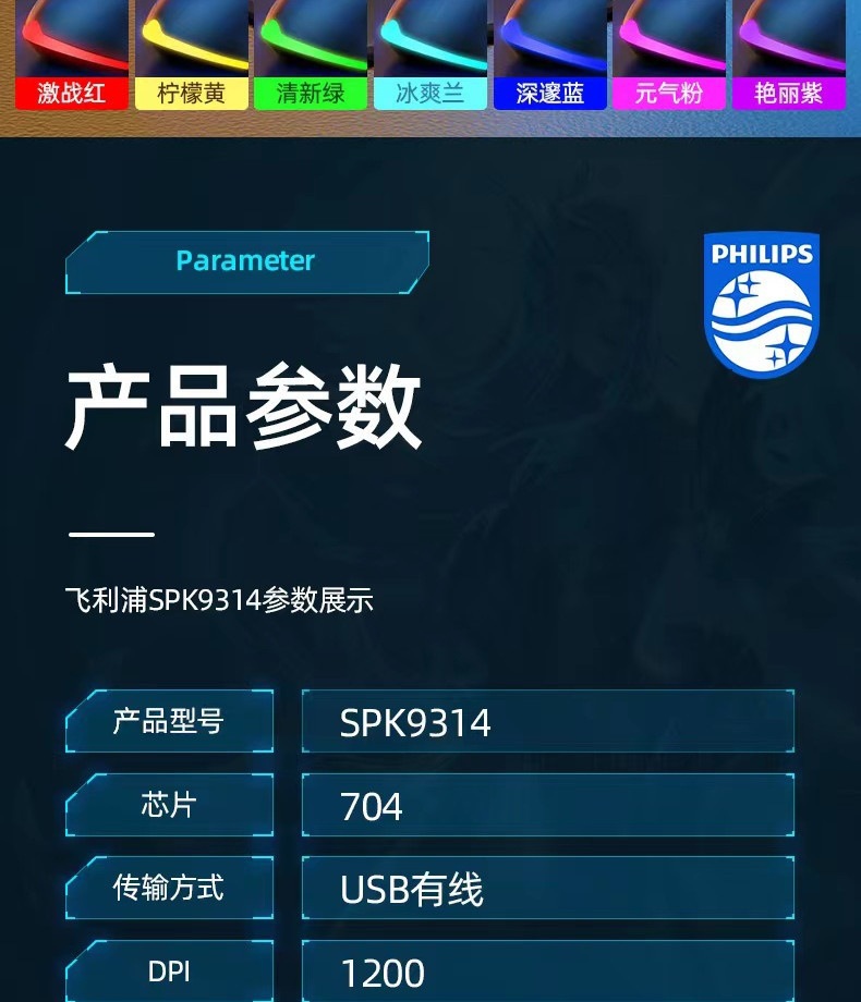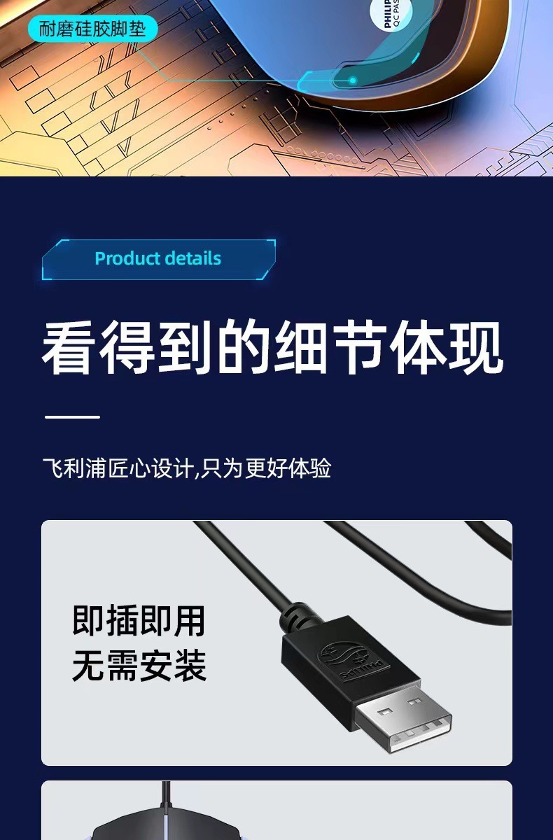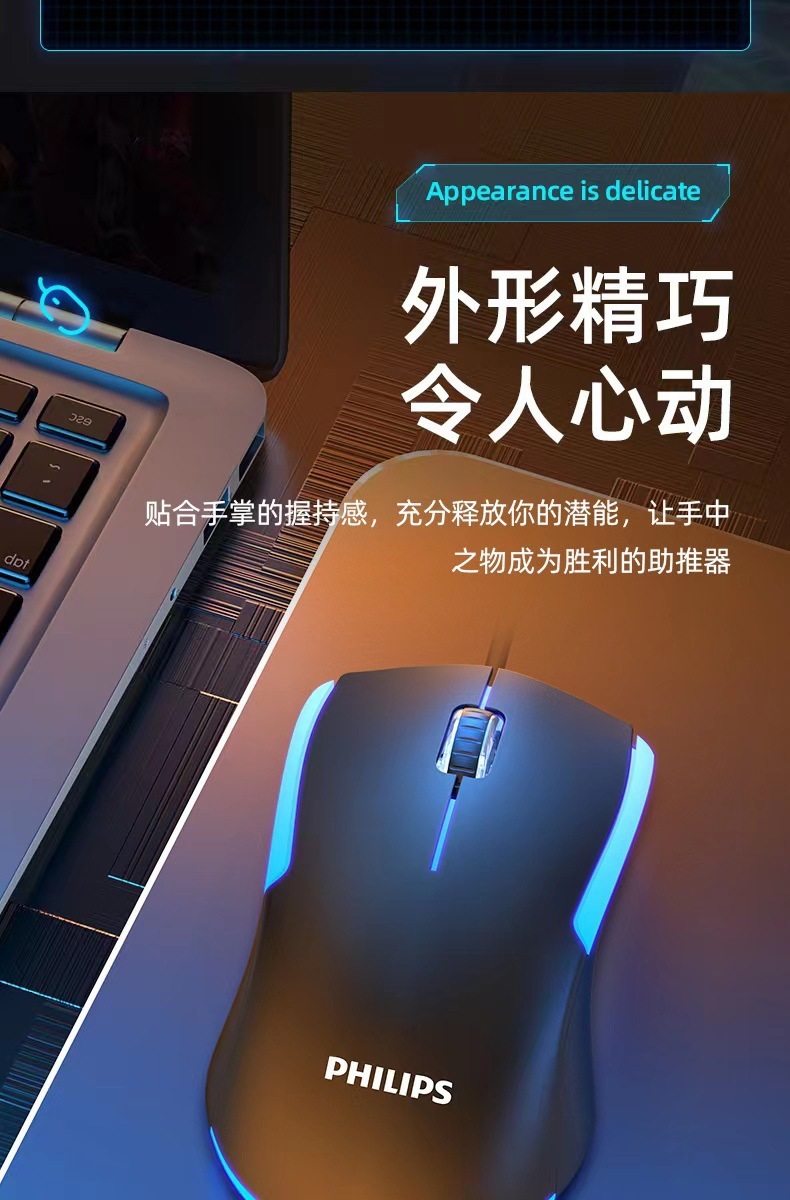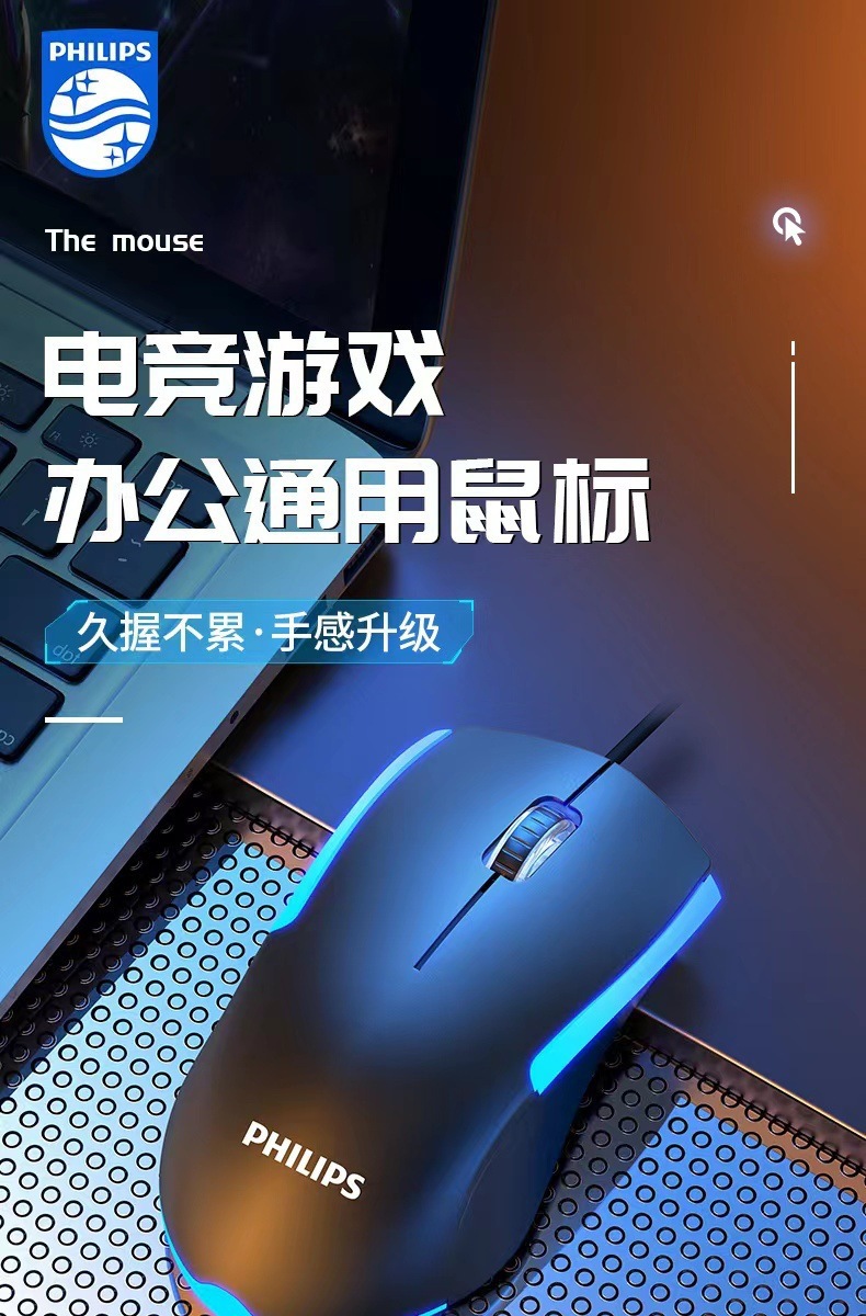 필립스 마우스 유선 SPK9314 게임 e-스포츠 사무실 인체 공학적 컴퓨터 자동 마우스 선물 도매스토어 가기