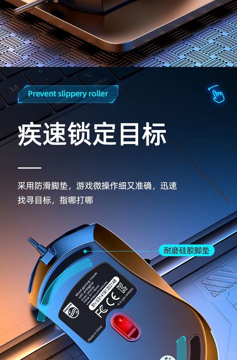 필립스 마우스 유선 SPK9314 게임 e-스포츠 사무실 인체 공학적 컴퓨터 자동 마우스 선물 도매