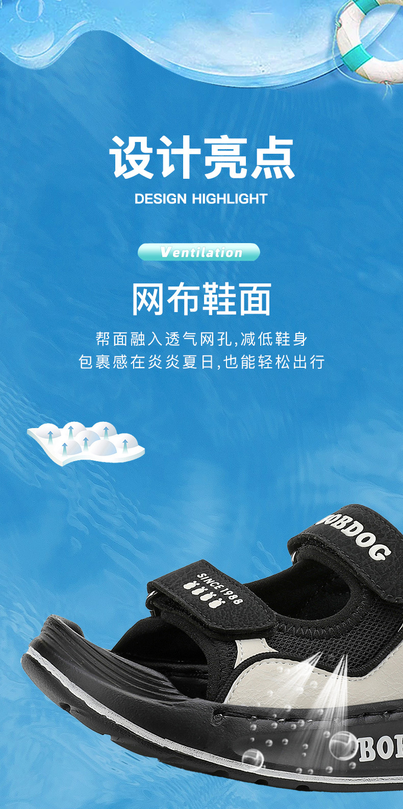 바부 콩 소년 샌들 여름 2025 새로운 대형 어린이 경량 미끄럼 방지 소프트 하단 소년 스포츠 비치 신발
