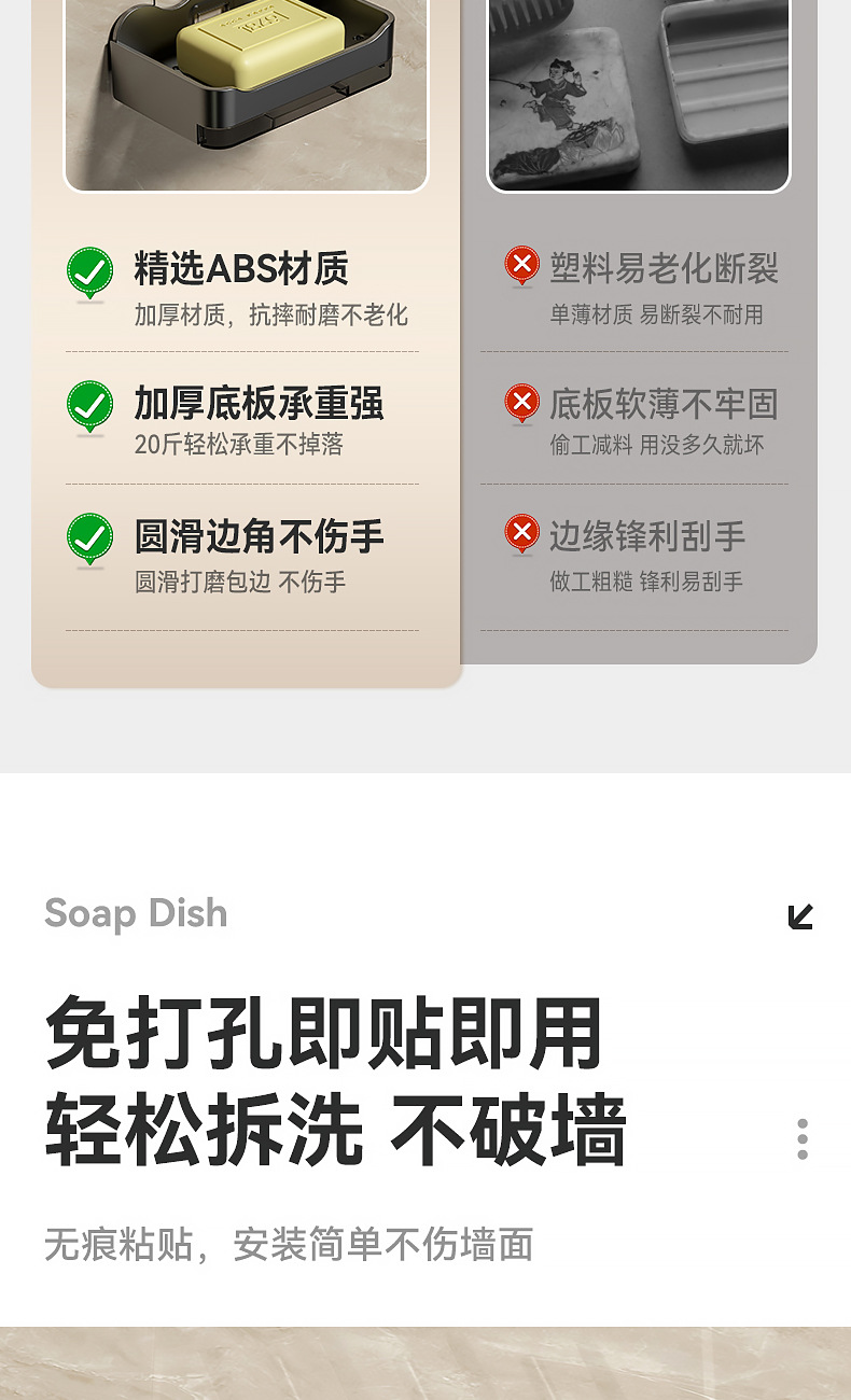 소스 공장 비누 상자 벽걸이 형 욕실 펀치없는 이중층 비누 배수 상자 가정용 욕실 비누 상자