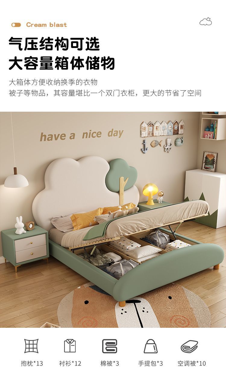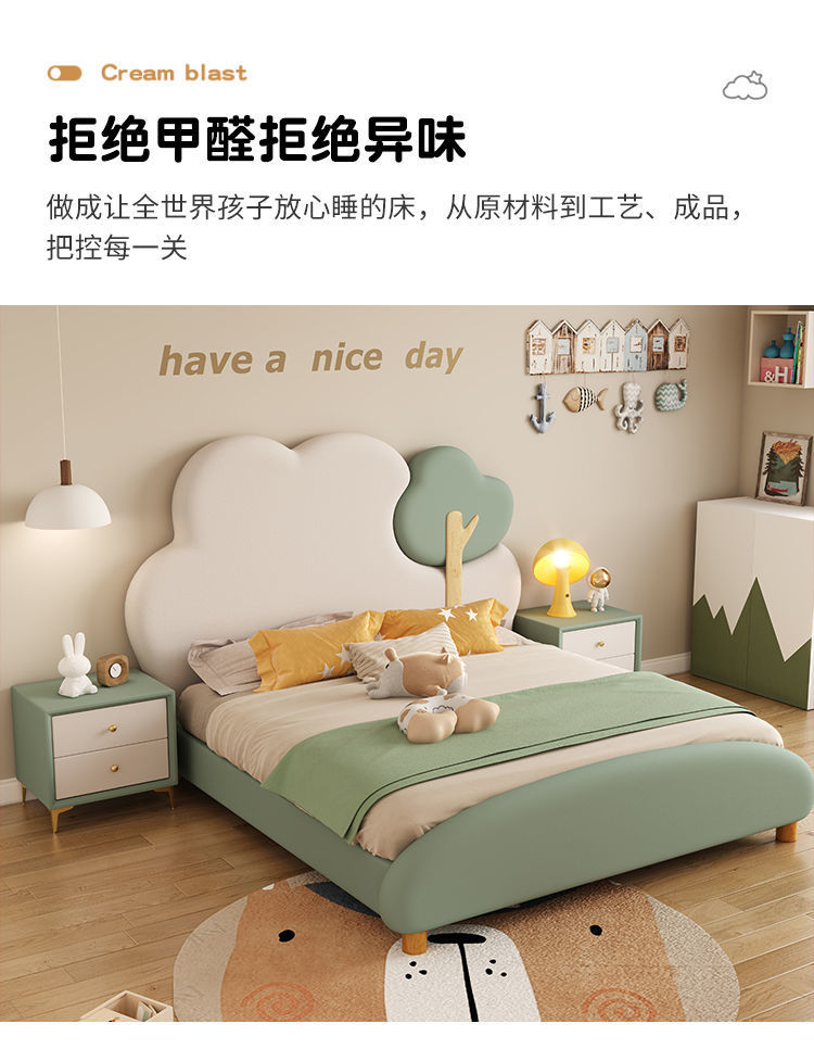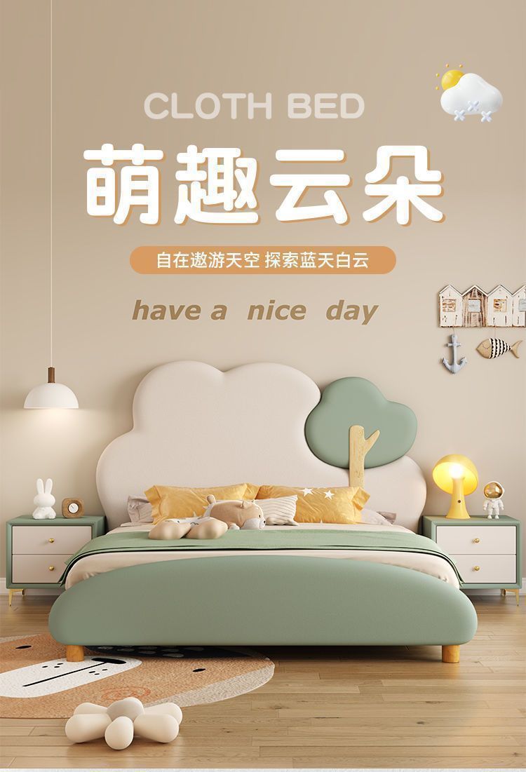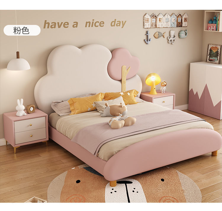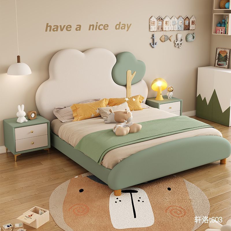 어린이 침대 소년 어린이 순수 인터넷 연예인 크리 에이 티브 클라우드 침대 현대 간단한 침실. 미 소녀 단단한 나무 가죽 침대스토어 가기