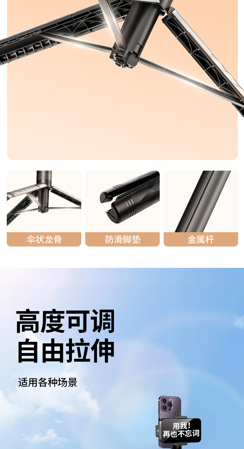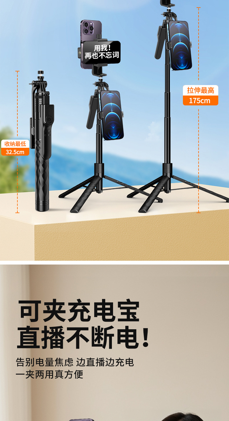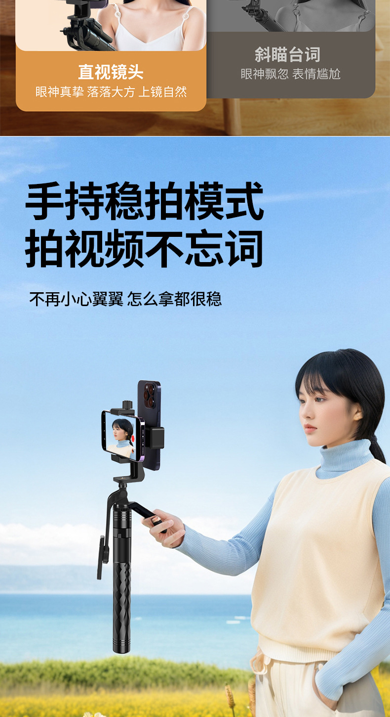 휴대폰 홀더, 오프라인 텔레프롬프터, 라이브 방송 전용 삼각대 2025 새로운 휴대용 셀카봉, 바닥에서 야외까지스토어 가기
