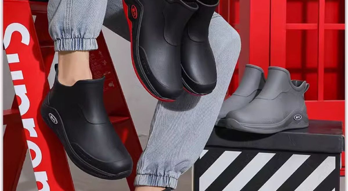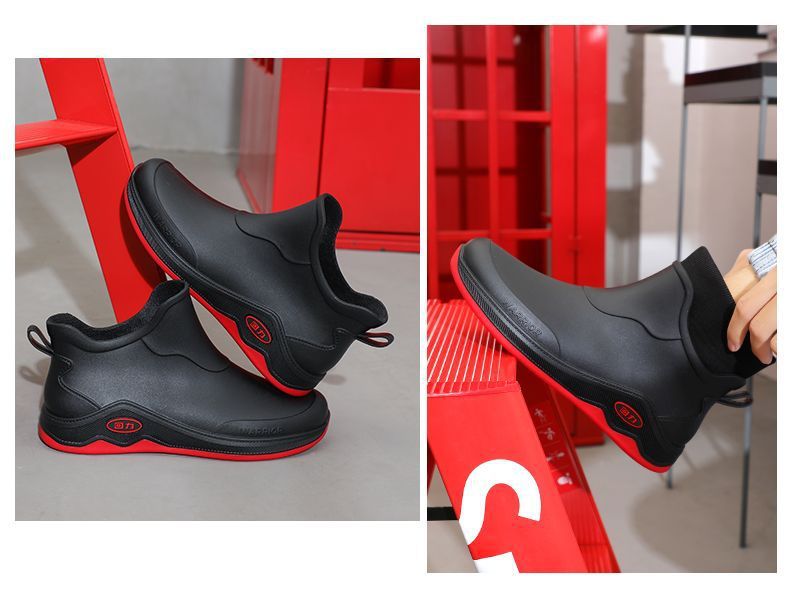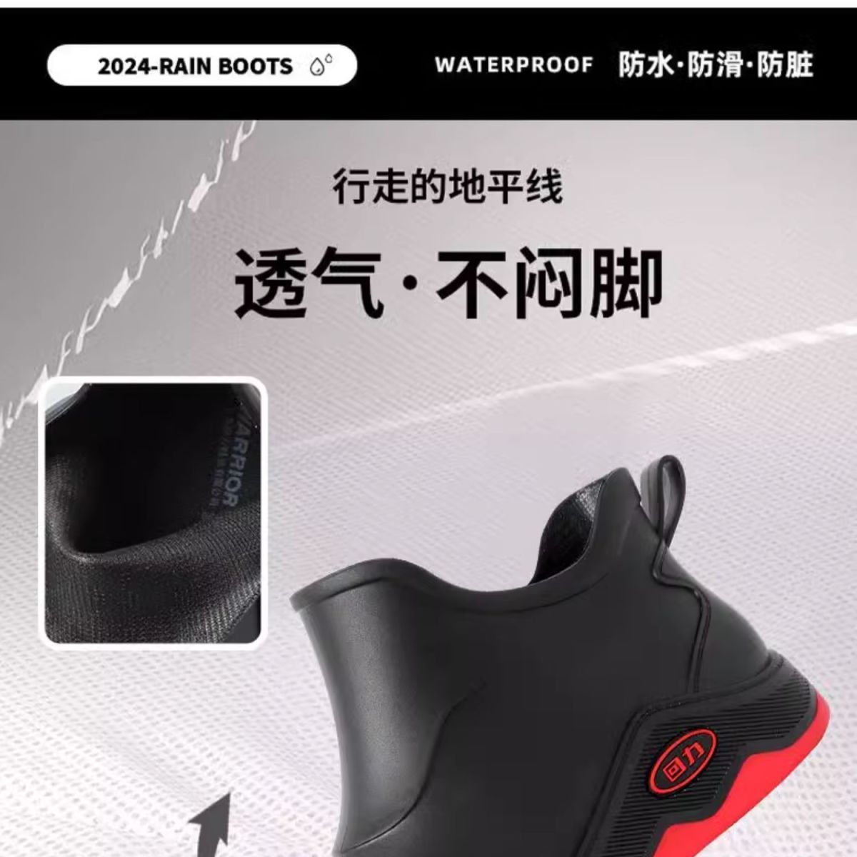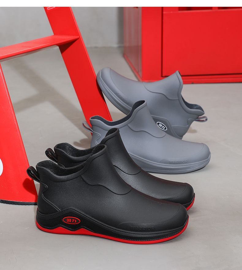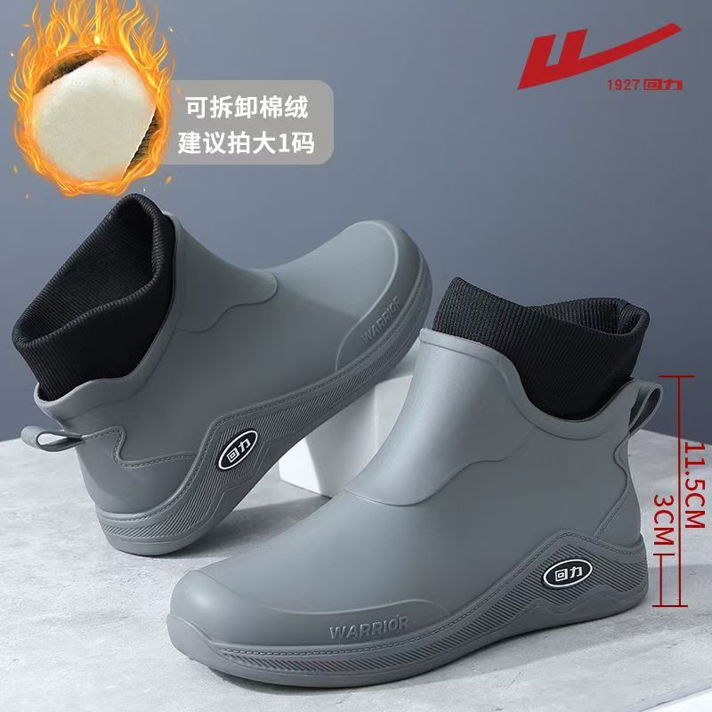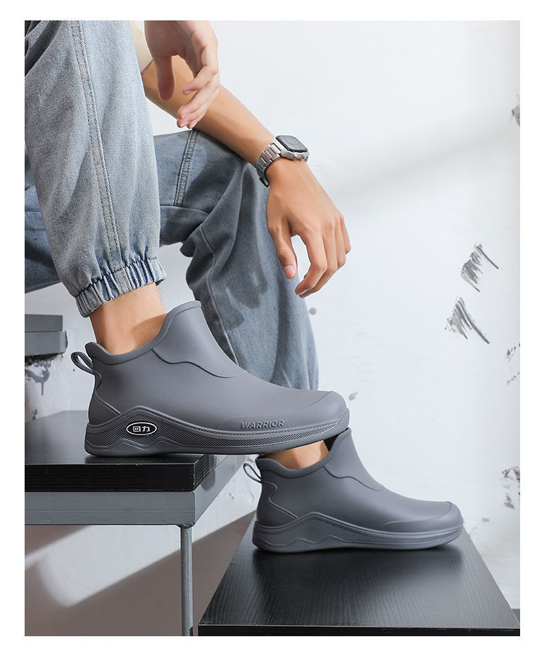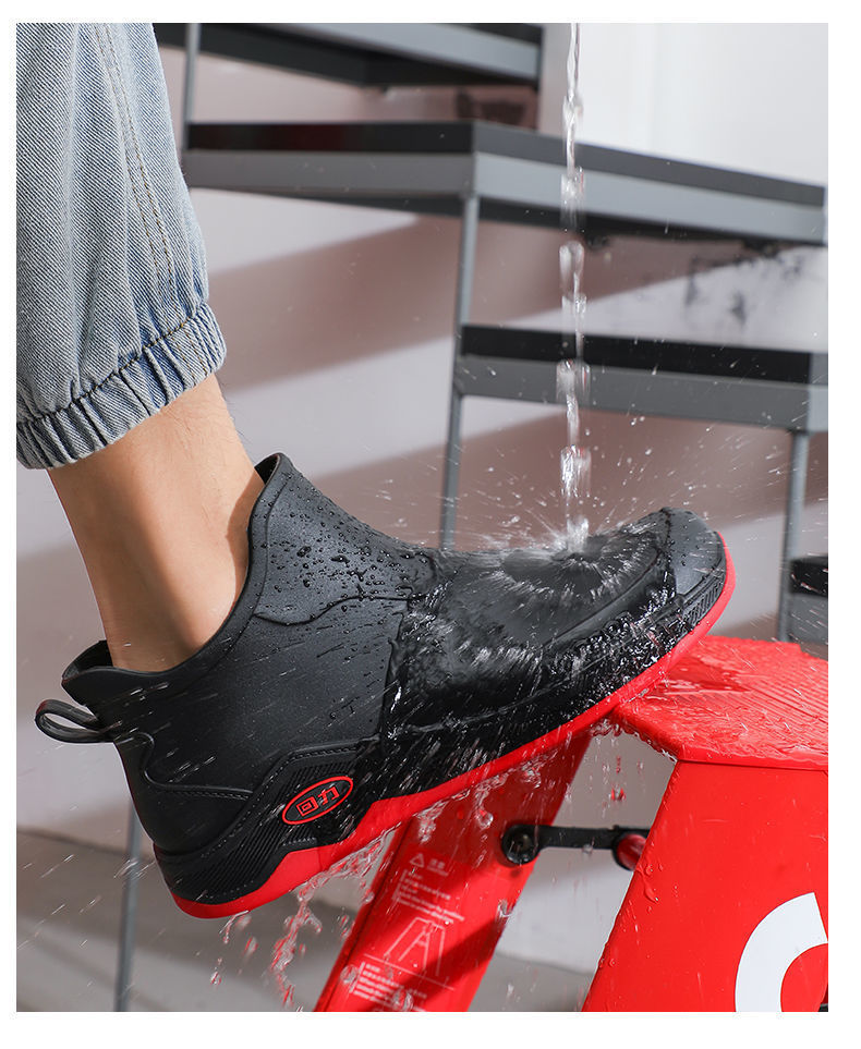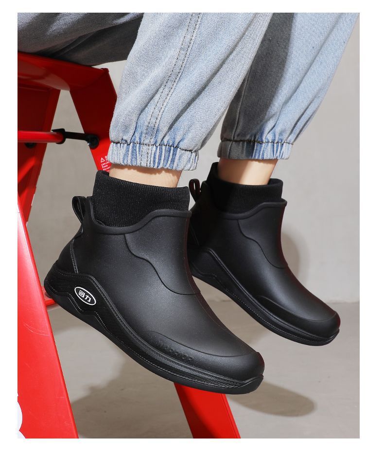 상하이 풀백 레인부츠, 남성용 워터슈즈, 방수 슬리퍼 부츠, 힘줄 밑창 부츠, 내마모성 고무신, 중간 높이 노동 보호 덧신스토어 가기