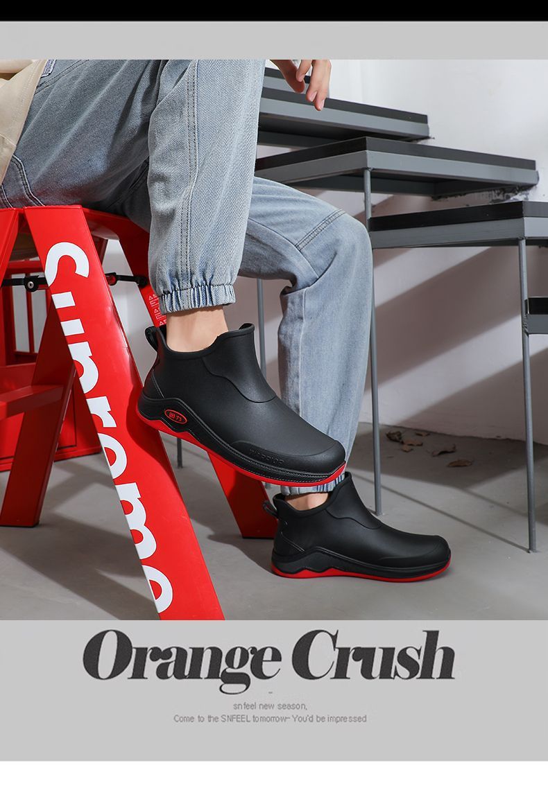 상하이 풀백 레인부츠, 남성용 워터슈즈, 방수 슬리퍼 부츠, 힘줄 밑창 부츠, 내마모성 고무신, 중간 높이 노동 보호 덧신
