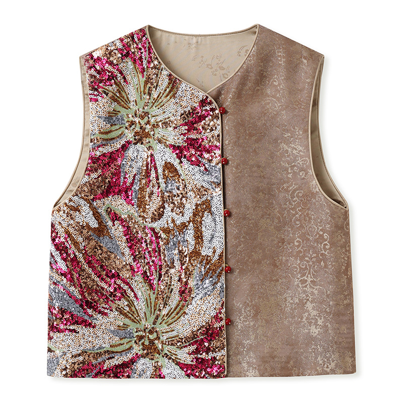 새로운 중국 스타일 국가 스타일 여성 의류 2025 새로운 스타일 라이트 럭셔리 조끼 스팽글 자수 디자인 레이온 조끼 N3105