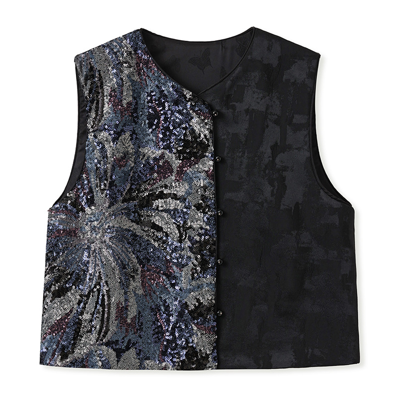 새로운 중국 스타일 국가 스타일 여성 의류 2025 새로운 스타일 라이트 럭셔리 조끼 스팽글 자수 디자인 레이온 조끼 N3105스토어 가기
