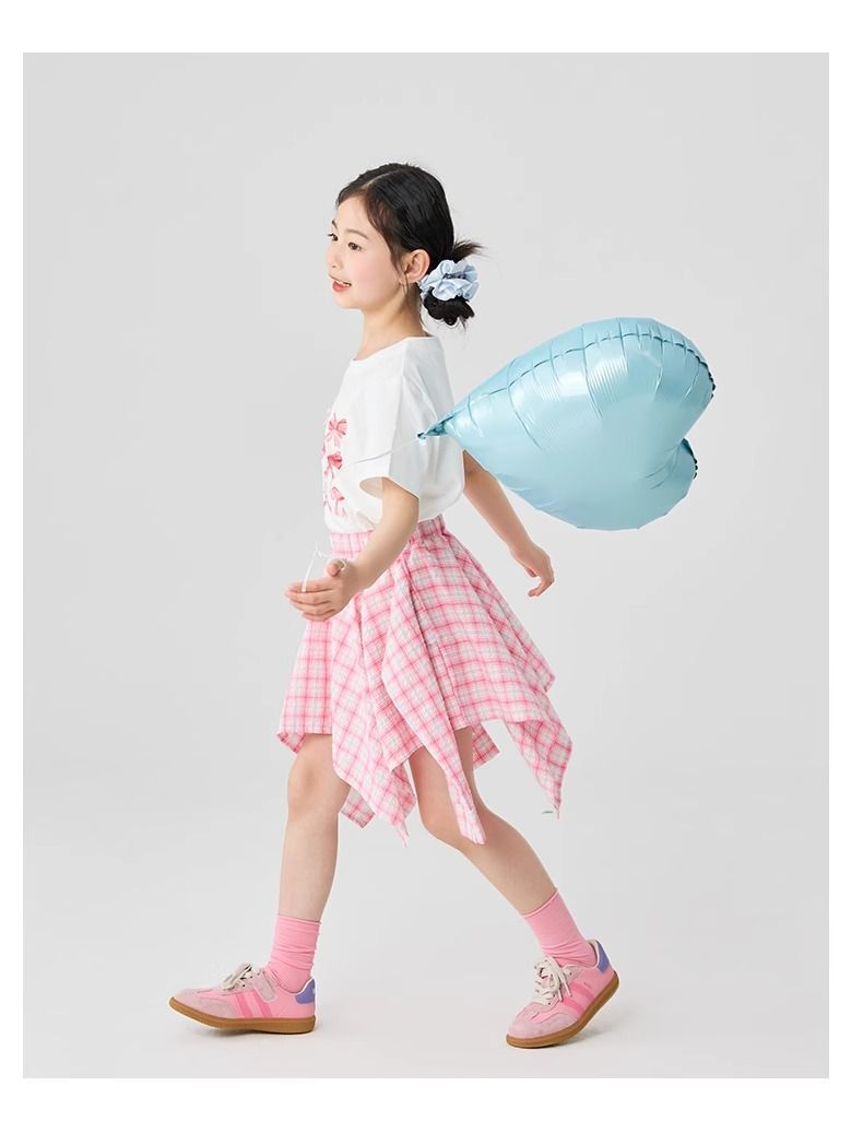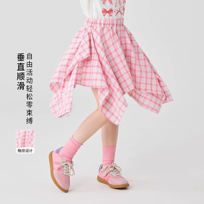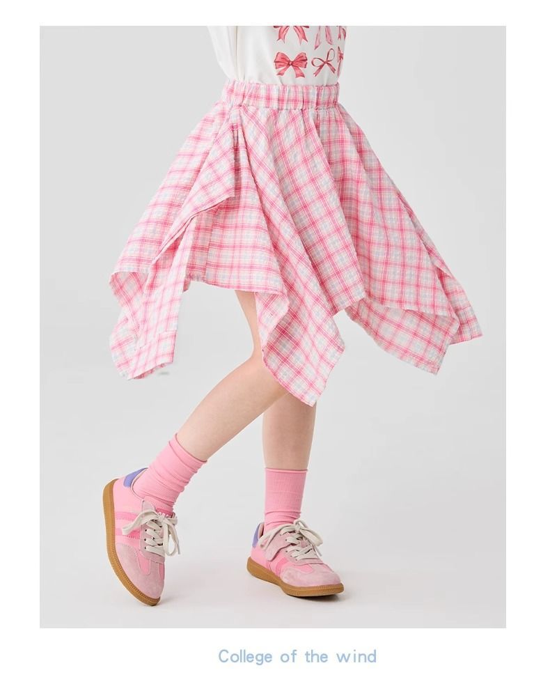 여자 격자 무늬 스커트 여름 새로운 어린이 소녀 패션 캐주얼 스타일 불규칙한 스커트 소녀 짧은 치마스토어 가기