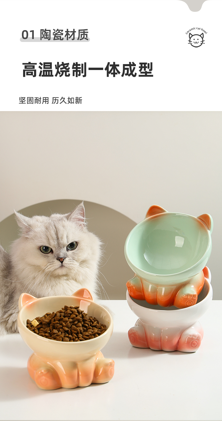 점진적 변화 고양이 그릇 세라믹 보호 자궁 경부 척추 고양이 그릇 음식 분지 물 그릇 고양이 분지 개 사발 입 애완 동물 그릇 안티 노크스토어 가기