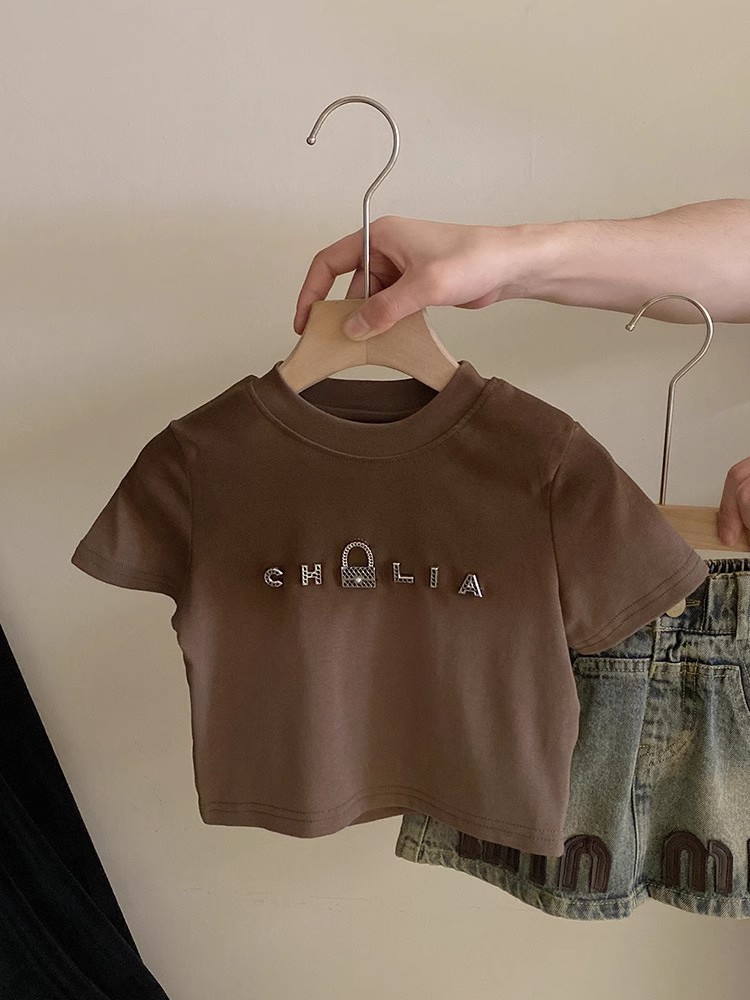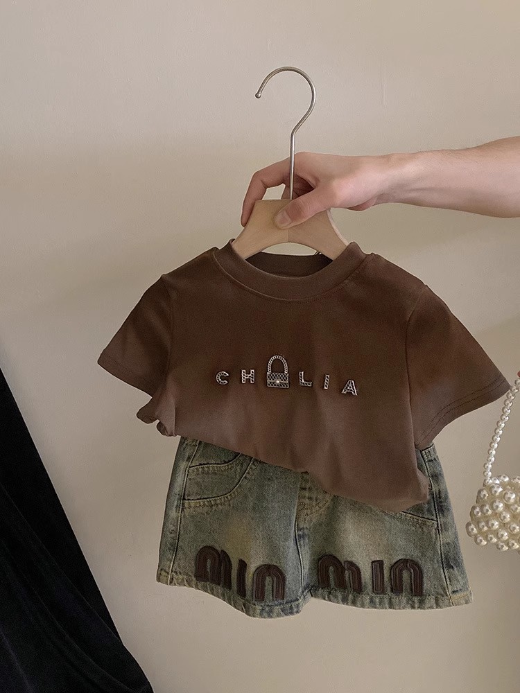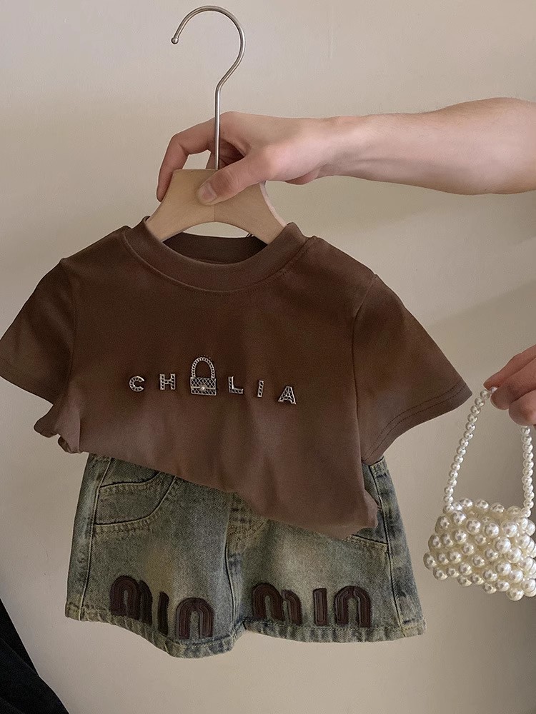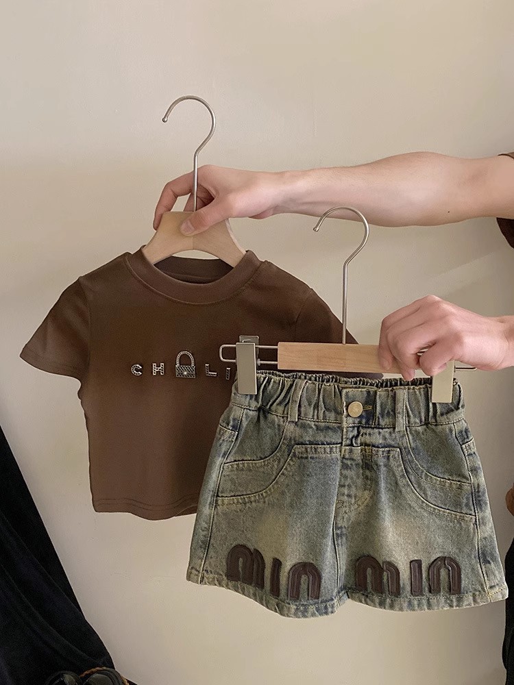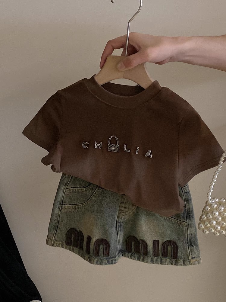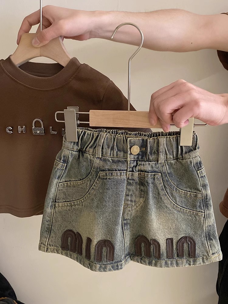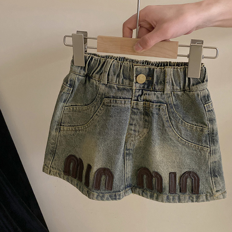 한국 아동복 여아 쇼트스커트 데님 스커트 2025 새 여름 아기소녀 편지 올매치 트렌디한 중소형 어린이스토어 가기