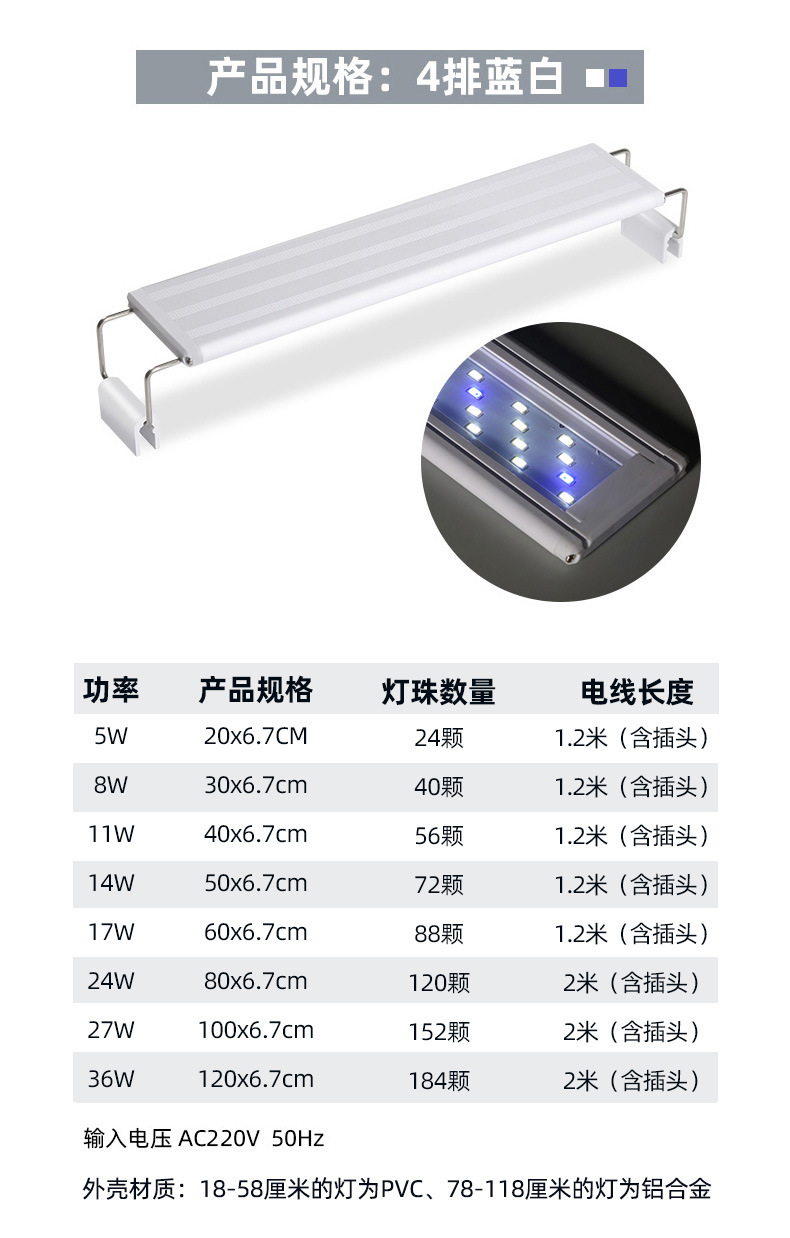 • 20CM 길이의 파란색과 흰색 조명 4줄(20-28CM 수조에 적합) 애완동물용