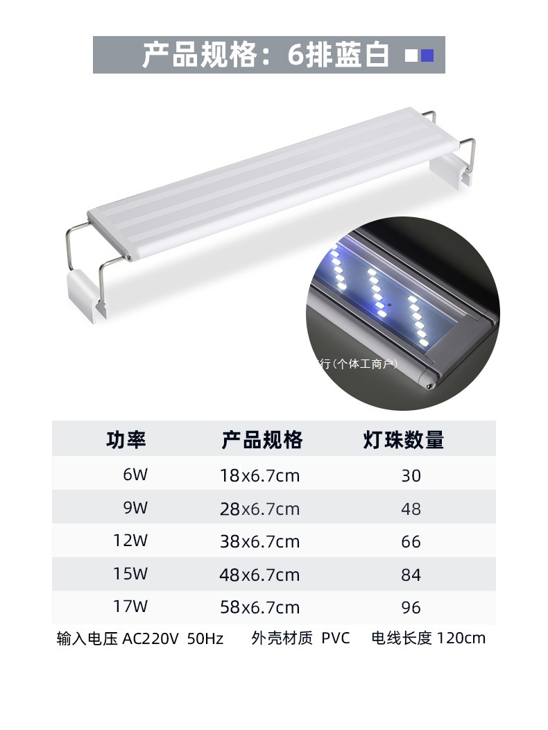 • 50CM 길이의 파란색과 흰색 조명 6줄(50-58CM 수조에 적합) 애완동물용