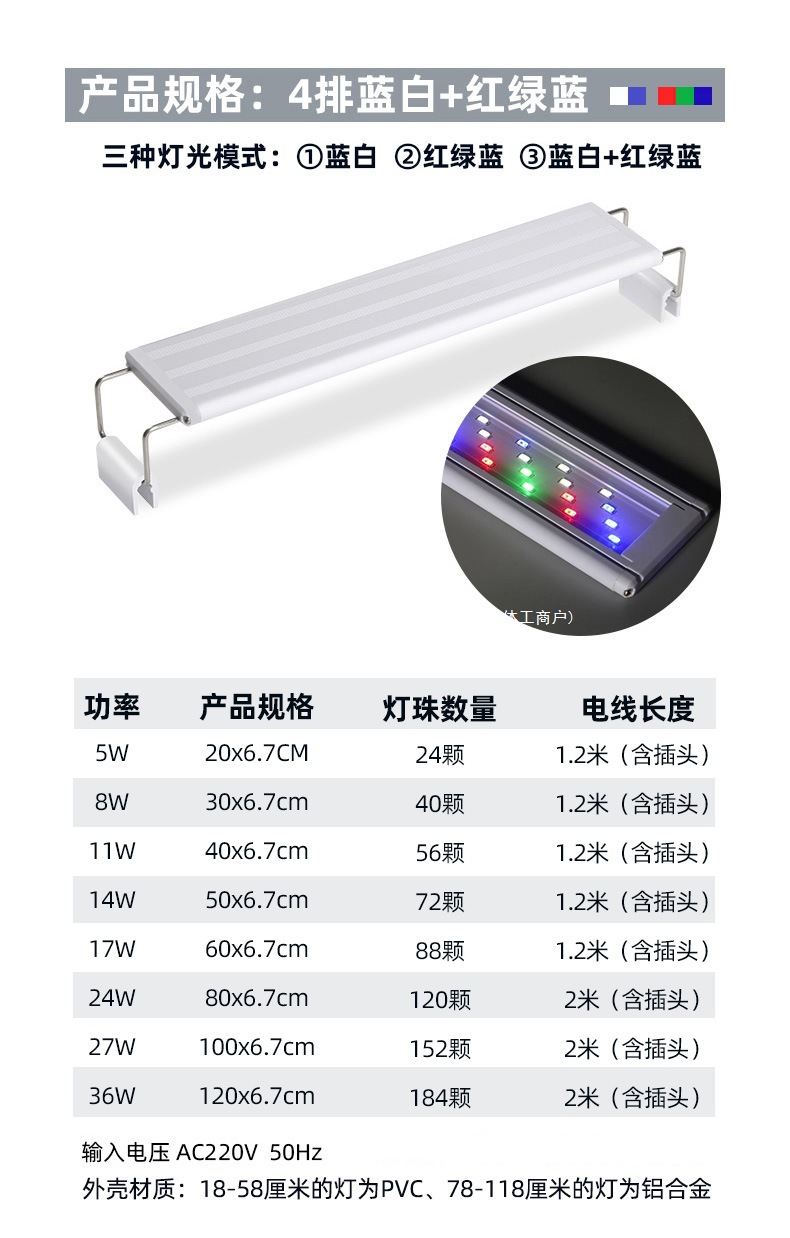 • 50CM 길이의 파란색과 흰색 조명 4줄(50-58CM 수조에 적합) 애완동물용