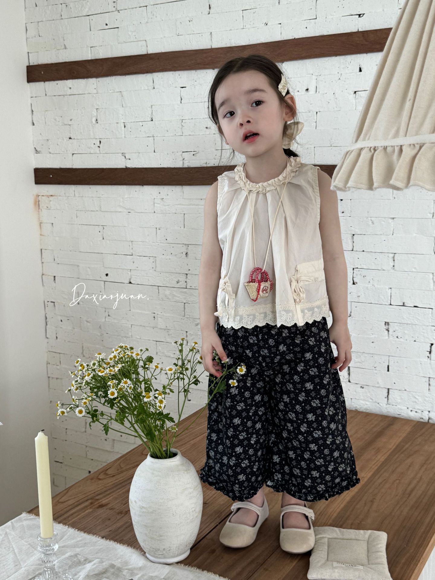 사이즈 롤 25 여름 새로운 소녀 귀여운 레이스 조끼 최고 꽃 넓은 다리 바지 투피스 세트 달콤한 스타일