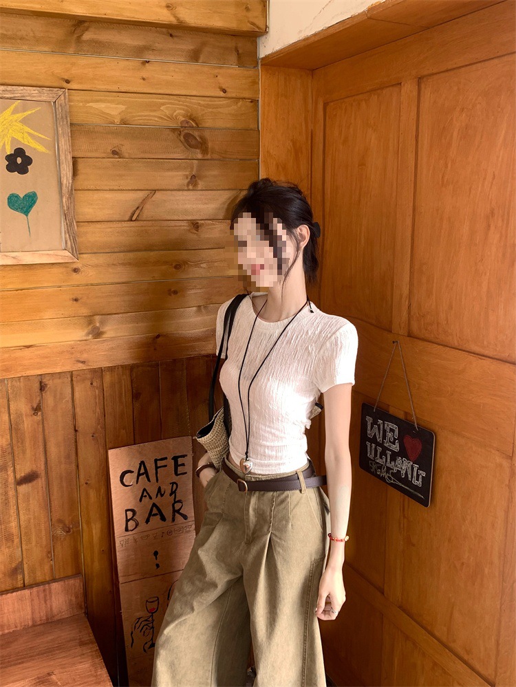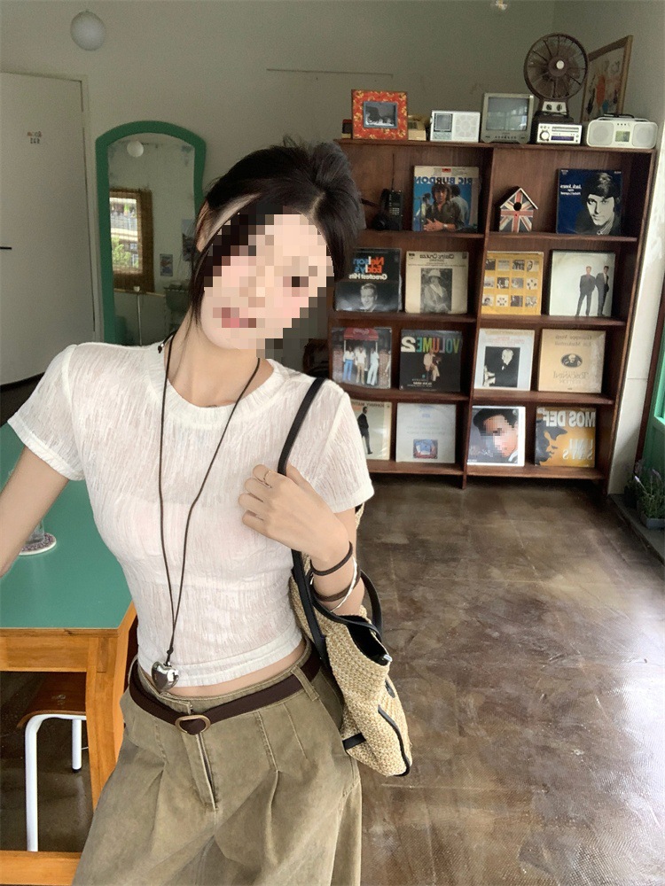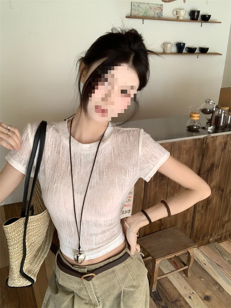 여름 핫 걸즈 백 중공 스트랩 크루 넥 작은 반팔 티셔츠 여성용 슬림 짧은 재킷스토어 가기