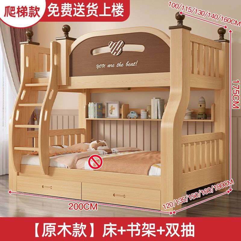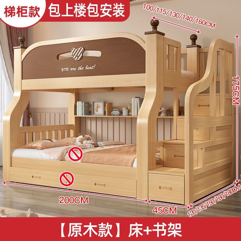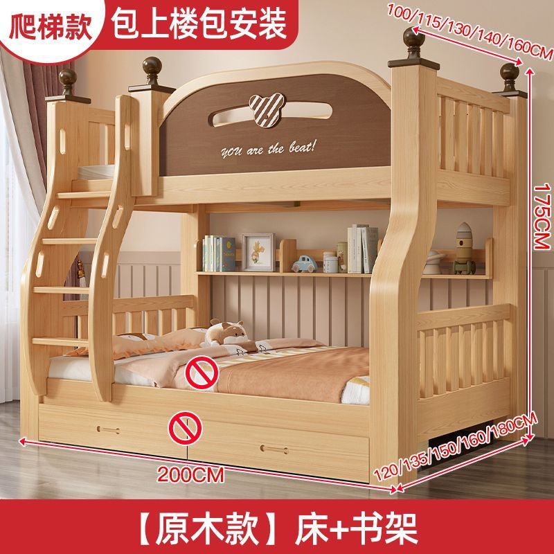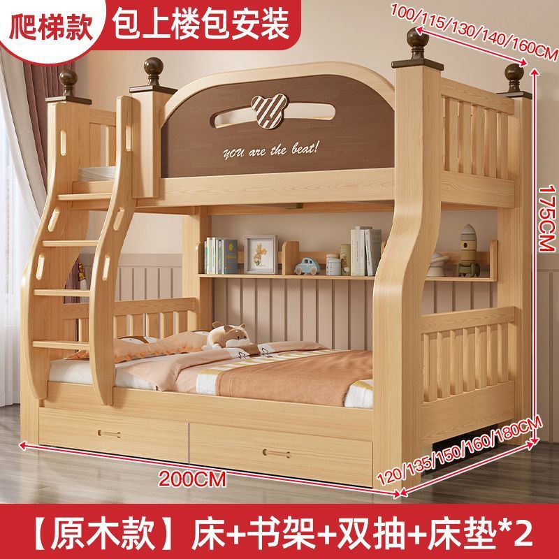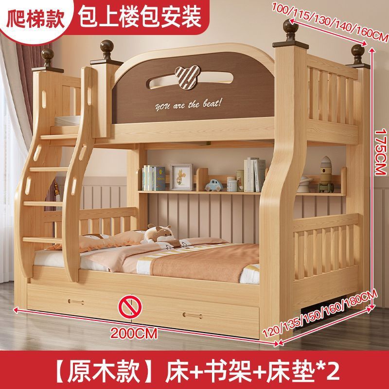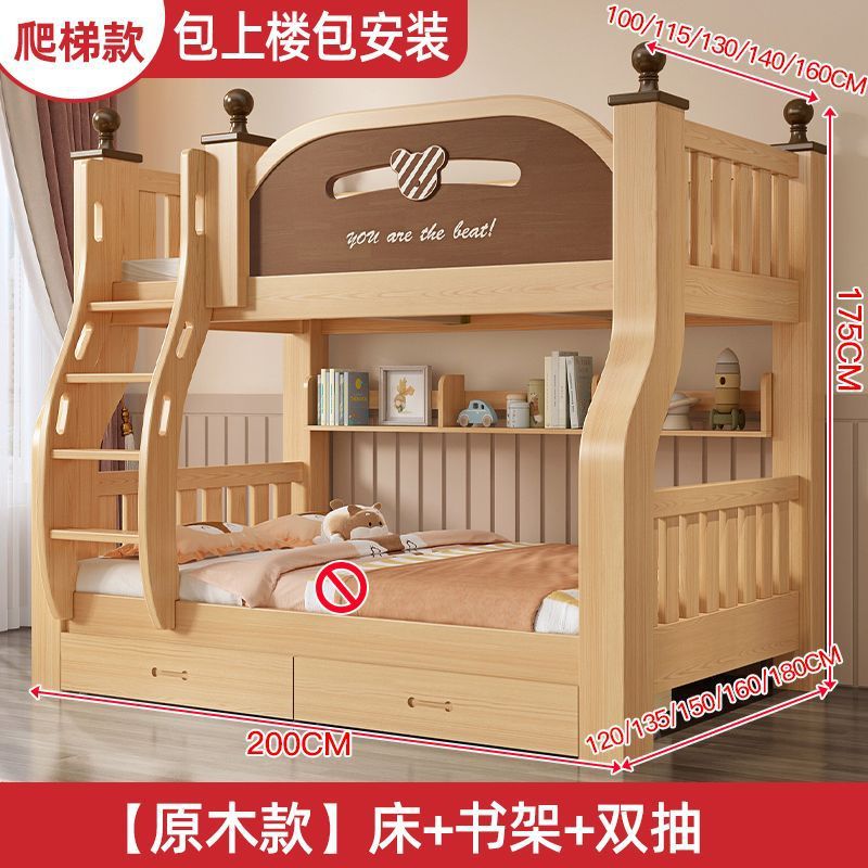 원목 이층침대, 두껍고 두꺼운 이층침대, 2층 어린이침대, 6~12세, 높낮이, 완전 밀폐형