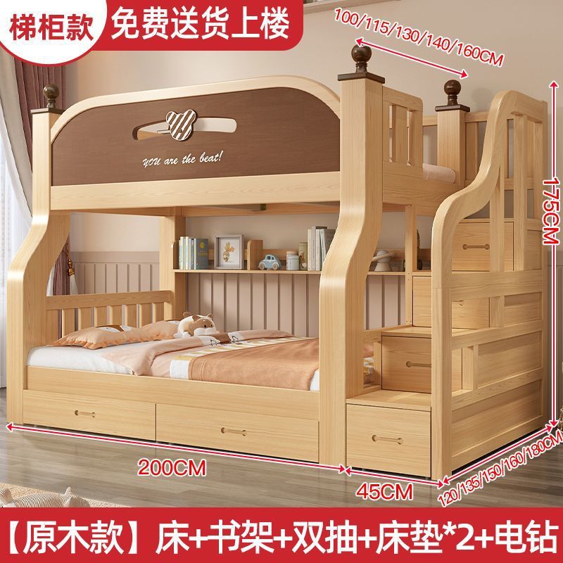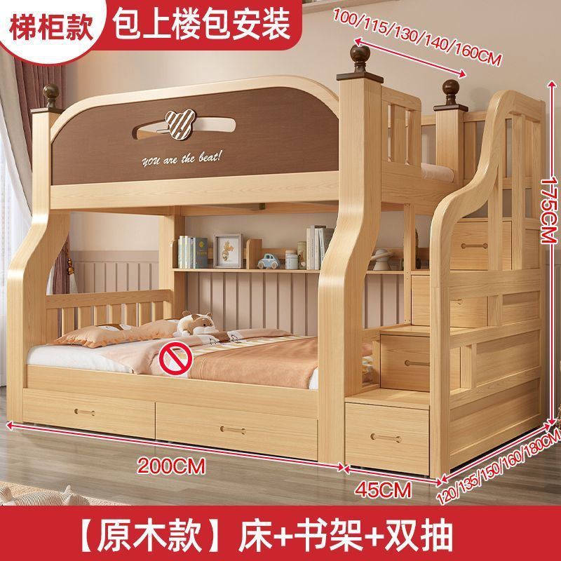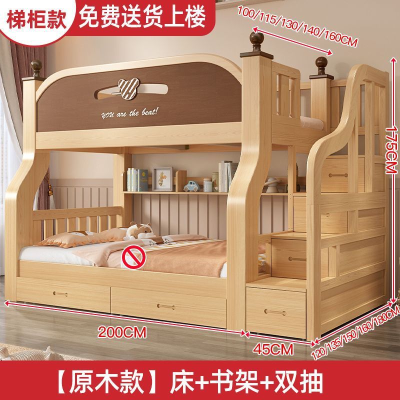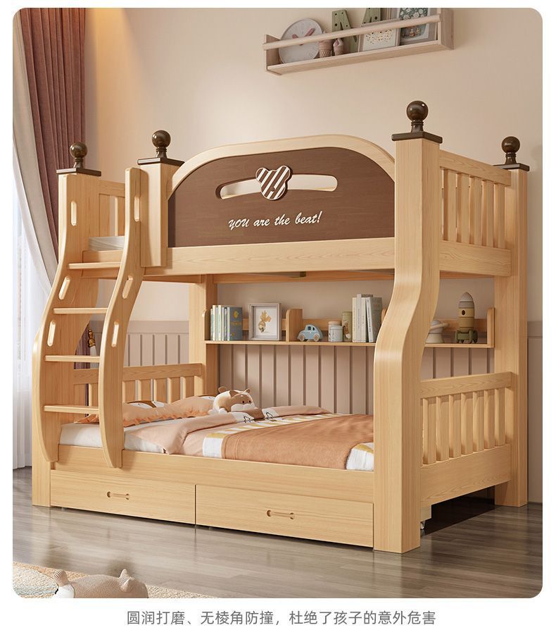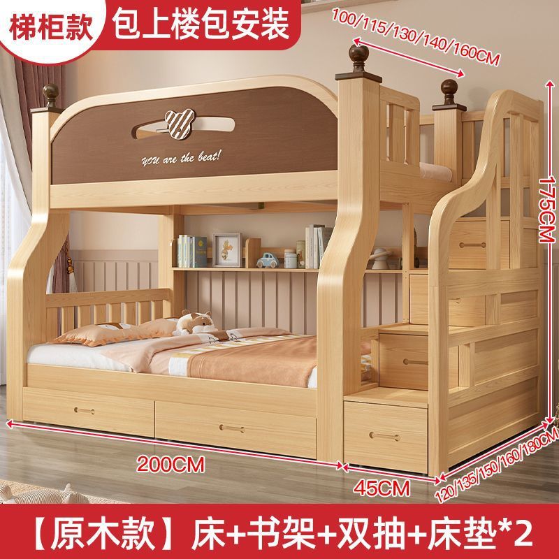 원목 이층침대, 두껍고 두꺼운 이층침대, 2층 어린이침대, 6~12세, 높낮이, 완전 밀폐형