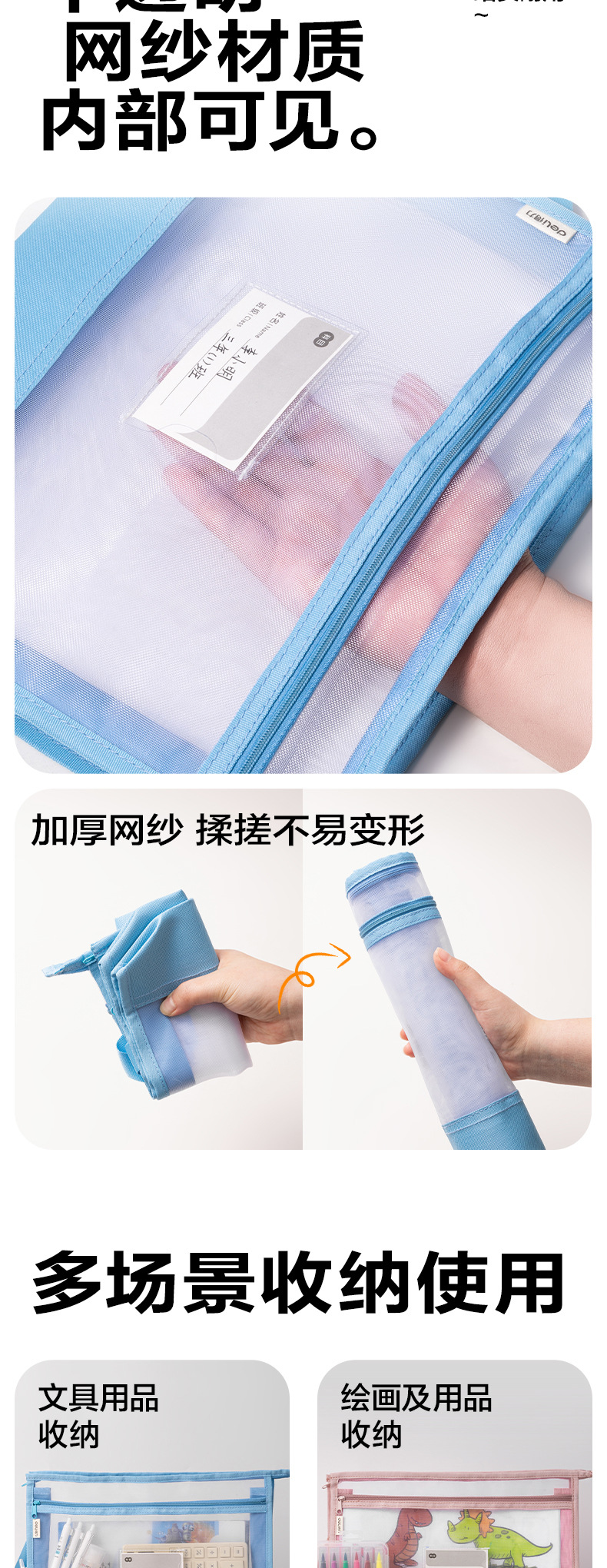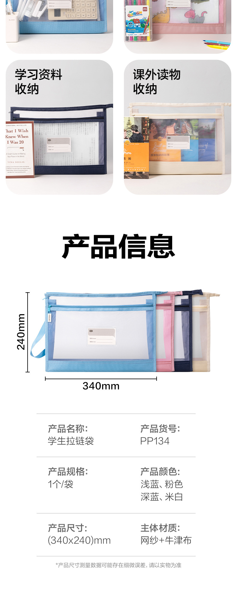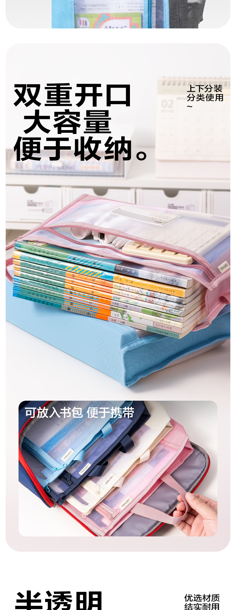 델리 PP134 대형 넓은 메쉬 지퍼백 교과서 교과서 수업 도서 가방 숙제 가방 시트 정보 가방