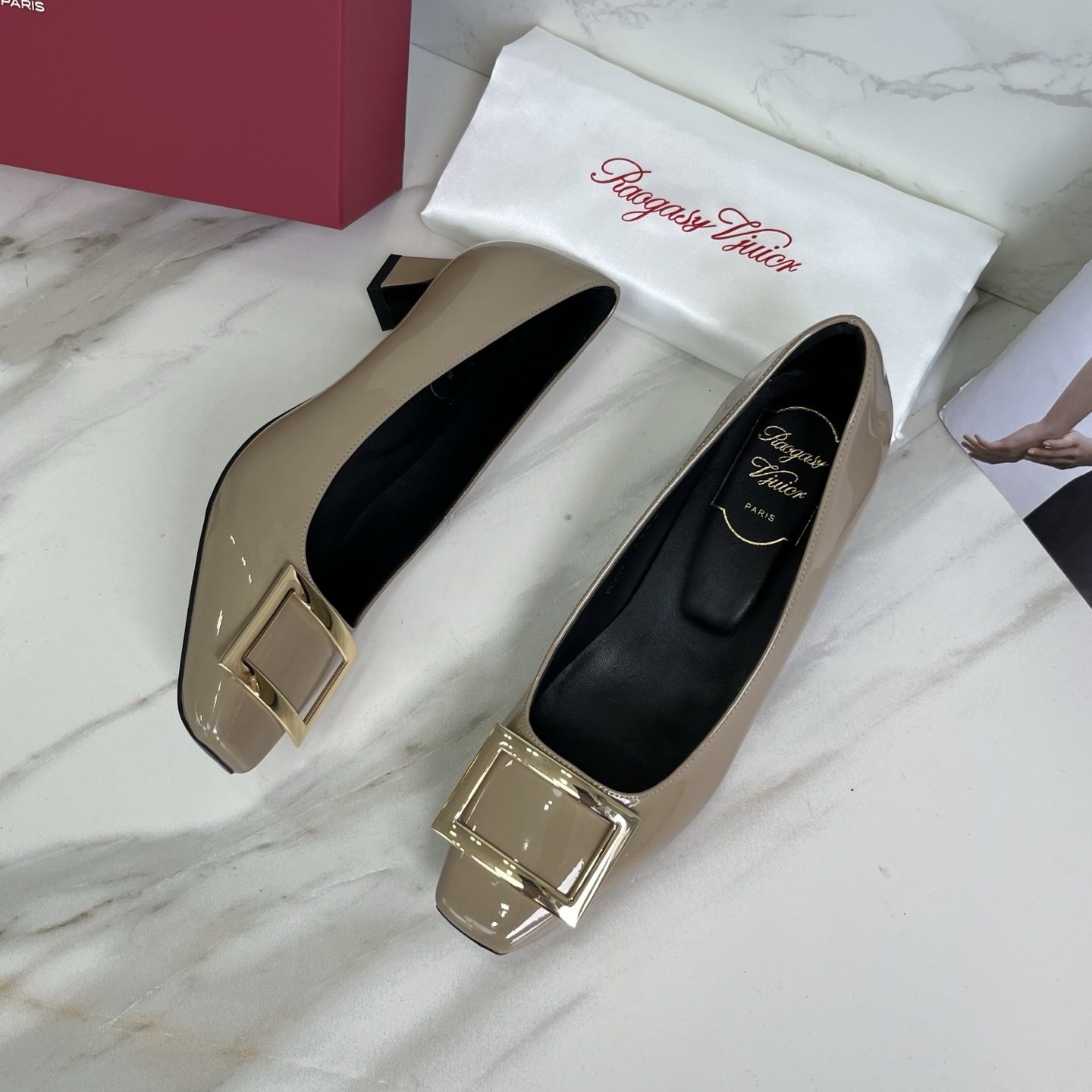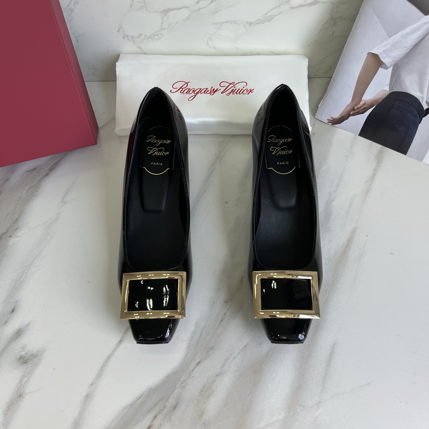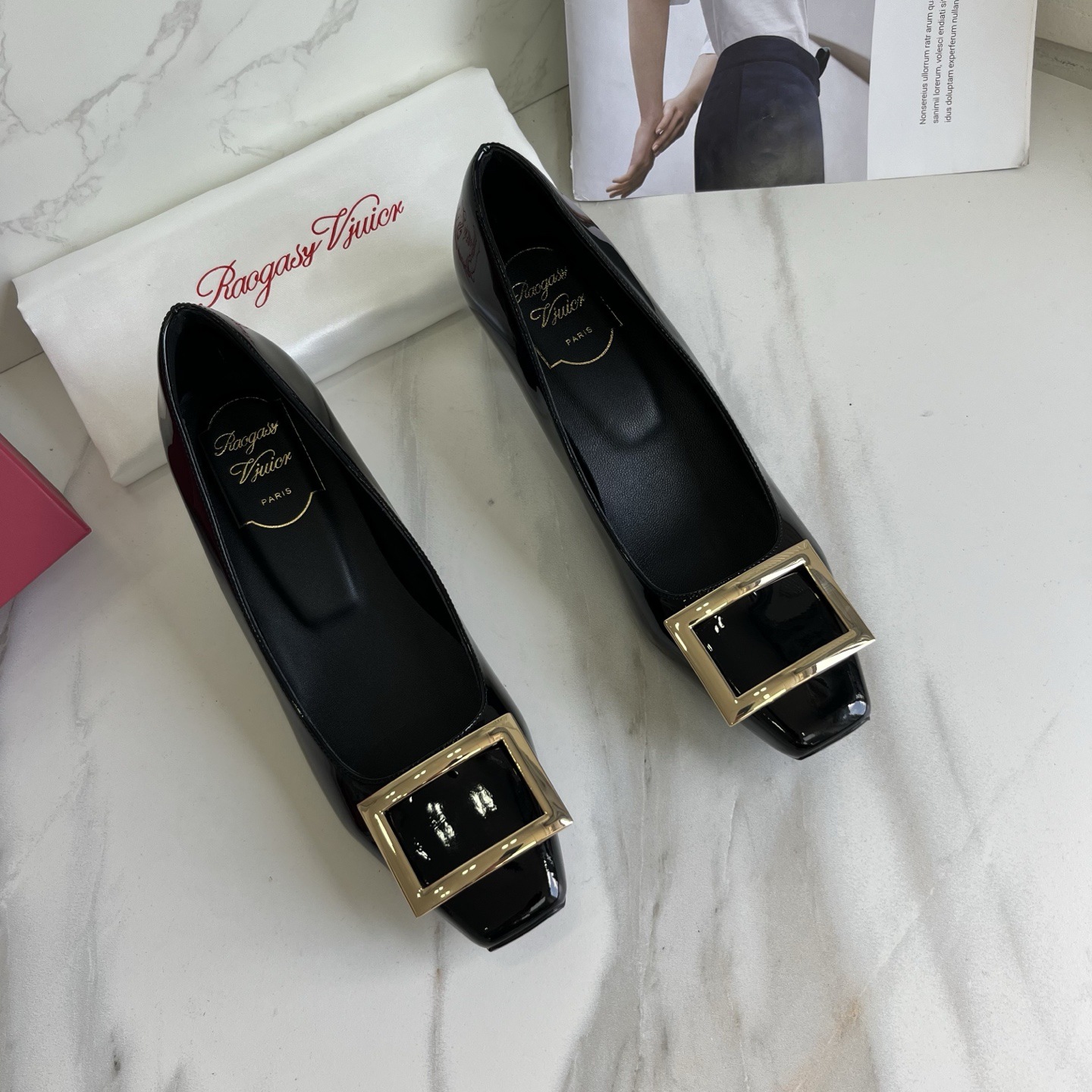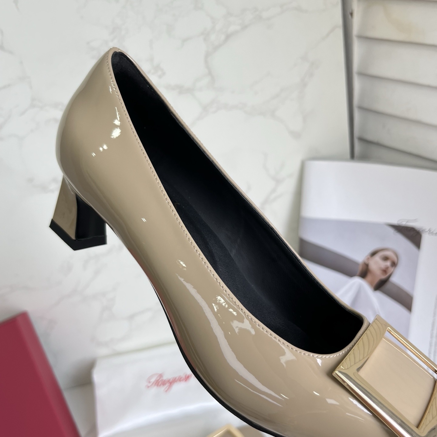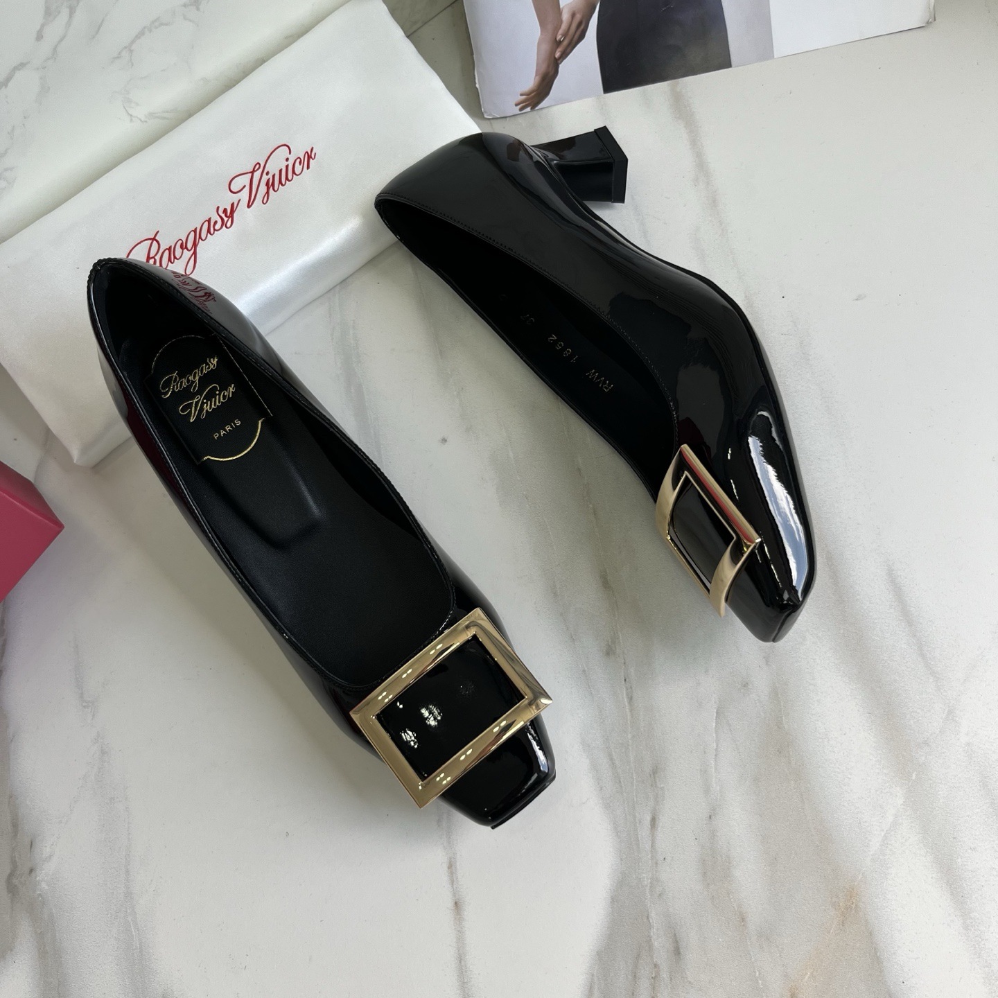 R*V 대체 중간 굽 여성 구두 여성 두꺼운 굽 단화 페이턴트 가죽 스퀘어 토 여성 구두 웨딩 슈즈 메탈 스퀘어 버클 여성 신발스토어 가기