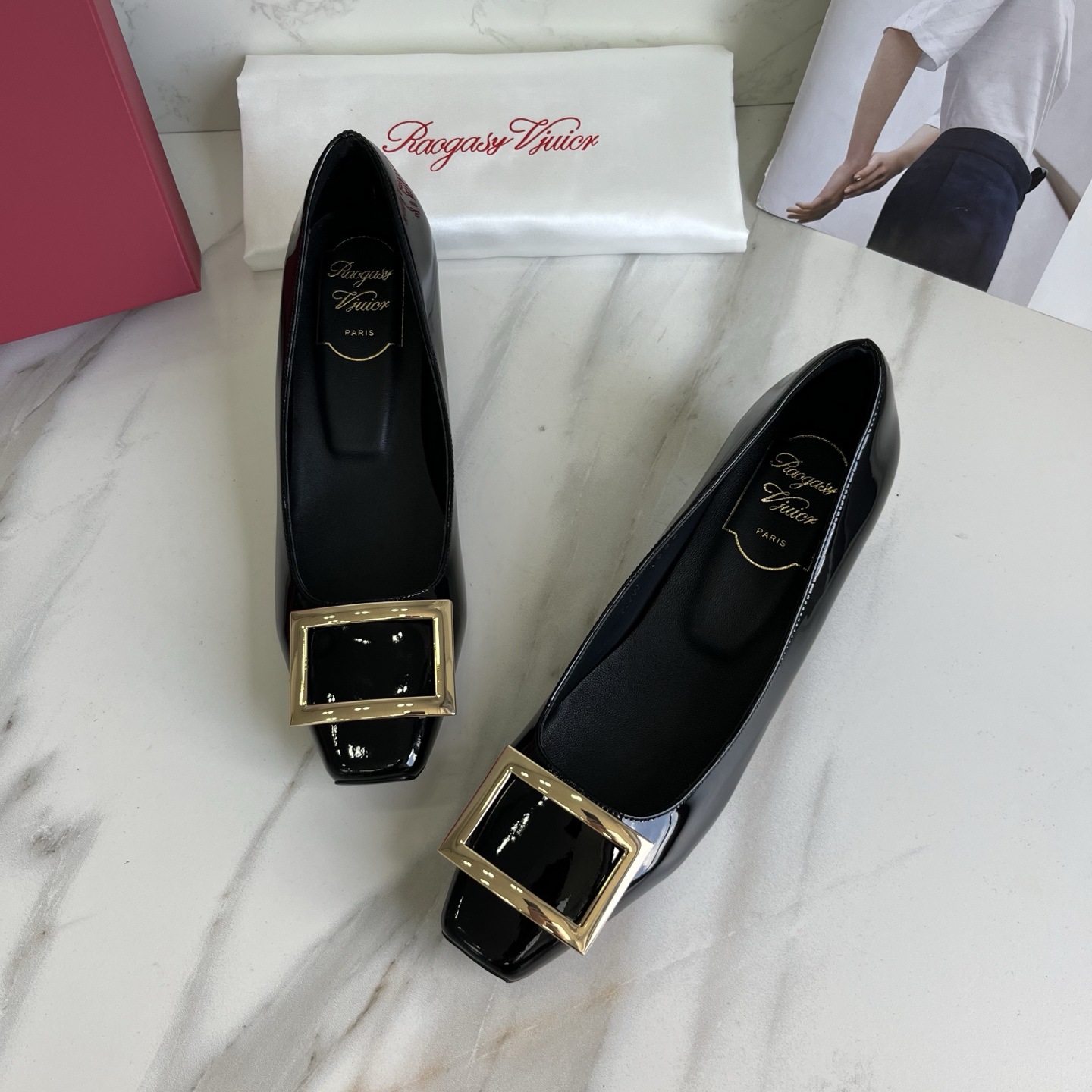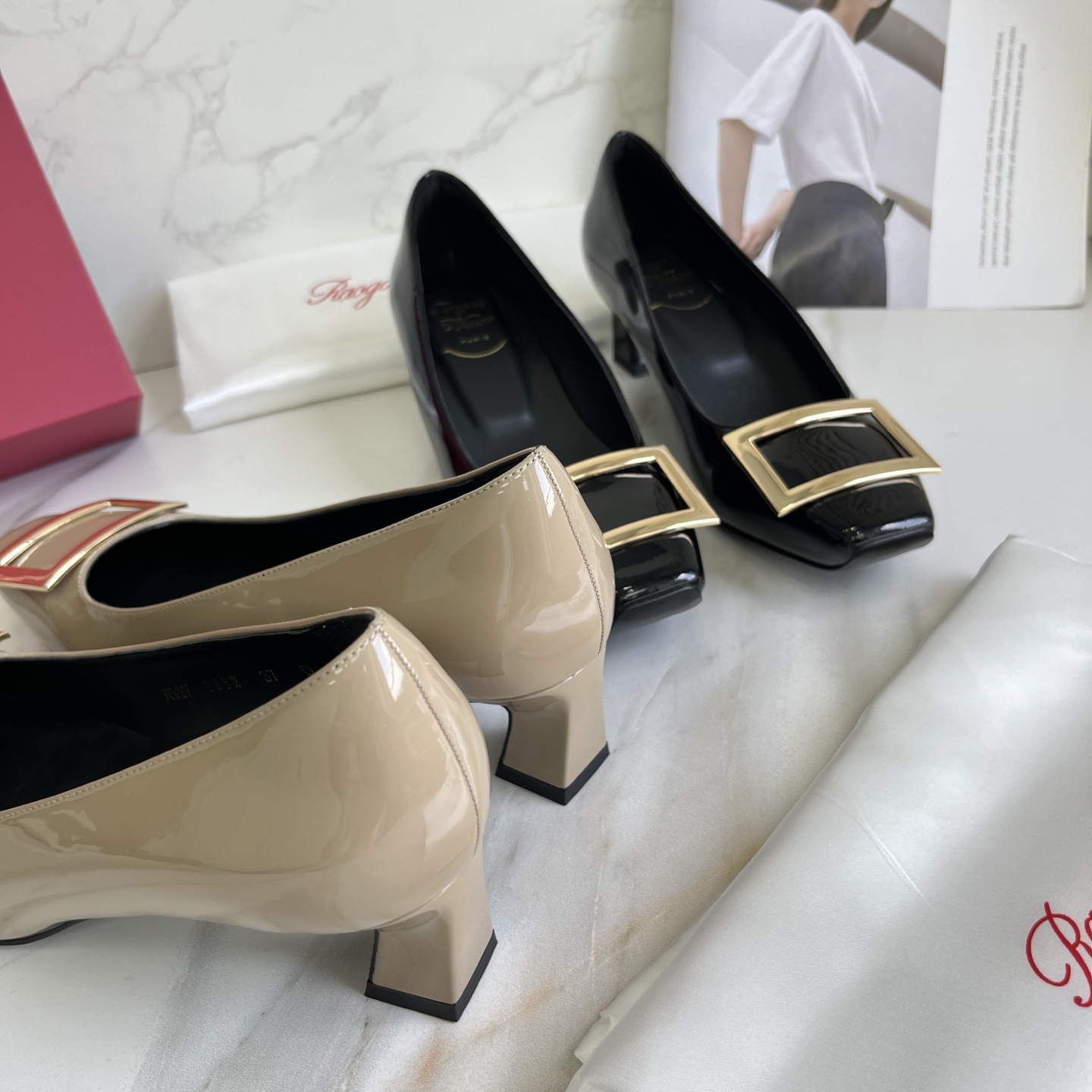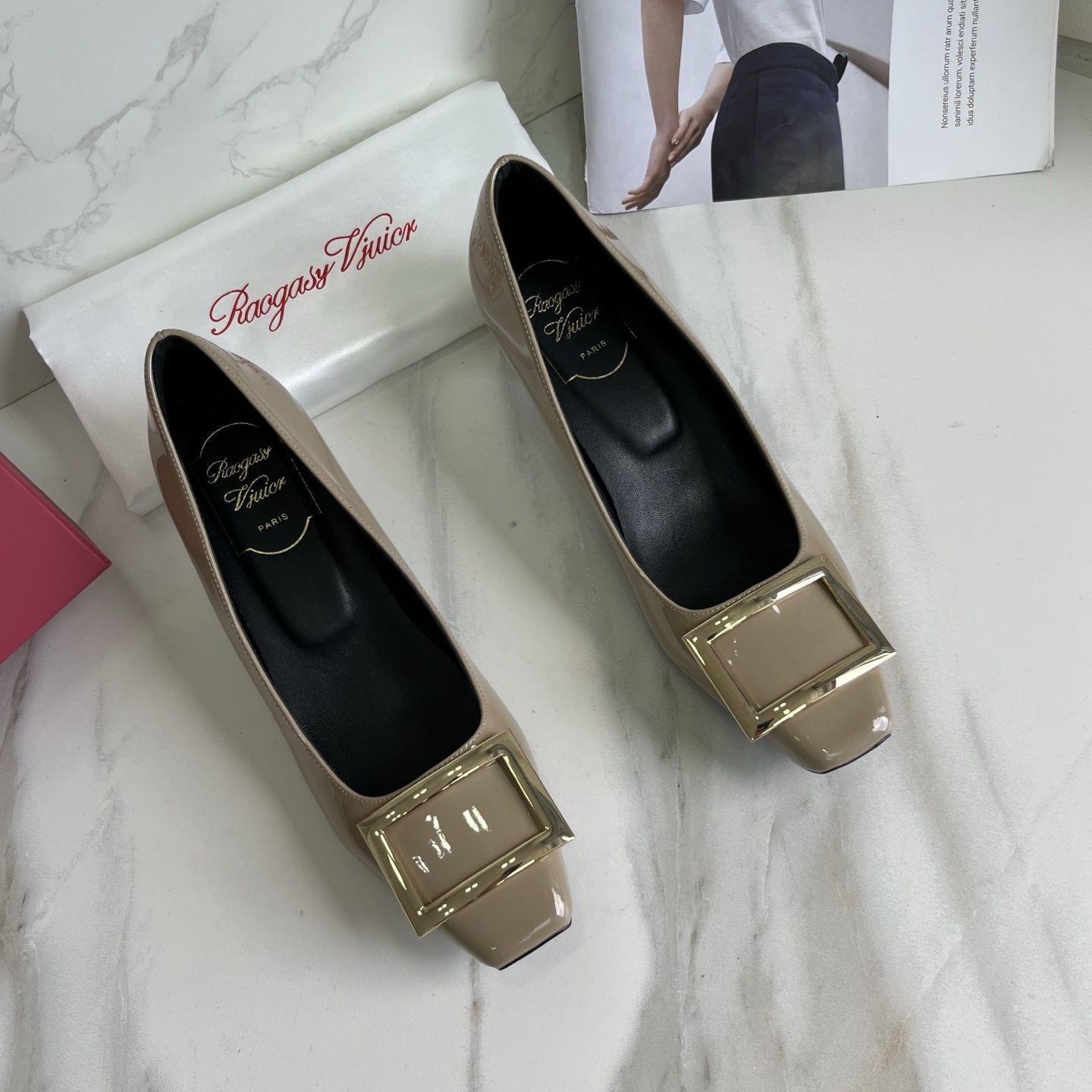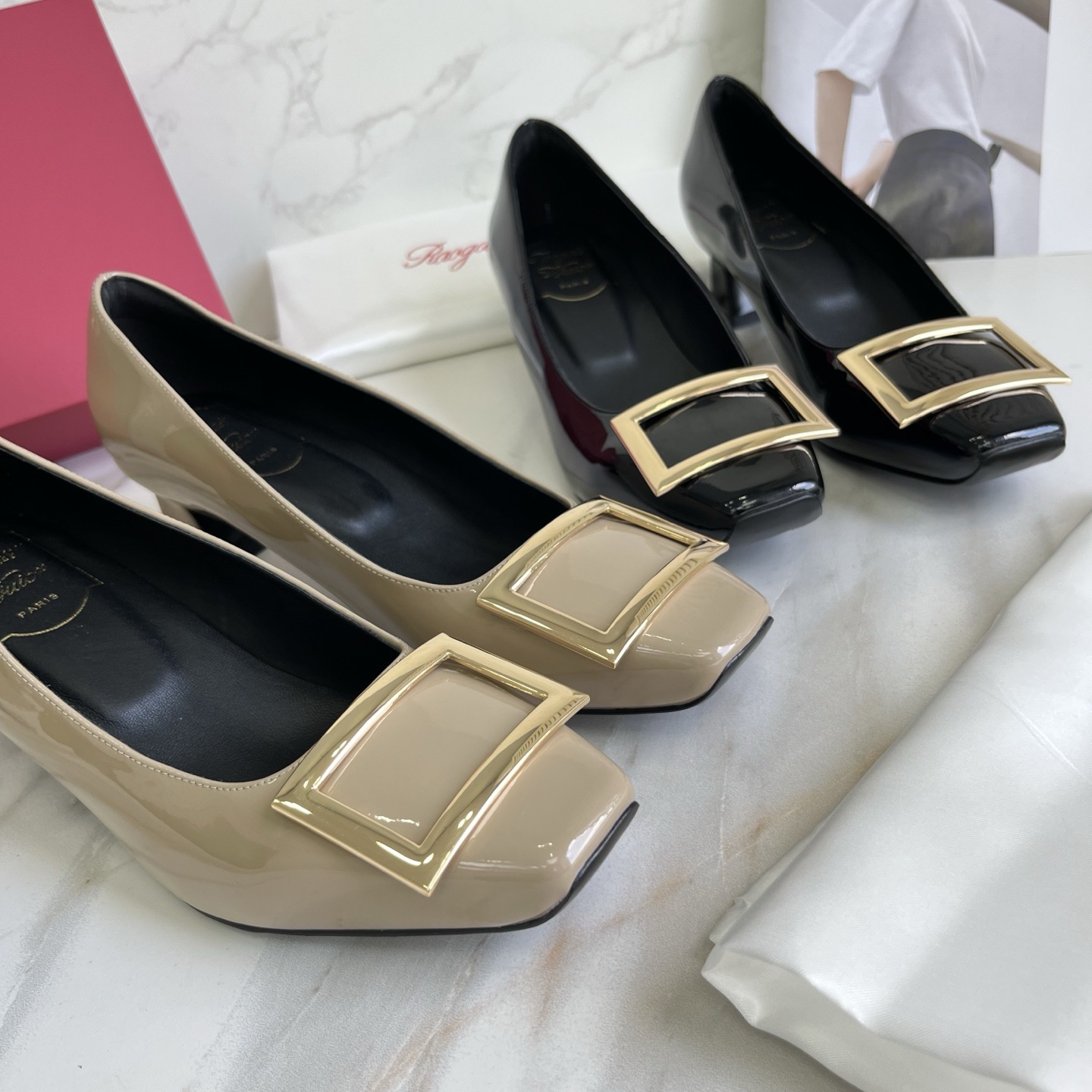 R*V 대체 중간 굽 여성 구두 여성 두꺼운 굽 단화 페이턴트 가죽 스퀘어 토 여성 구두 웨딩 슈즈 메탈 스퀘어 버클 여성 신발스토어 가기
