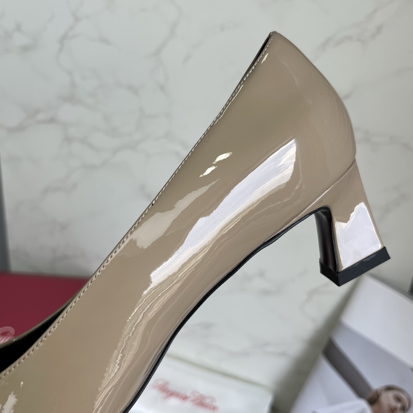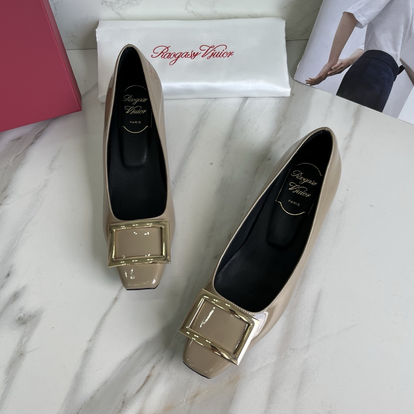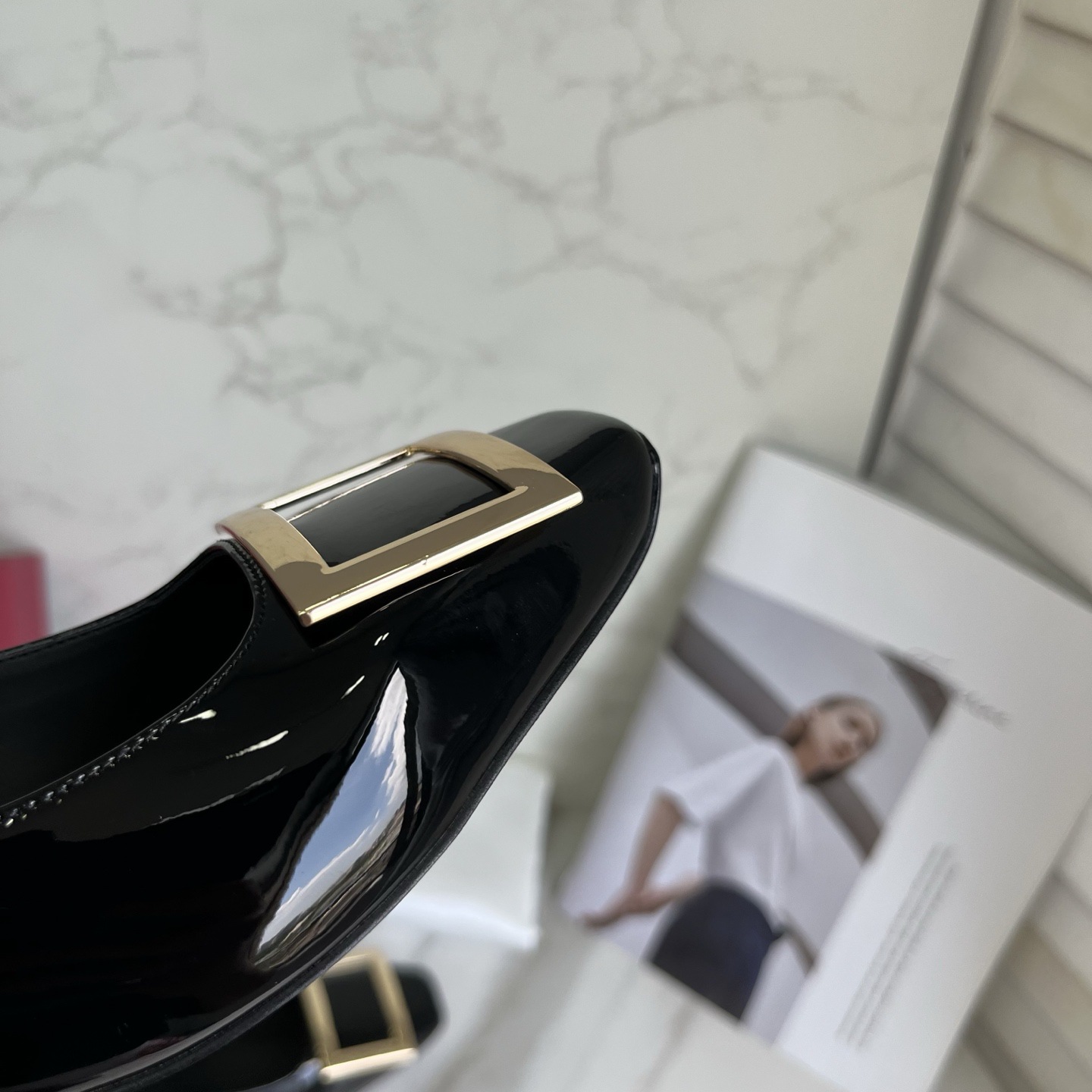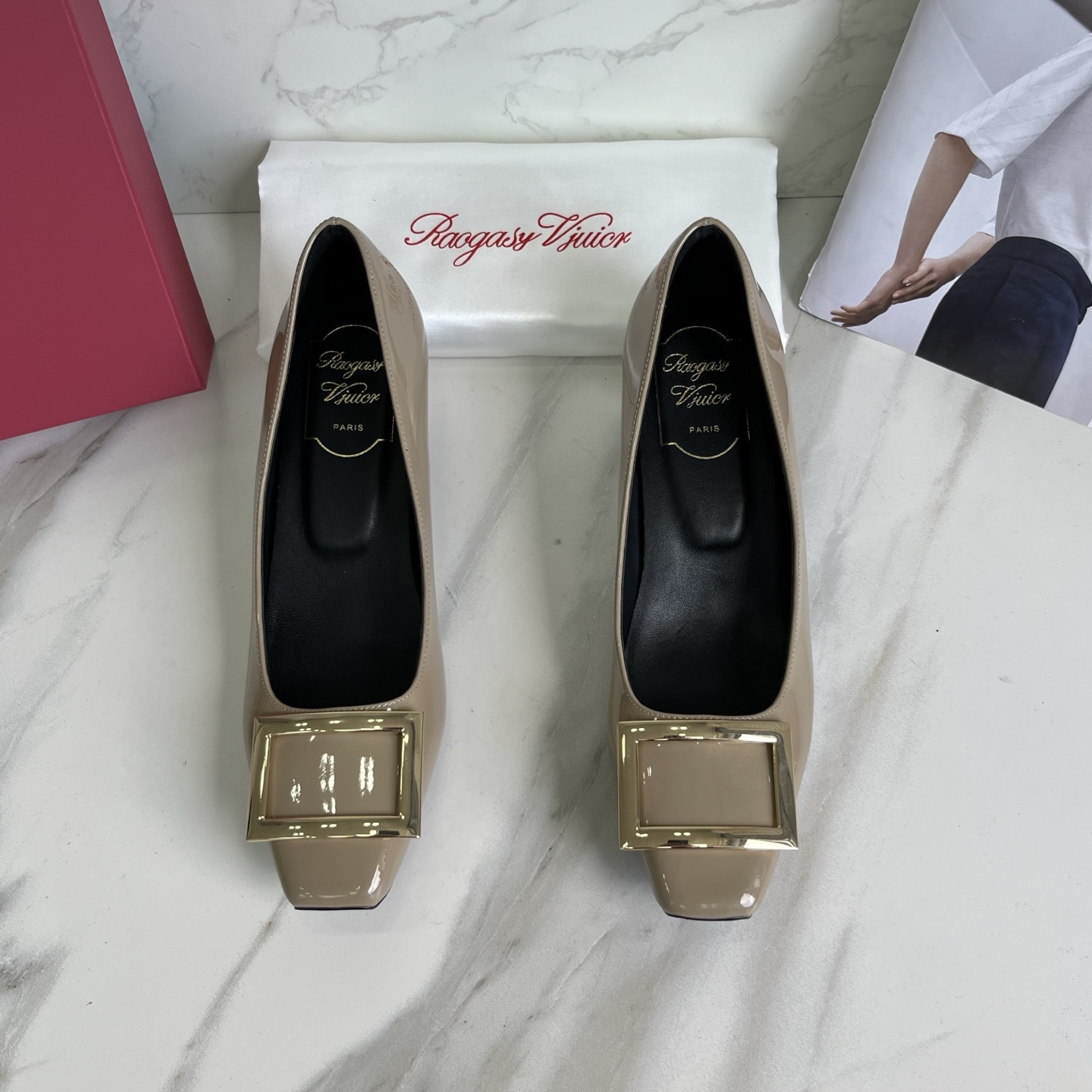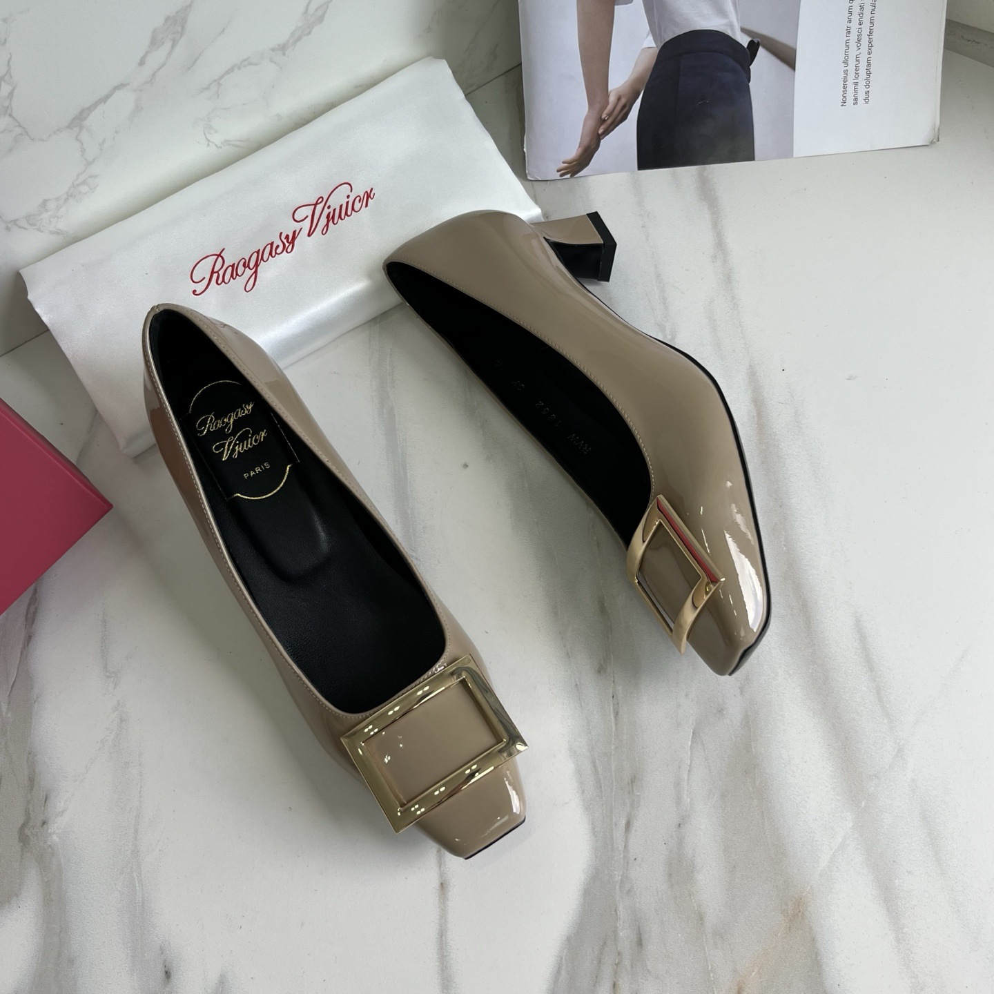 R*V 대체 중간 굽 여성 구두 여성 두꺼운 굽 단화 페이턴트 가죽 스퀘어 토 여성 구두 웨딩 슈즈 메탈 스퀘어 버클 여성 신발스토어 가기