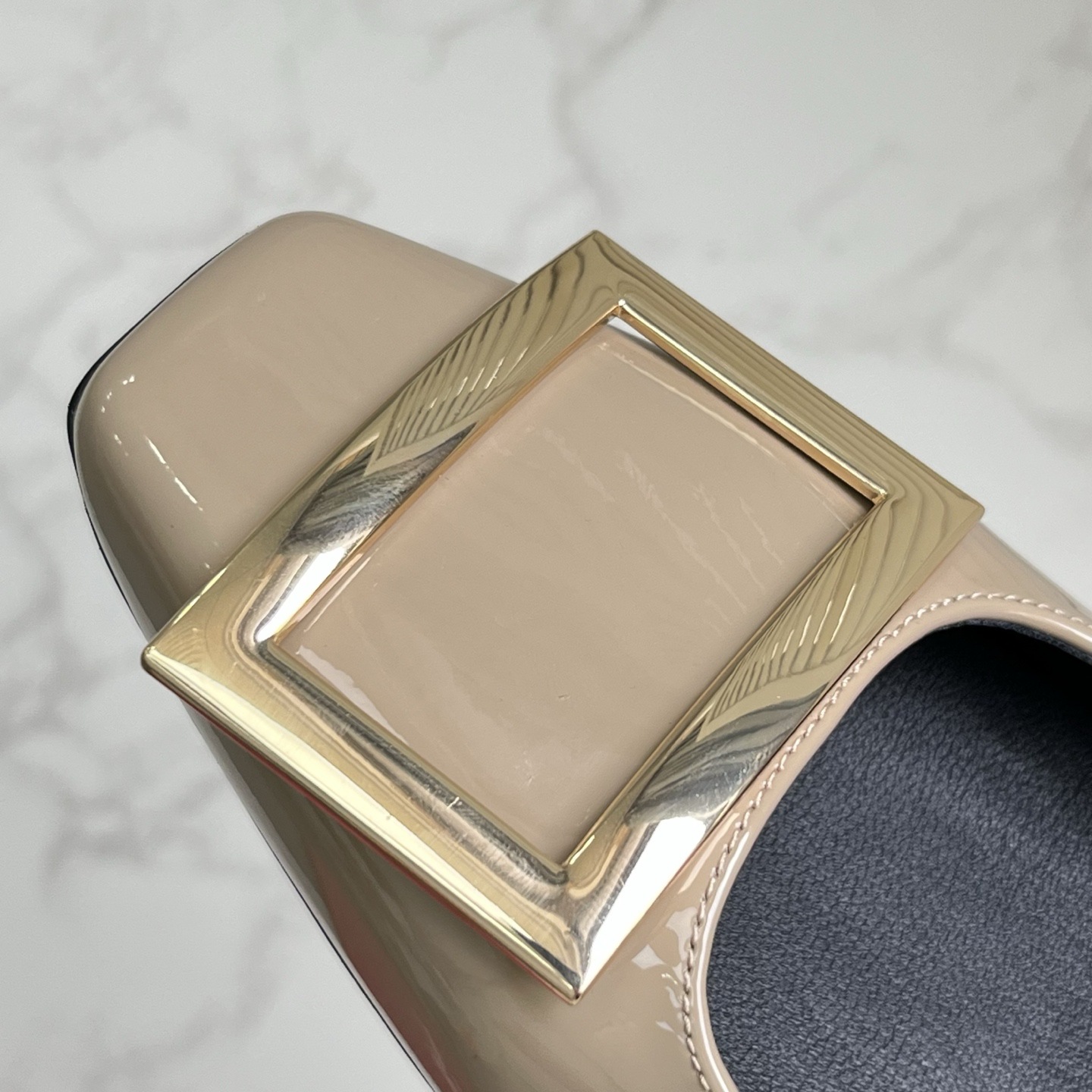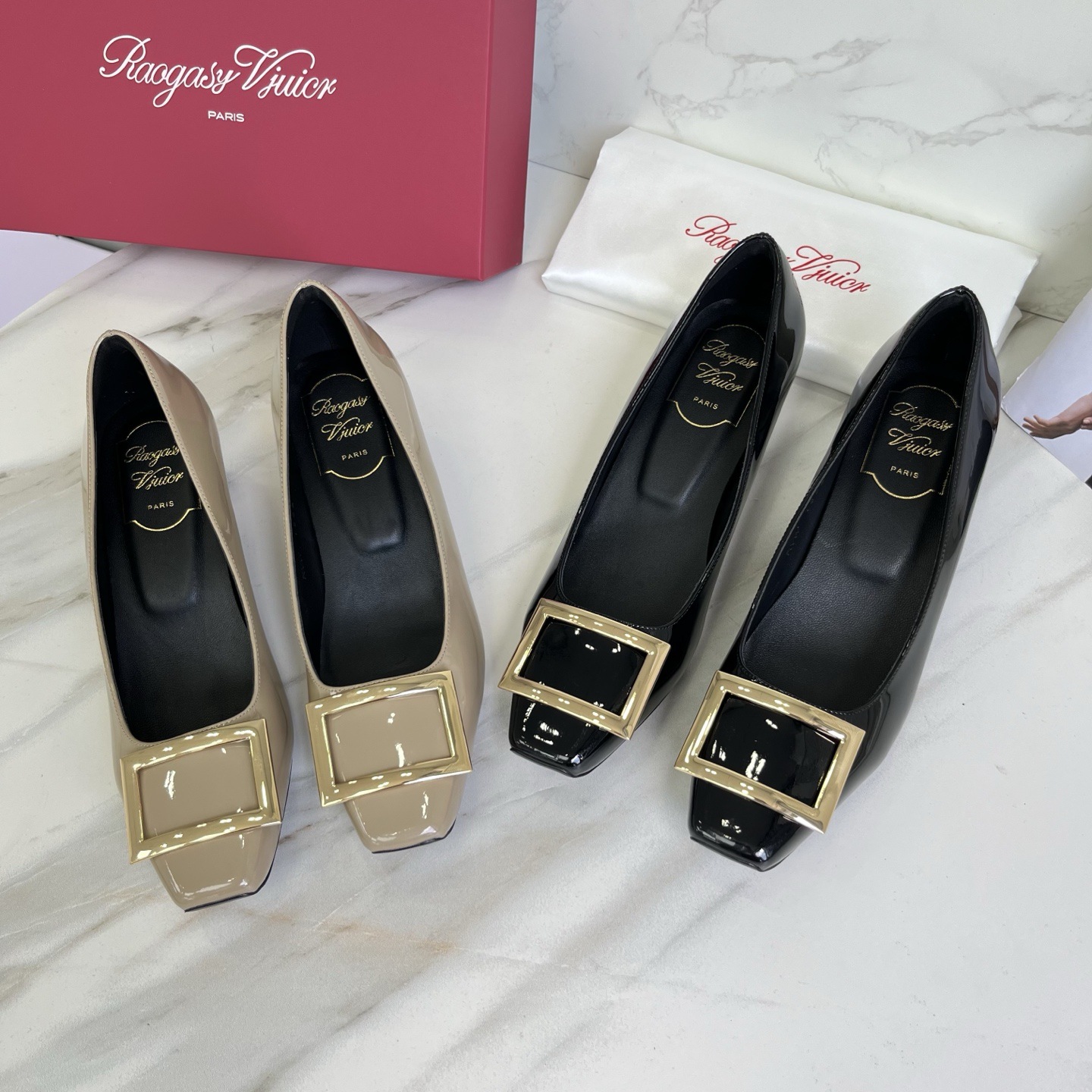 R*V 대체 중간 굽 여성 구두 여성 두꺼운 굽 단화 페이턴트 가죽 스퀘어 토 여성 구두 웨딩 슈즈 메탈 스퀘어 버클 여성 신발