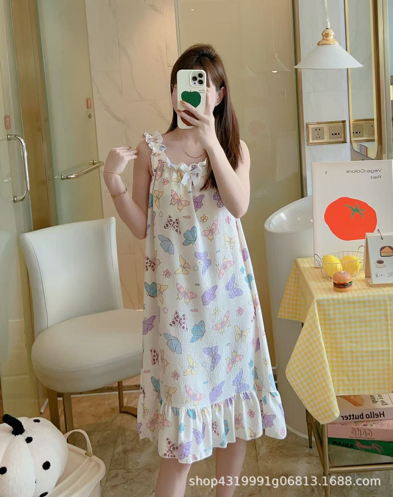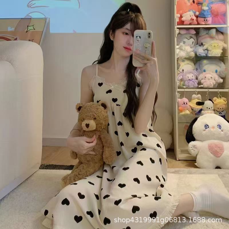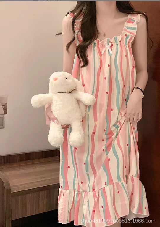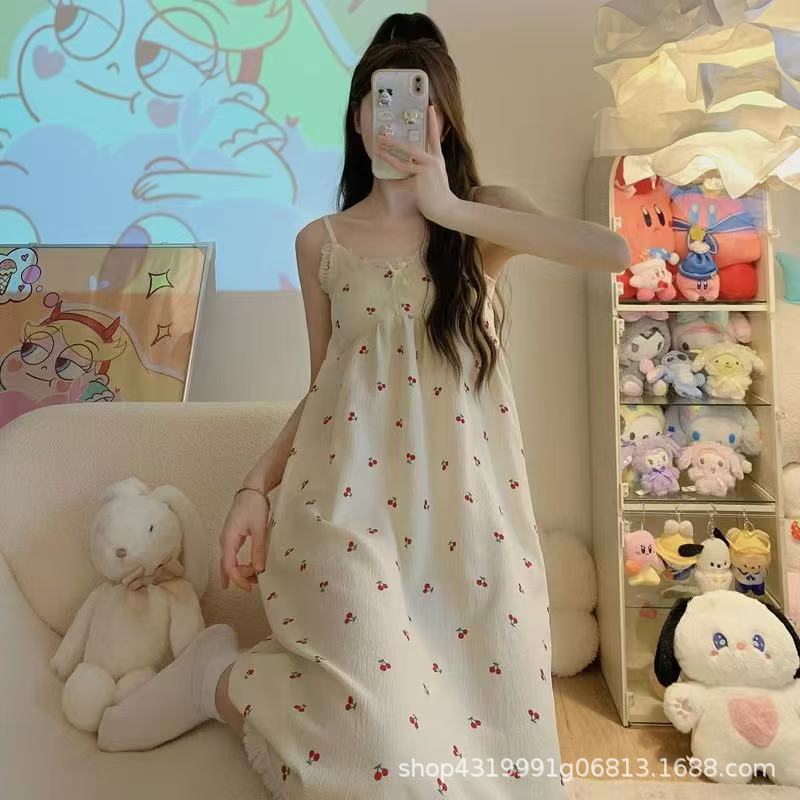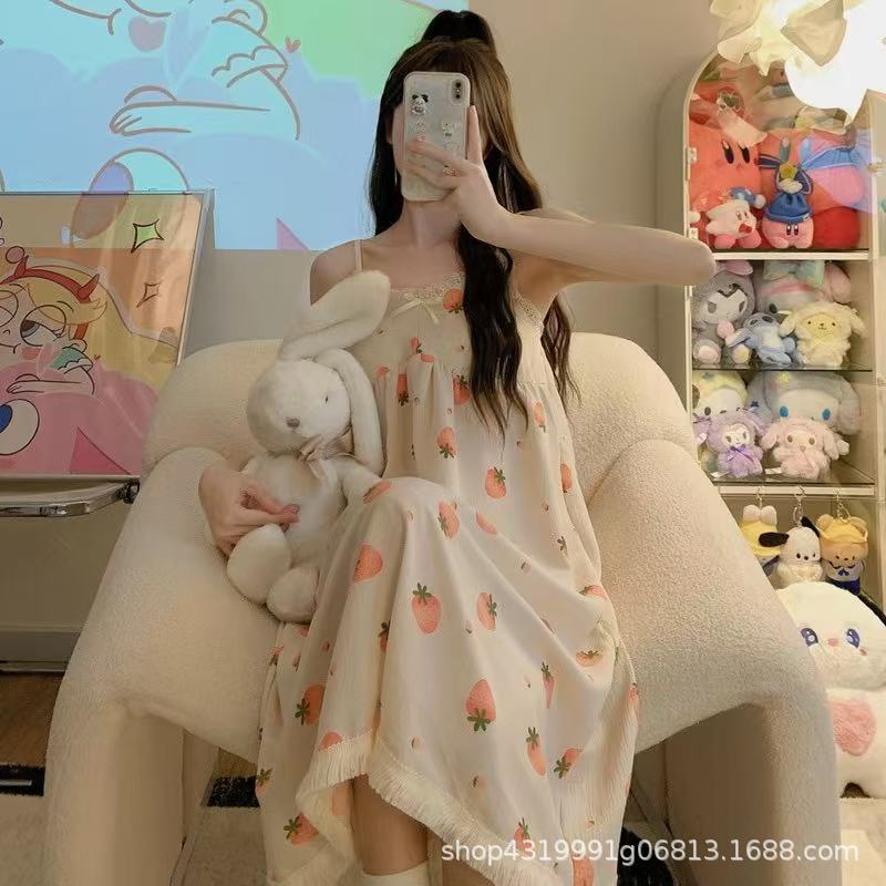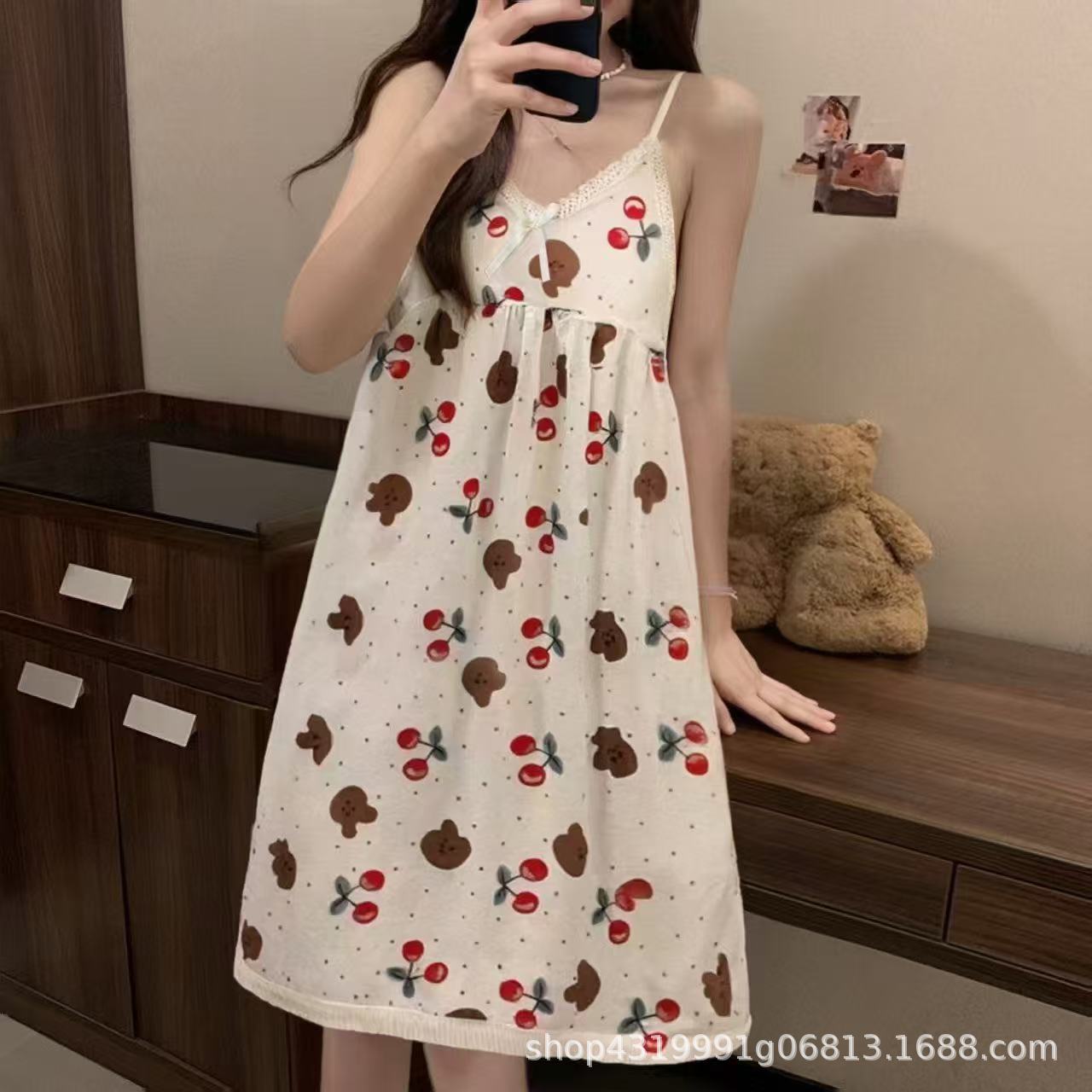 여자 여름 나이트 드레스 거품 분리 가능한 파자마 가슴 패드 귀여운 만화 느슨한 외부 착용 홈 옷스토어 가기