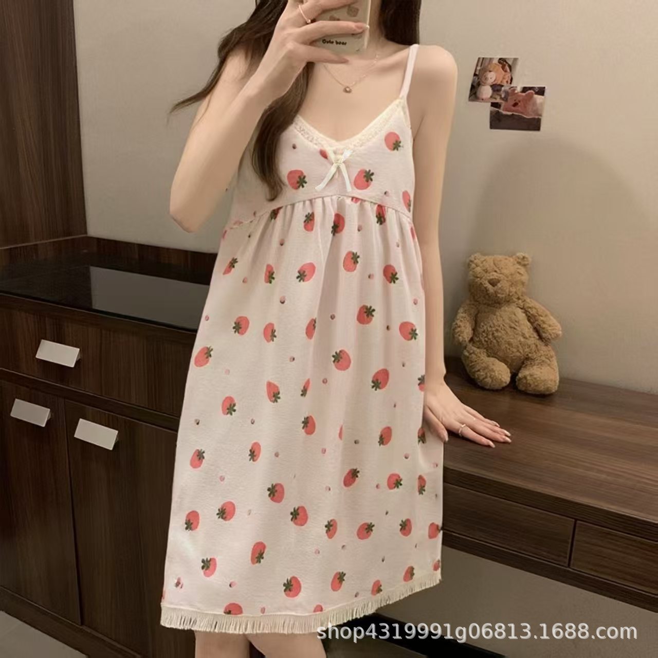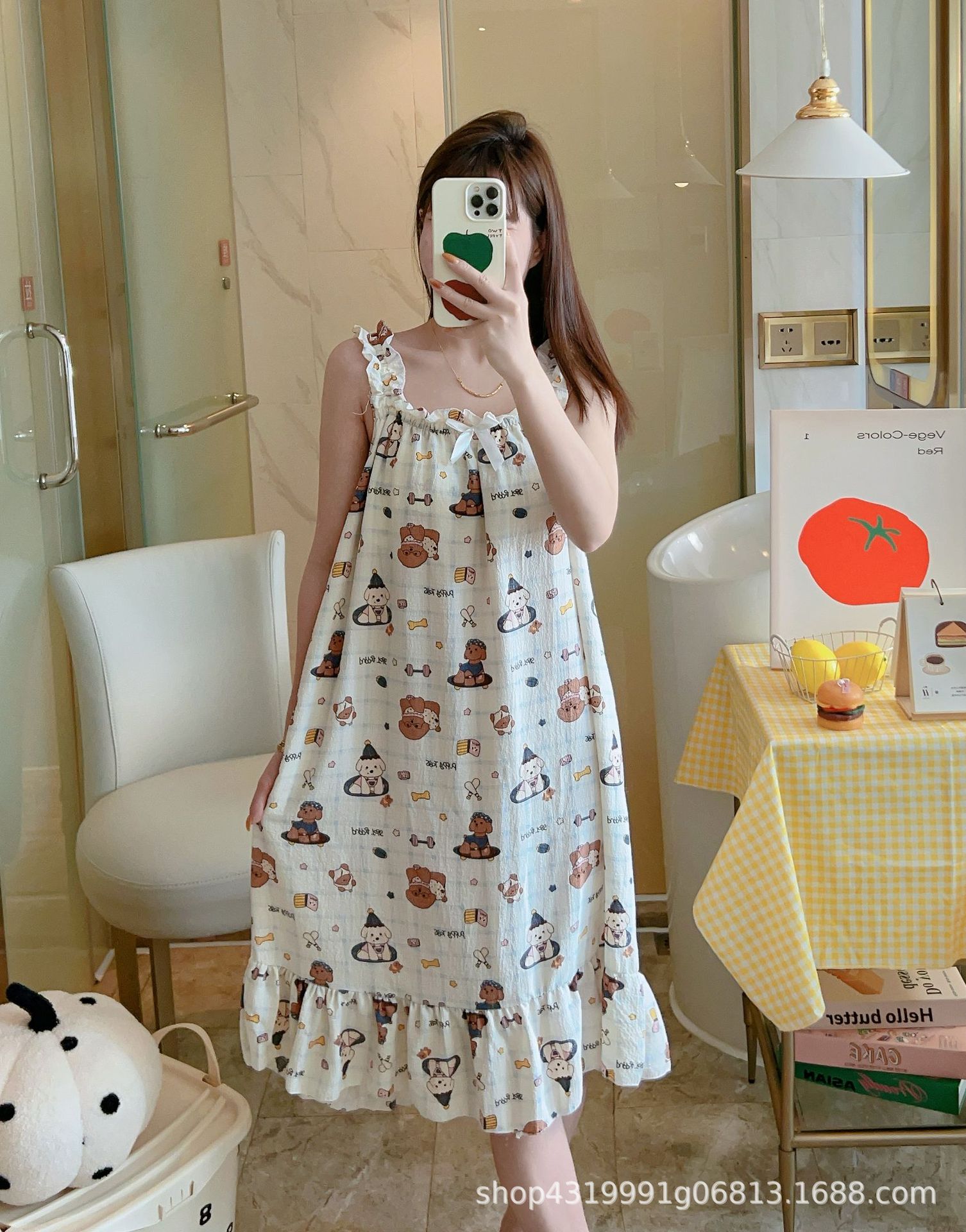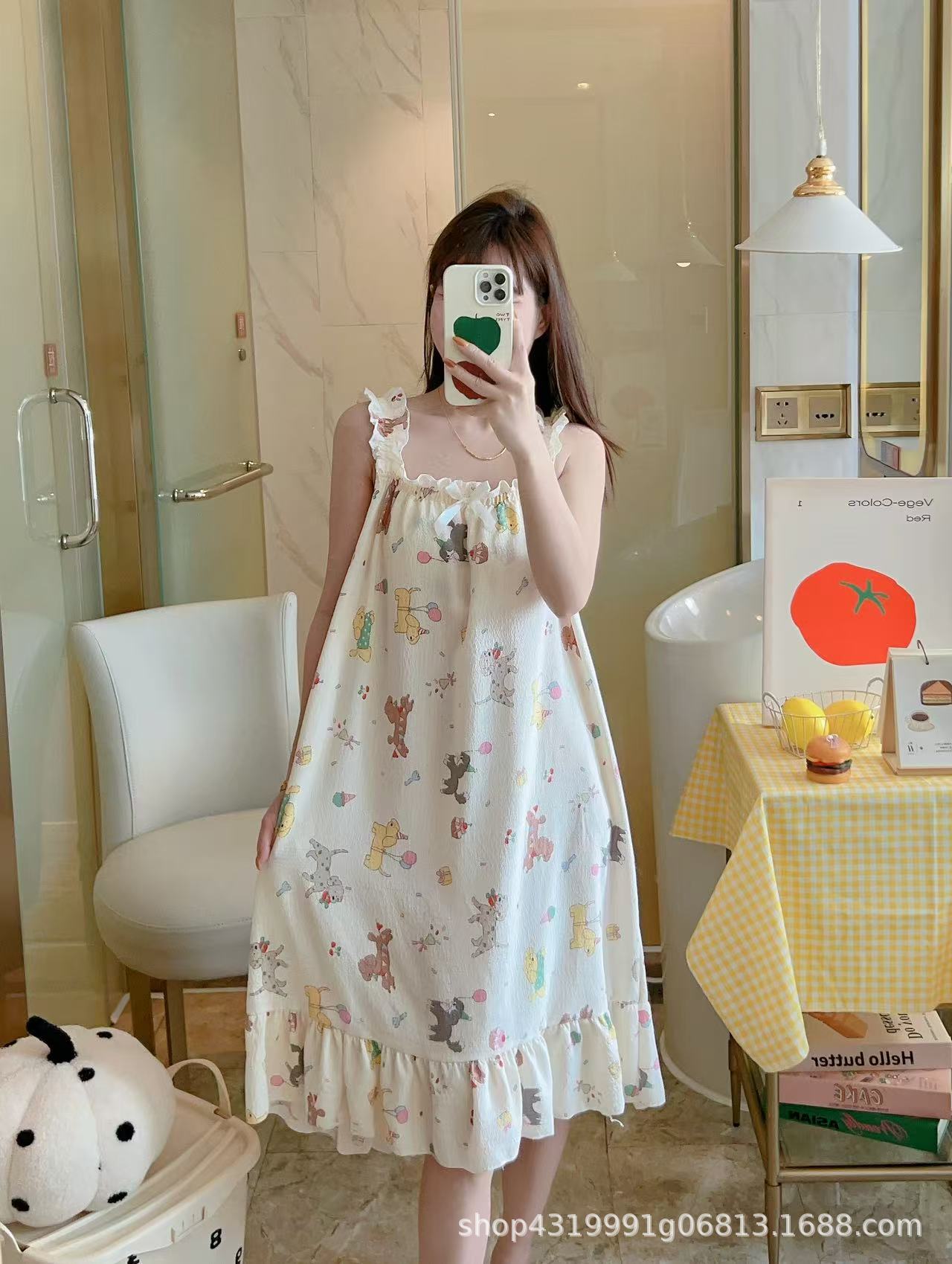 여자 여름 나이트 드레스 거품 분리 가능한 파자마 가슴 패드 귀여운 만화 느슨한 외부 착용 홈 옷스토어 가기