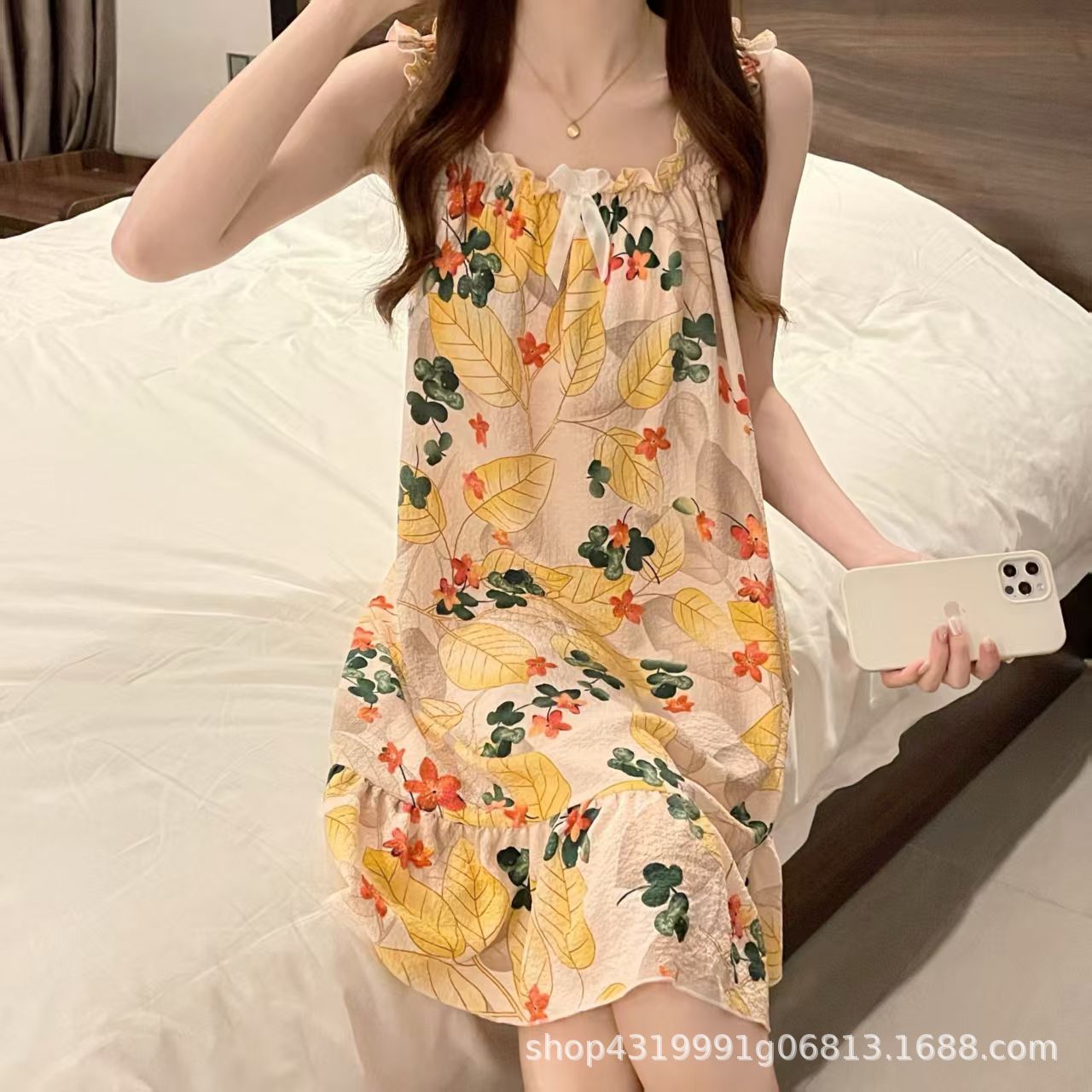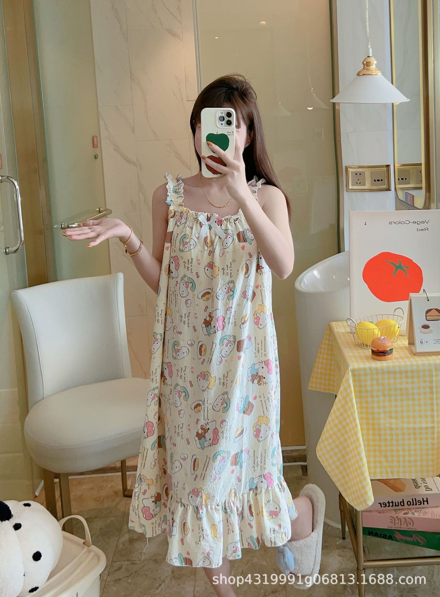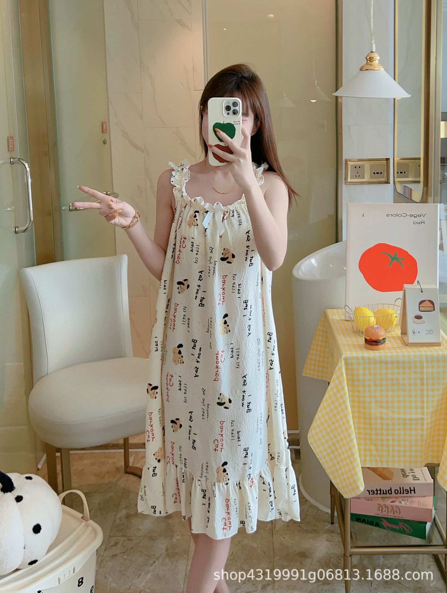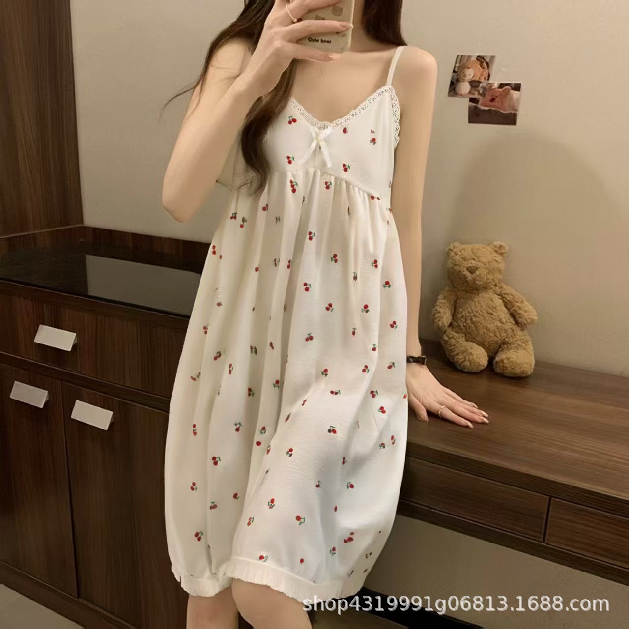 여자 여름 나이트 드레스 거품 분리 가능한 파자마 가슴 패드 귀여운 만화 느슨한 외부 착용 홈 옷스토어 가기