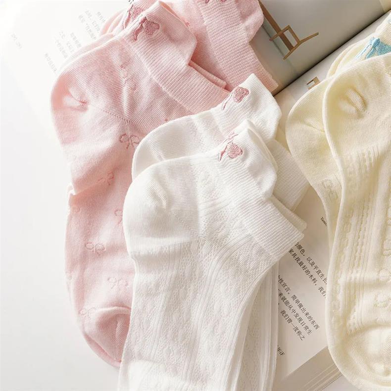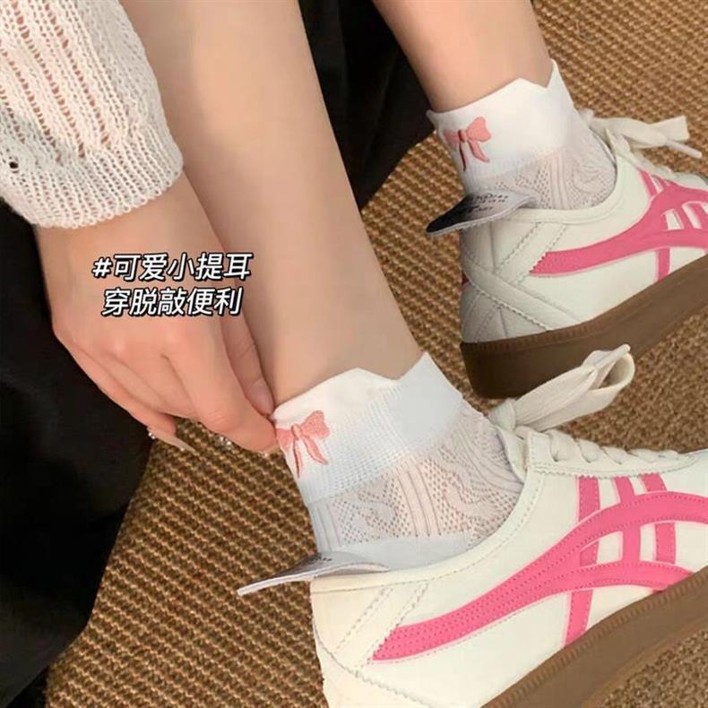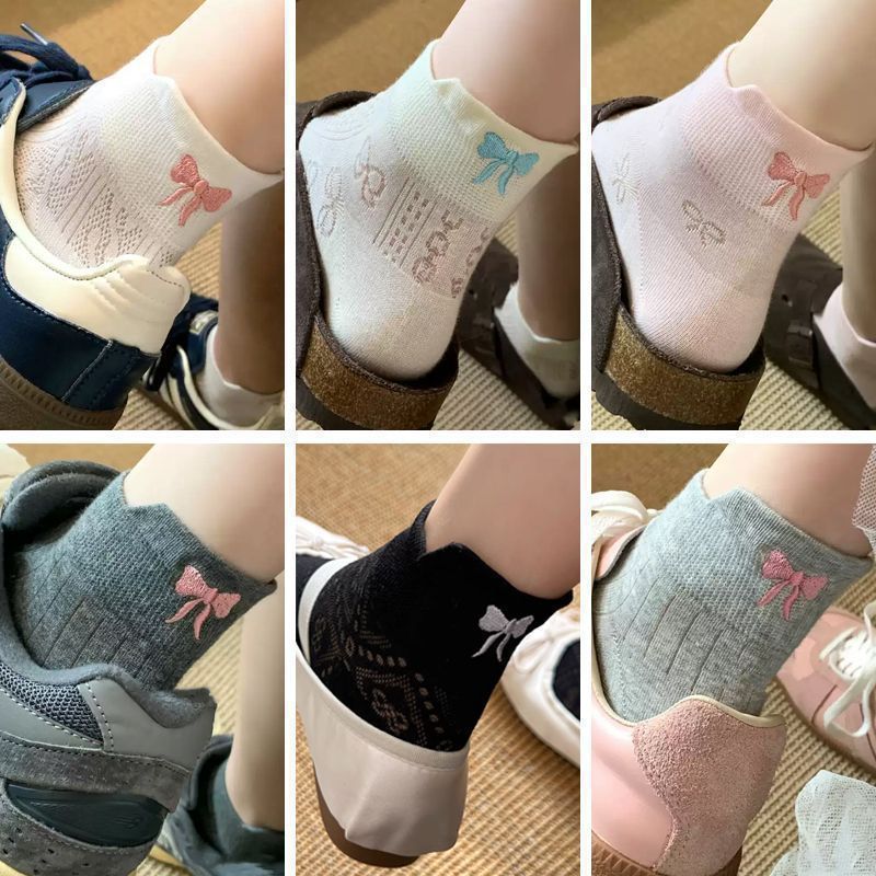 Bowknot 양말 여성 여름 얇은 짧은 양말 한국 스타일 일본 스타일 귀여운 메쉬 화이트 통기성 여름 보트 양말스토어 가기