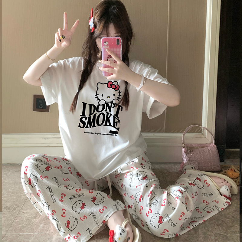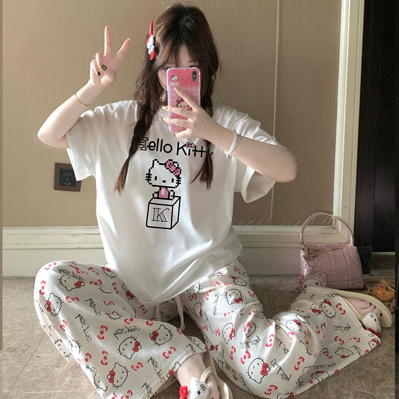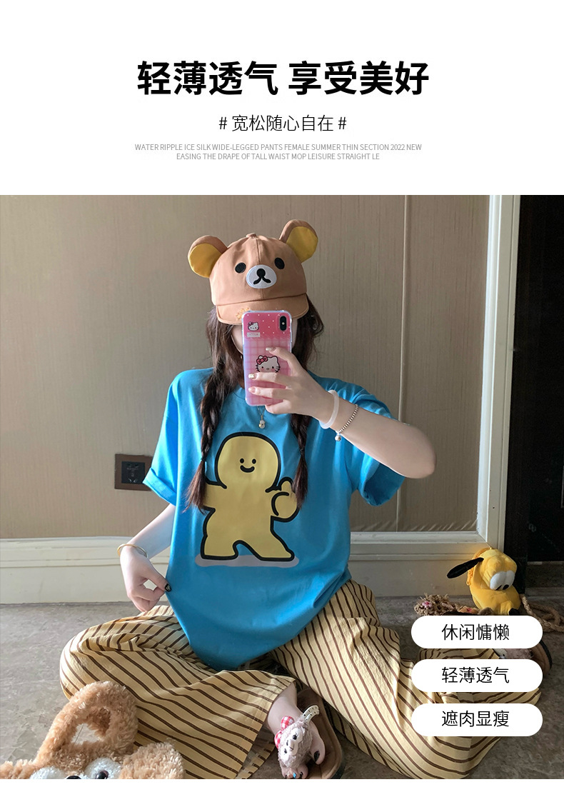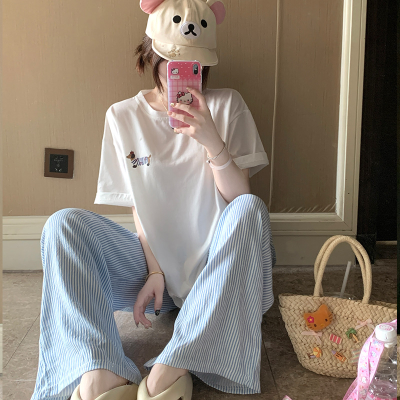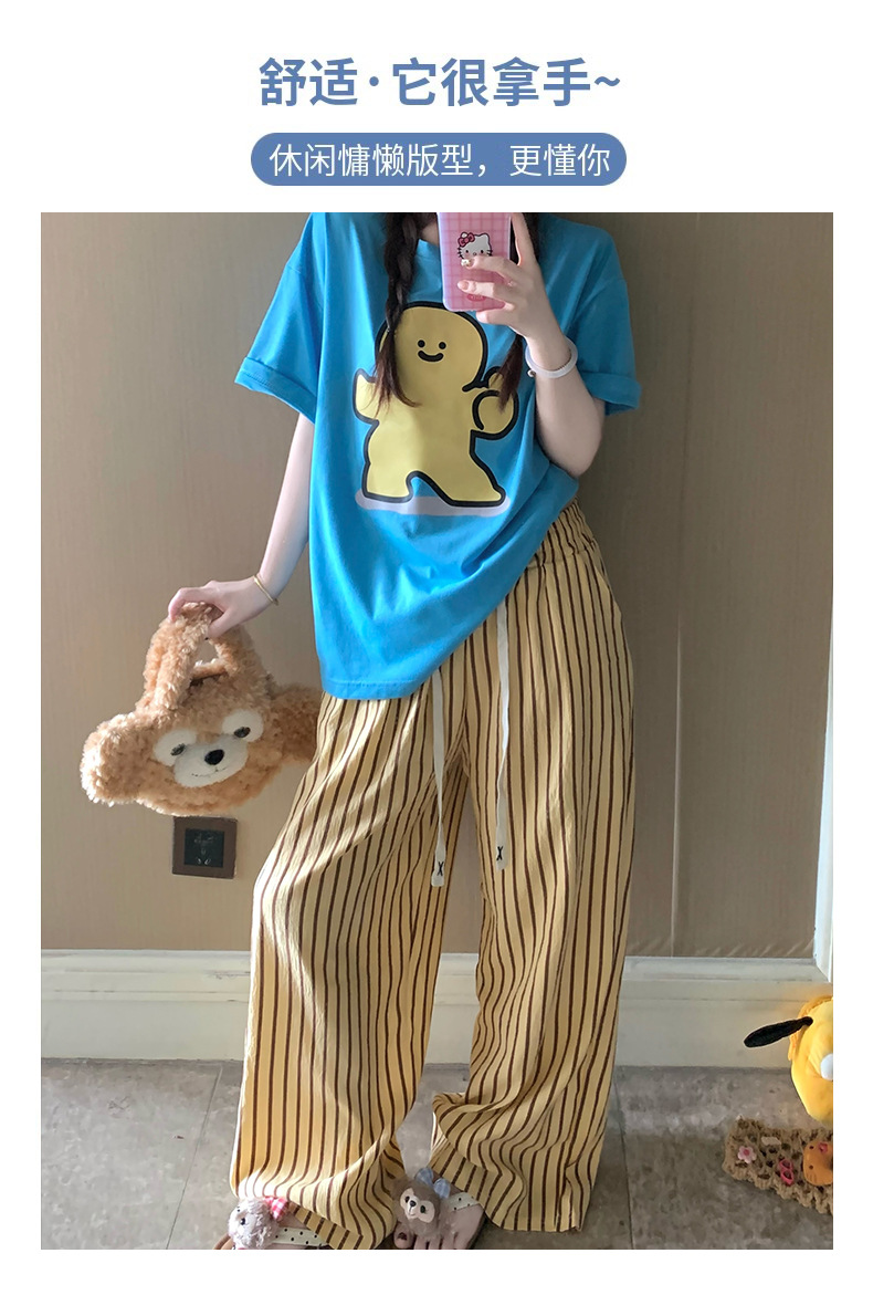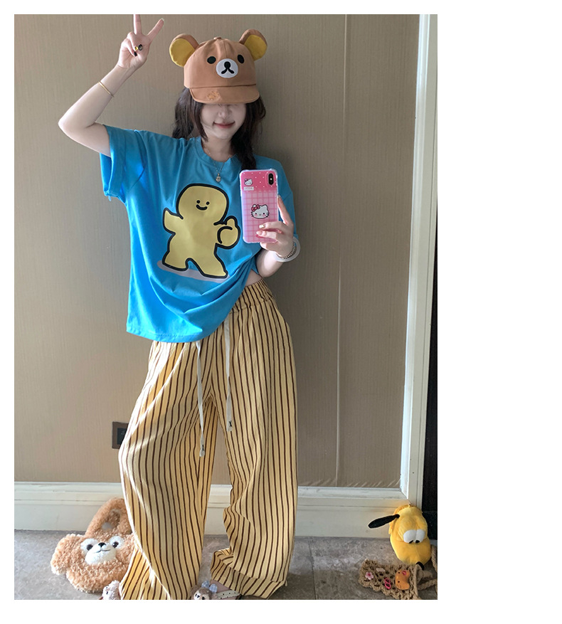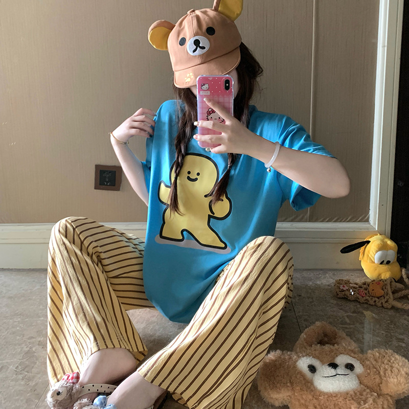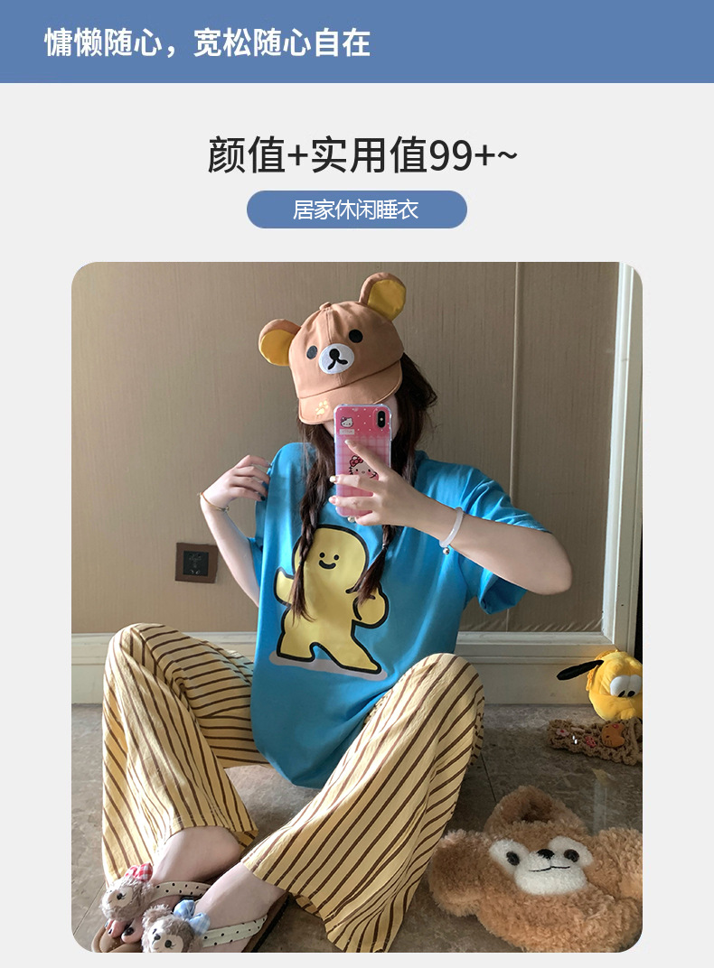 여성을위한 새로운 스타일 잠옷 봄과 여름 반팔 바지 만화 중학생 캐주얼 소녀 18 세 홈웨어는 밖에서 착용 가능 19스토어 가기