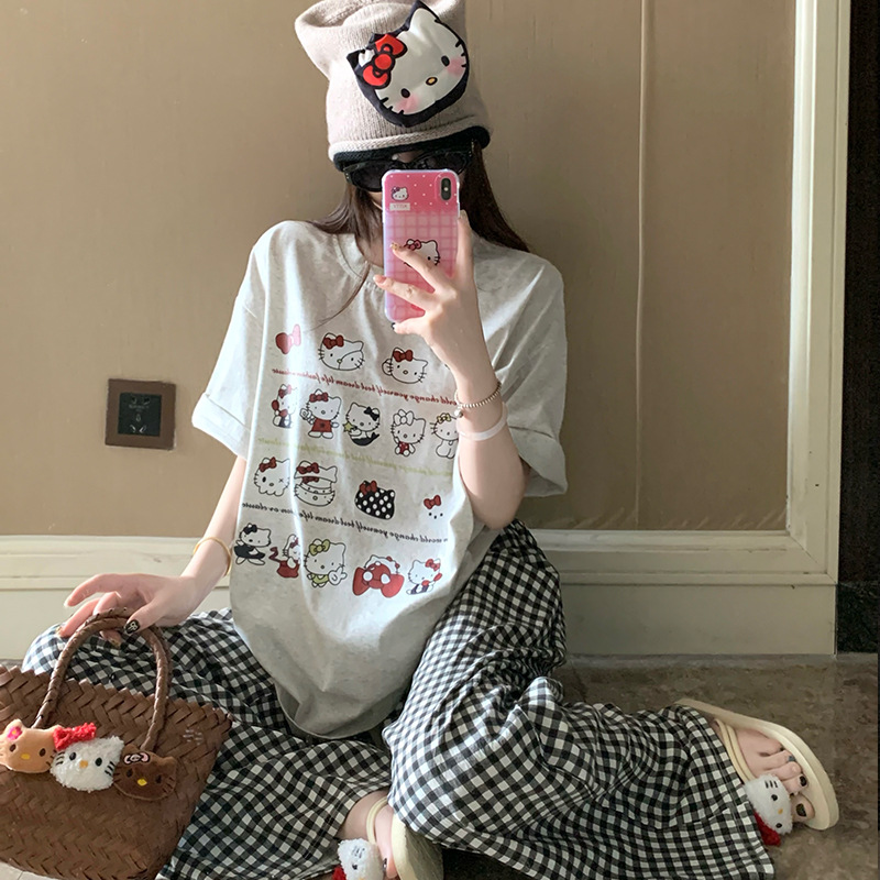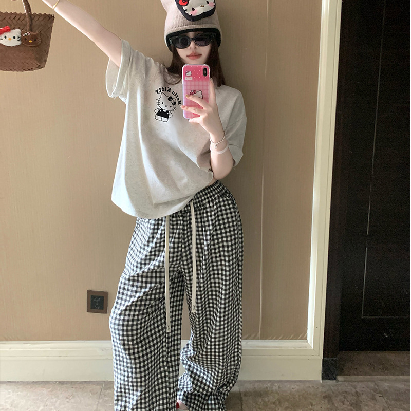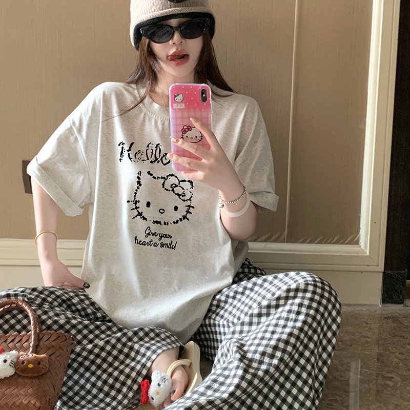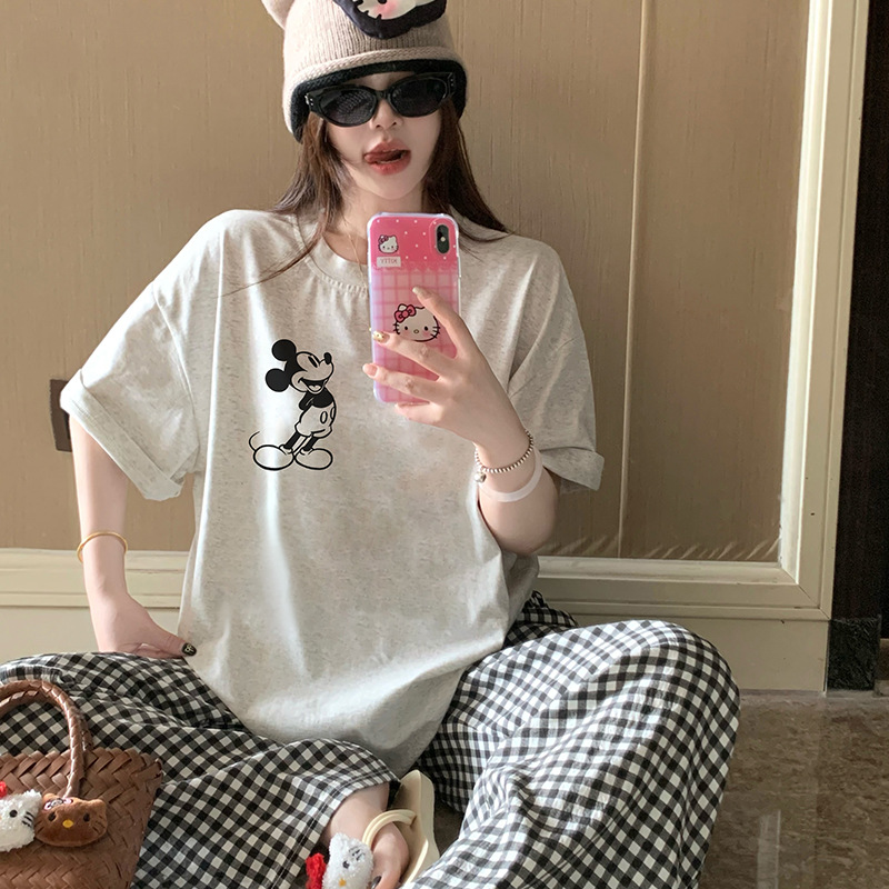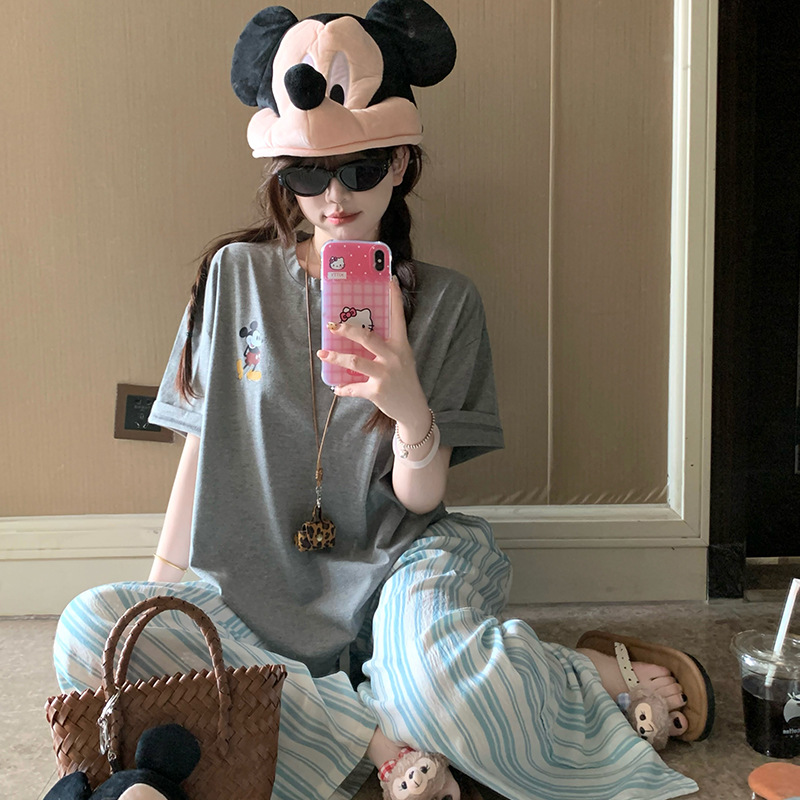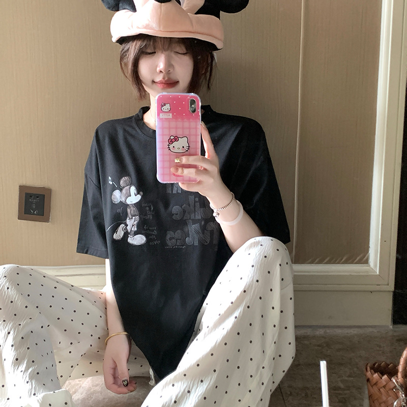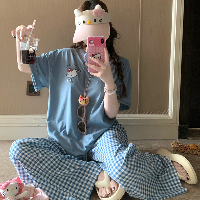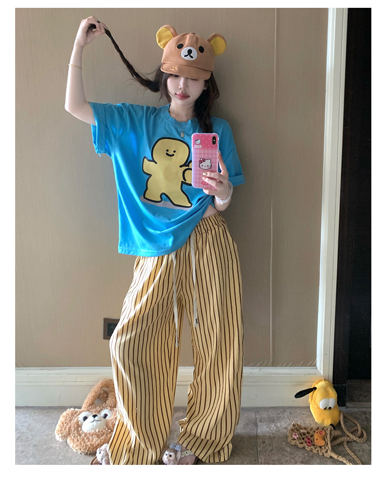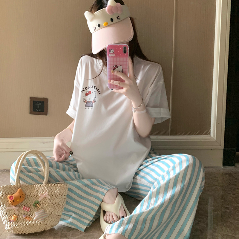 여성을위한 새로운 스타일 잠옷 봄과 여름 반팔 바지 만화 중학생 캐주얼 소녀 18 세 홈웨어는 밖에서 착용 가능 19스토어 가기