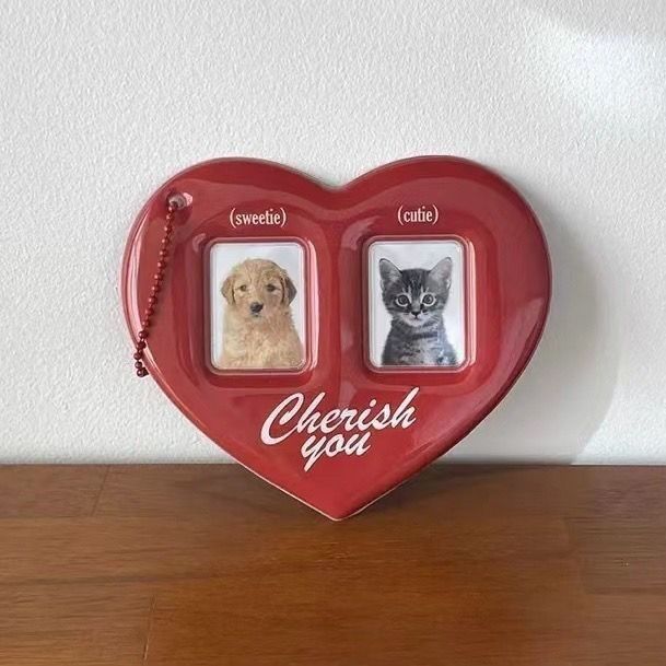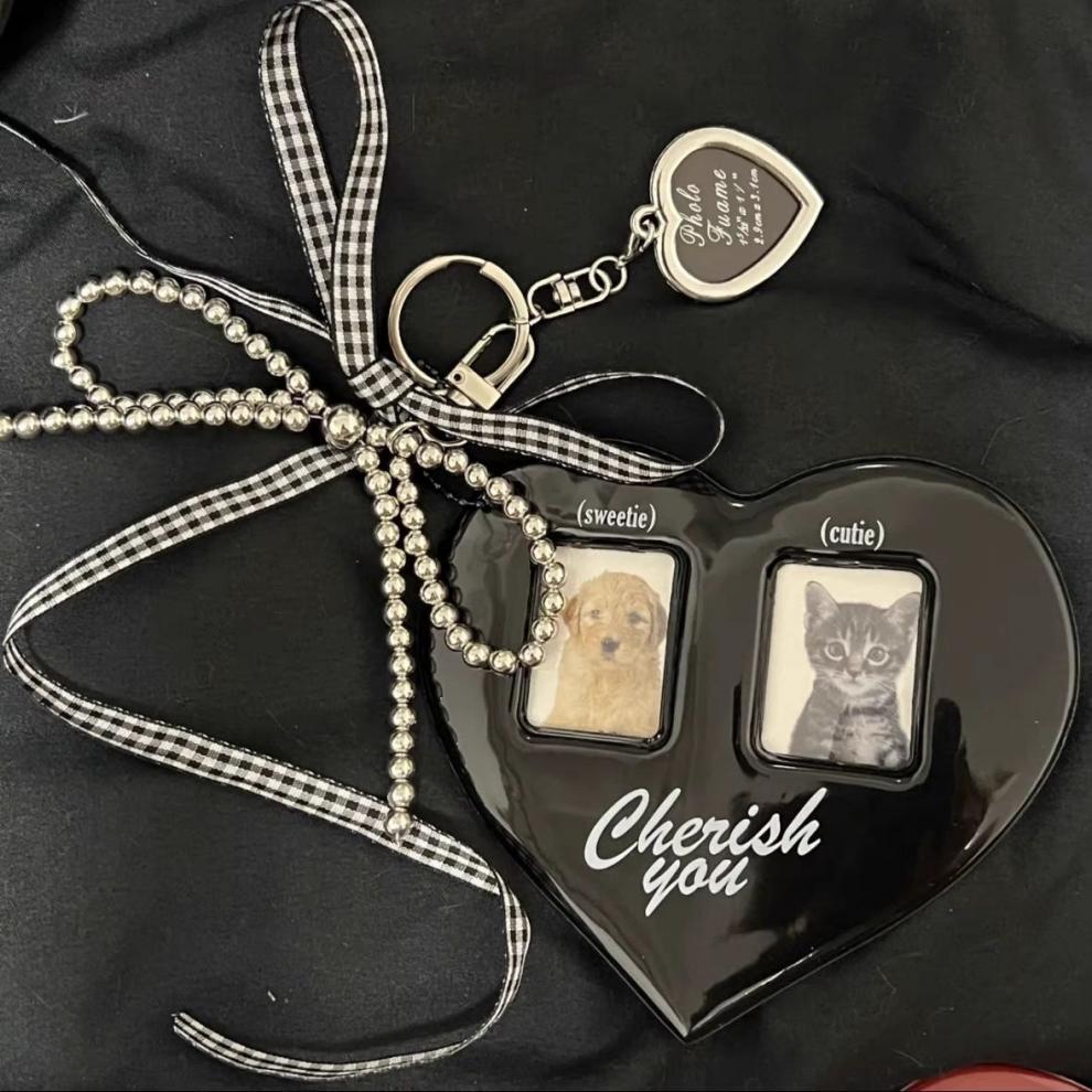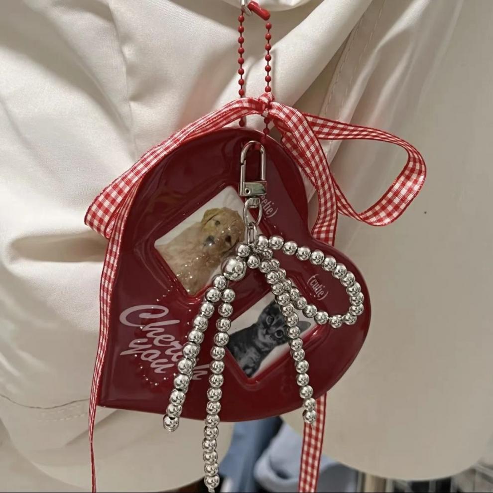 빨간 격자 무늬 커플 사진 사랑 카드 홀더 펜던트 보우 카드 디스플레이 bestie 사진 스티커 보관 세트 무료 배송스토어 가기