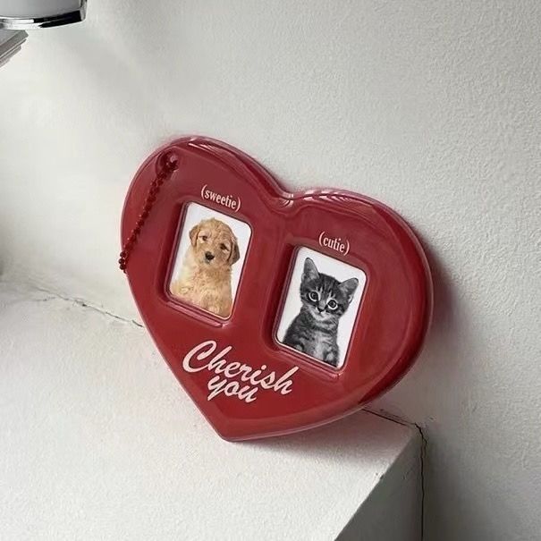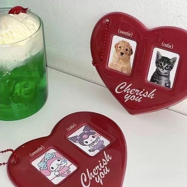 빨간 격자 무늬 커플 사진 사랑 카드 홀더 펜던트 보우 카드 디스플레이 bestie 사진 스티커 보관 세트 무료 배송