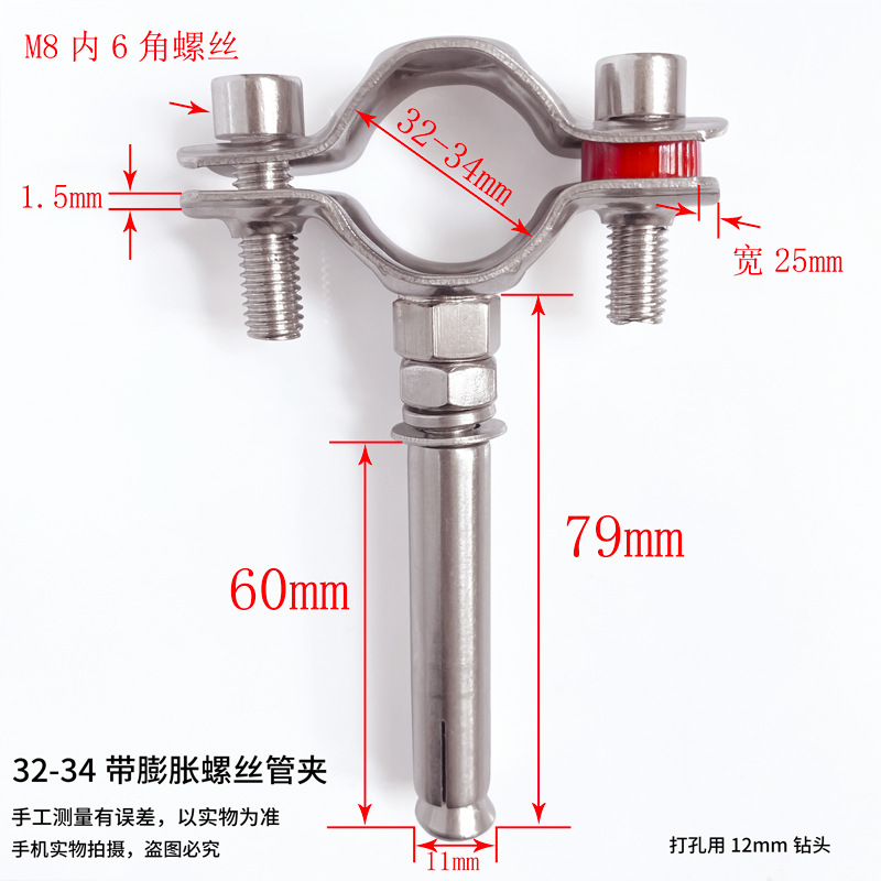 • 확장 나사 m8x80 구멍 12mm를 사용한 내경 32-34