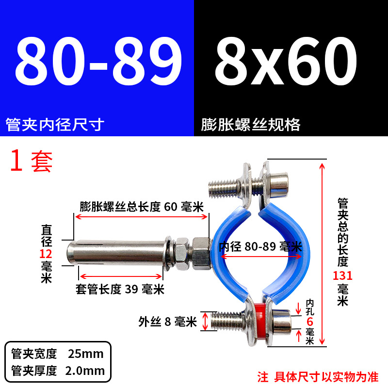 • 확장 나사 m8x60+ 파란색 가죽 패드, 드릴 구멍 12mm가 있는 내경 80-89