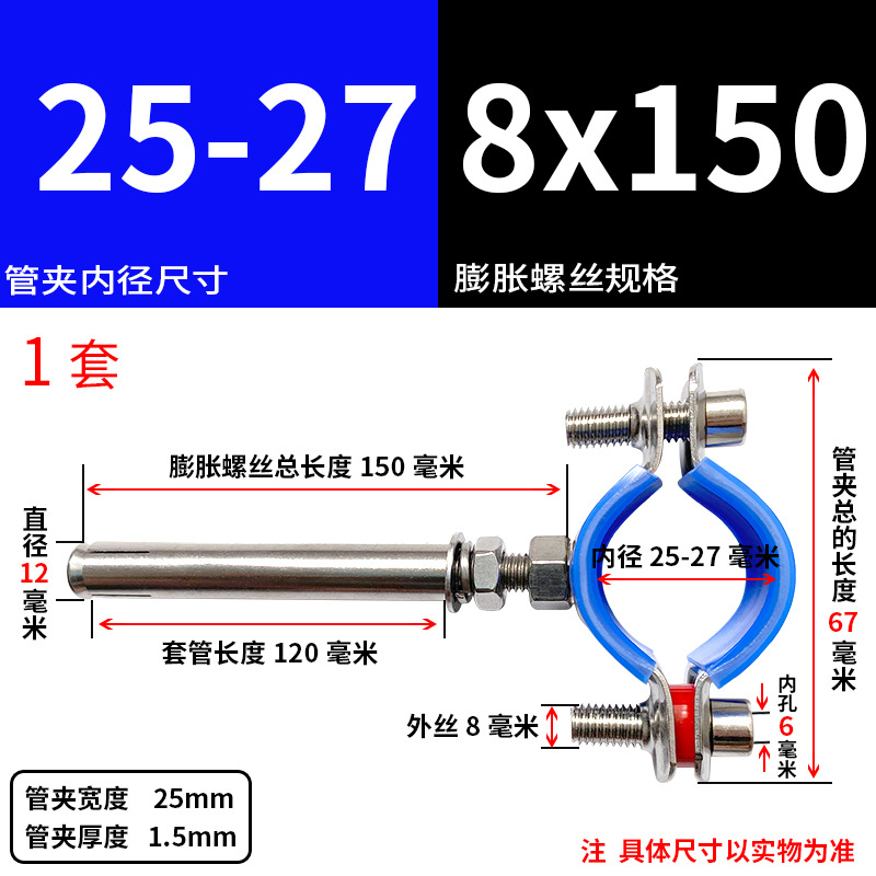 • 확장 나사 m8x80 + 파란색 가죽 패드, 드릴 구멍 12mm가 있는 내경 25-27