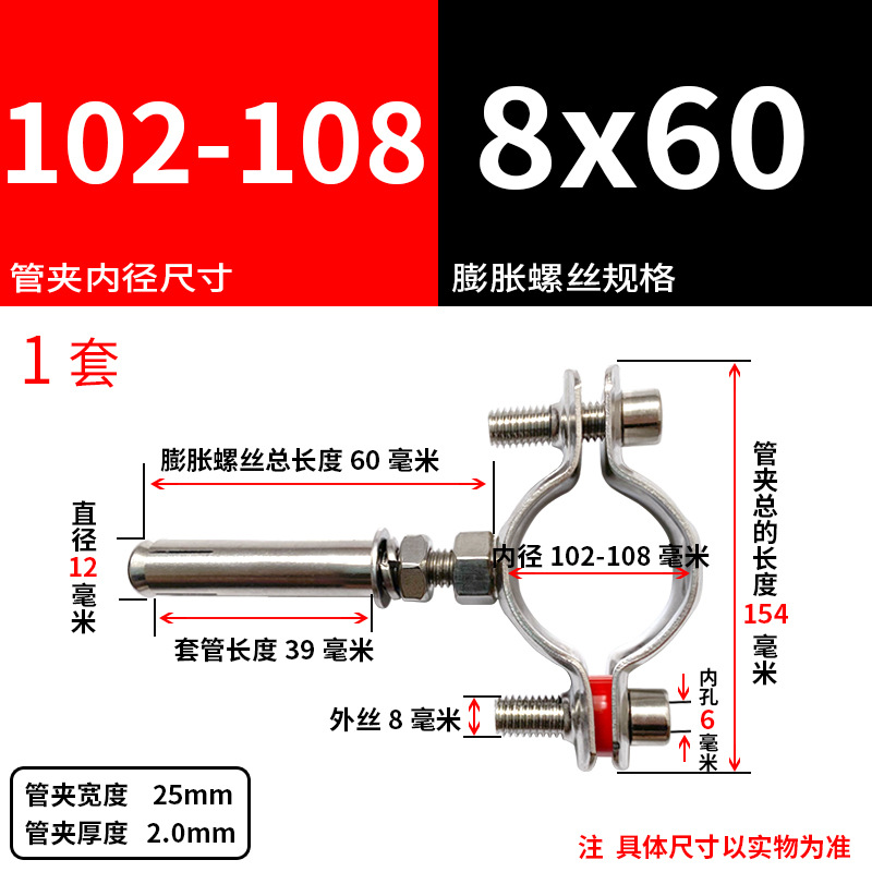• 확장 나사 m8x80 구멍 12mm를 사용한 내경 102-108
