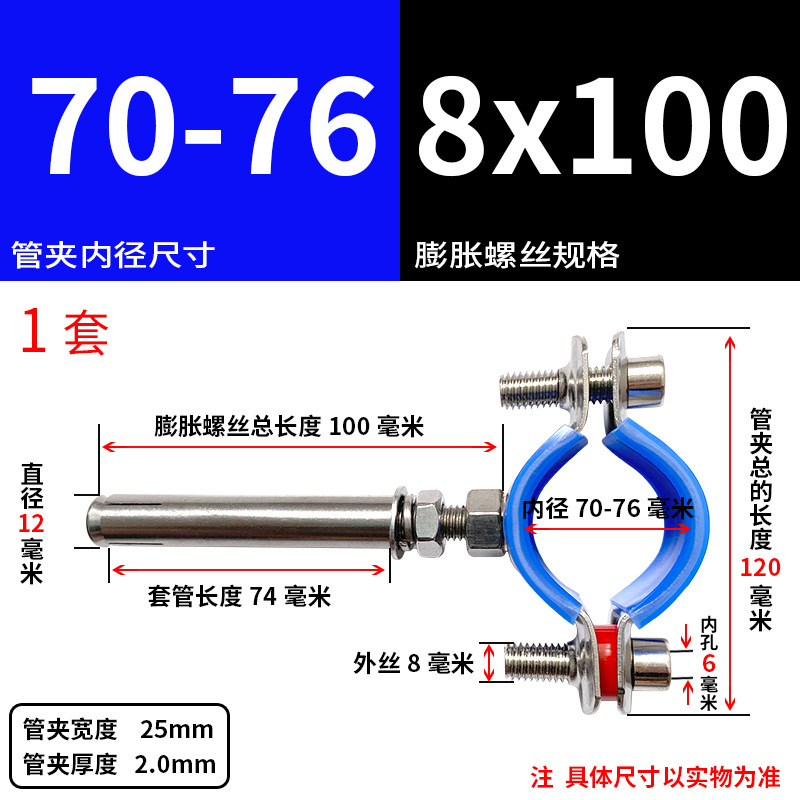 • 확장 나사 m8x100+ 파란색 가죽 패드, 드릴 구멍 12mm가 있는 내경 70-76
