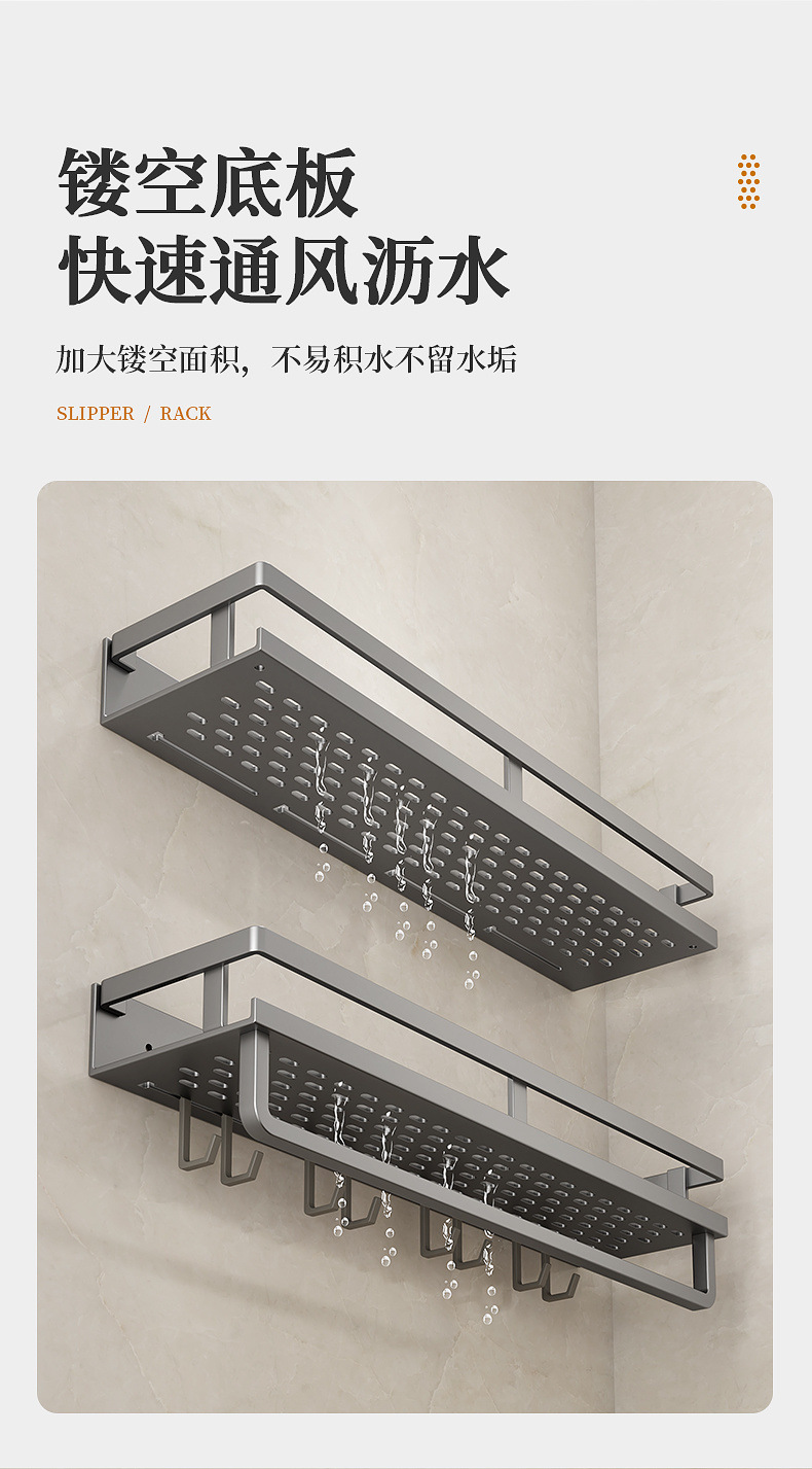 구멍이 없는 회색 욕실 수납 선반, 욕실 세면대 벽 다기능 수납 선반, 벽걸이 공장스토어 가기