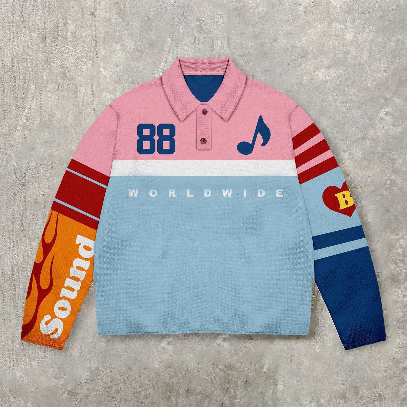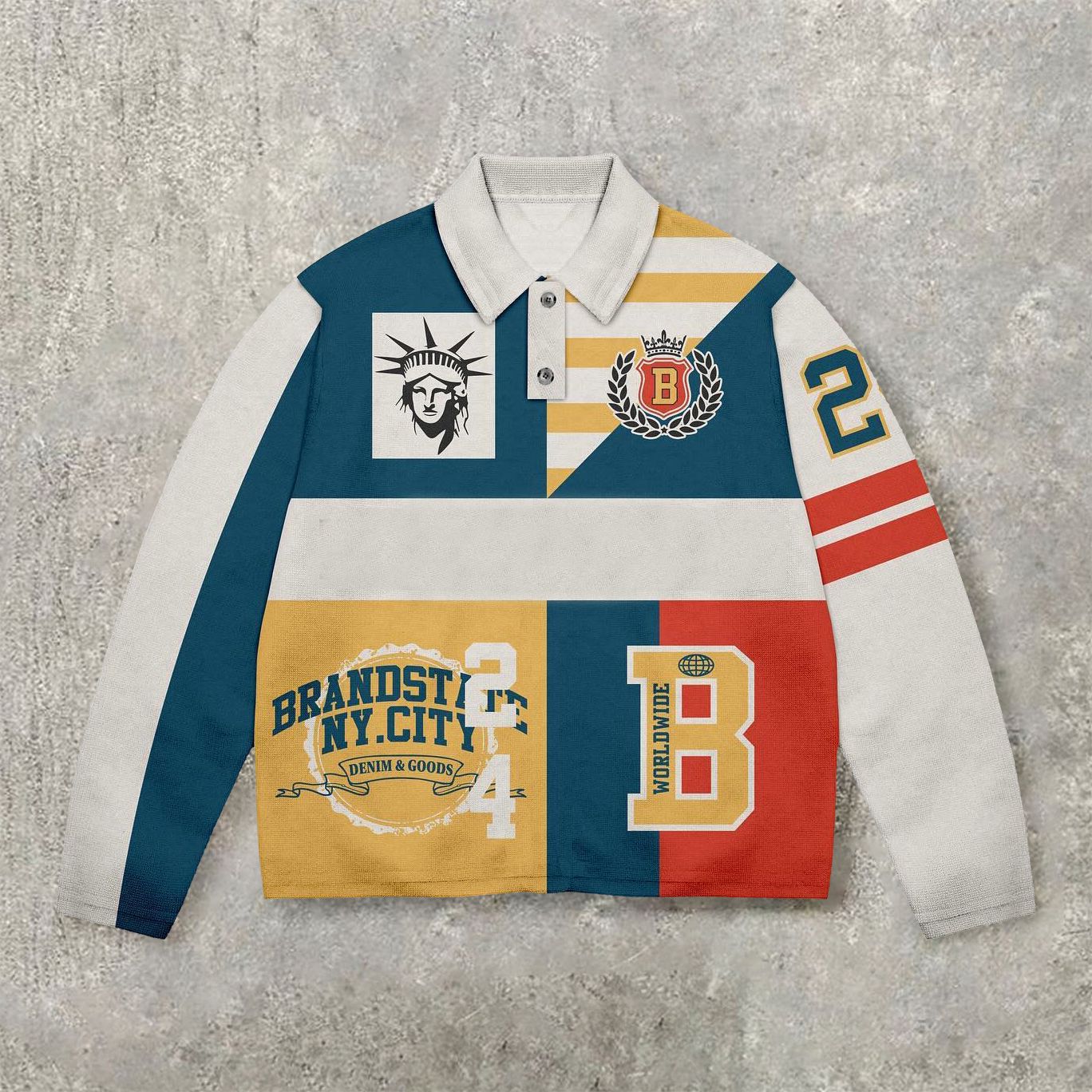 2025 국경 간 새로운 AliExpress 새로운 패션 트렌드 3D 인쇄 긴 소매 POLO 거리 트렌드 스웨터스토어 가기
