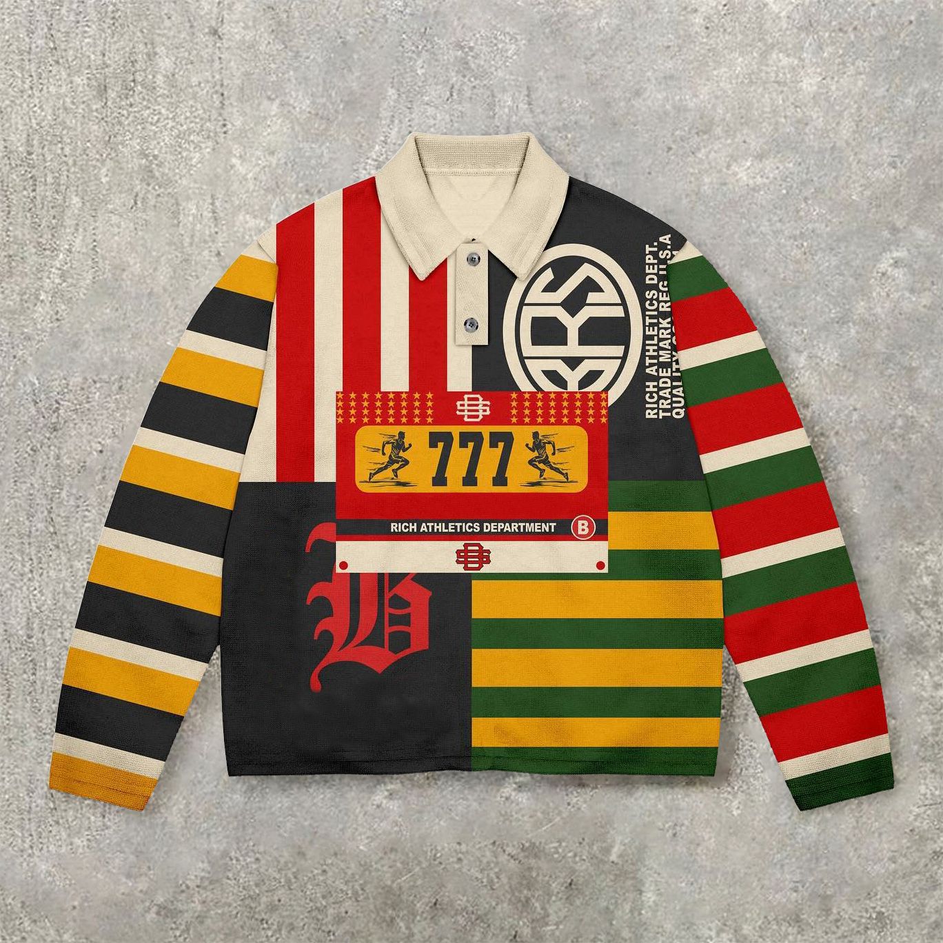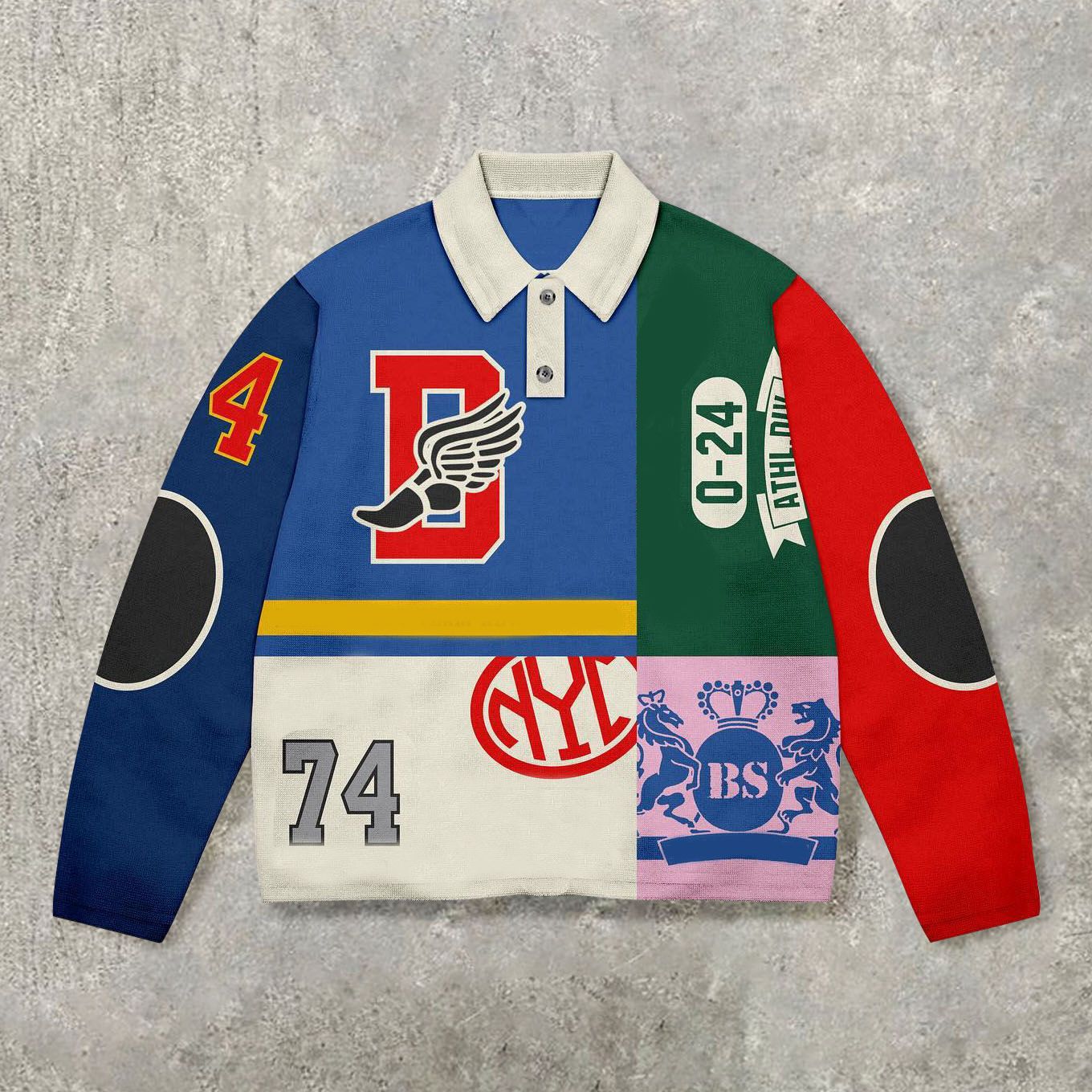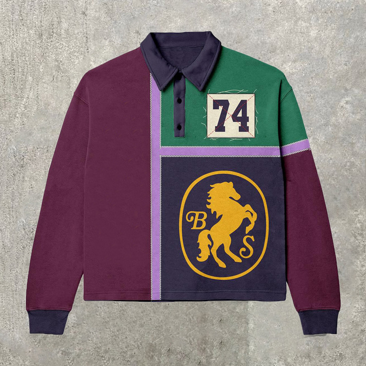 2025 국경 간 새로운 AliExpress 새로운 패션 트렌드 3D 인쇄 긴 소매 POLO 거리 트렌드 스웨터