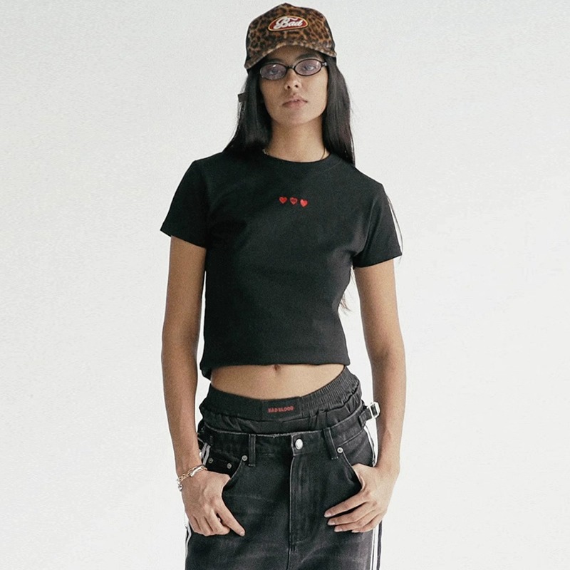 한국 badblood BCAC 시리즈 미국 스타일 뜨거운 소녀 짧은 티셔츠 여성 캐주얼 스포츠 틈새 디자인 센스 탑스토어 가기